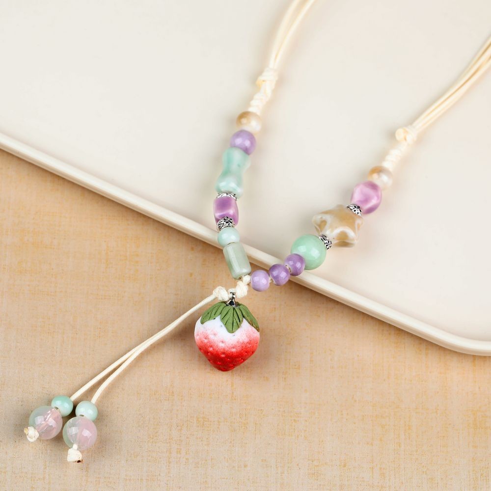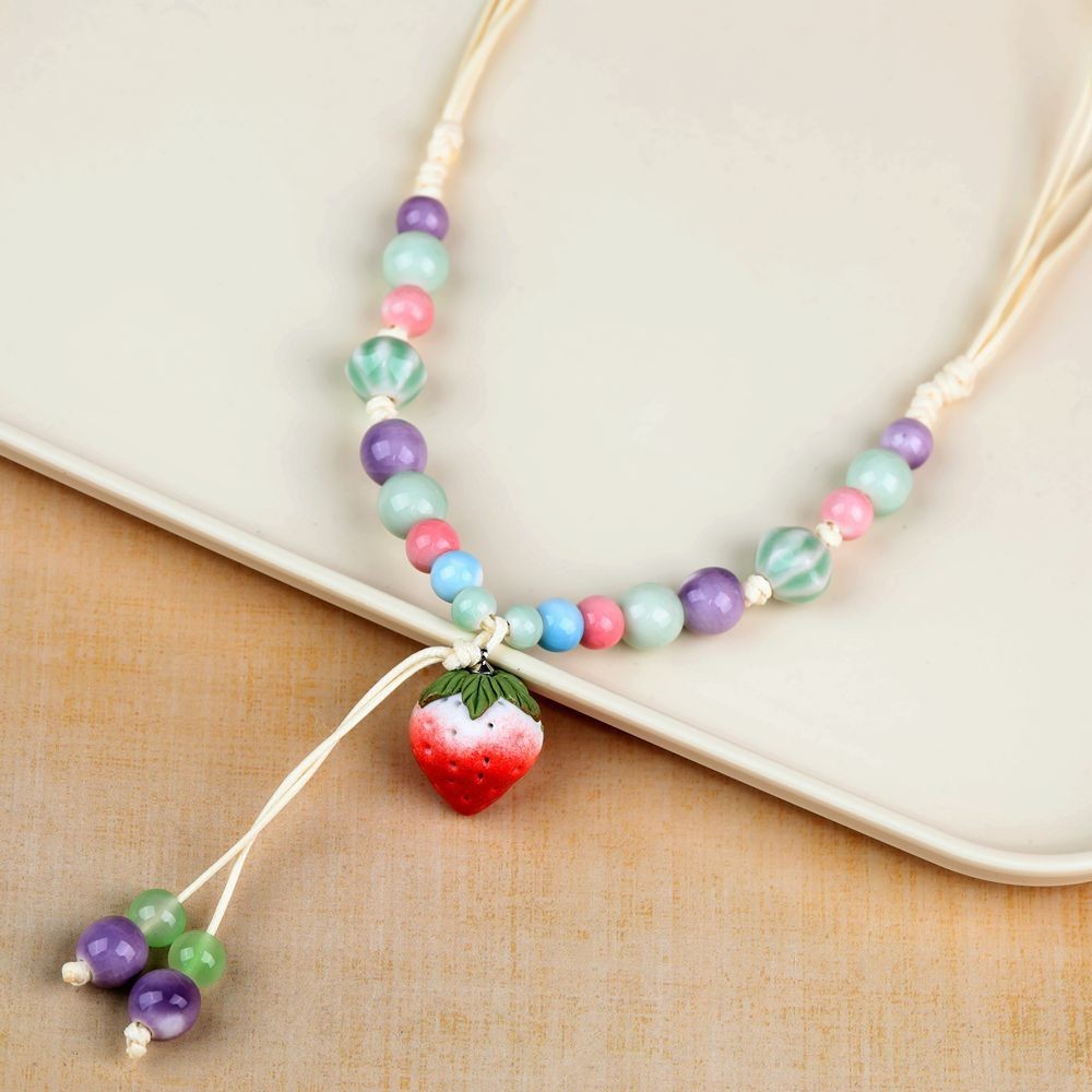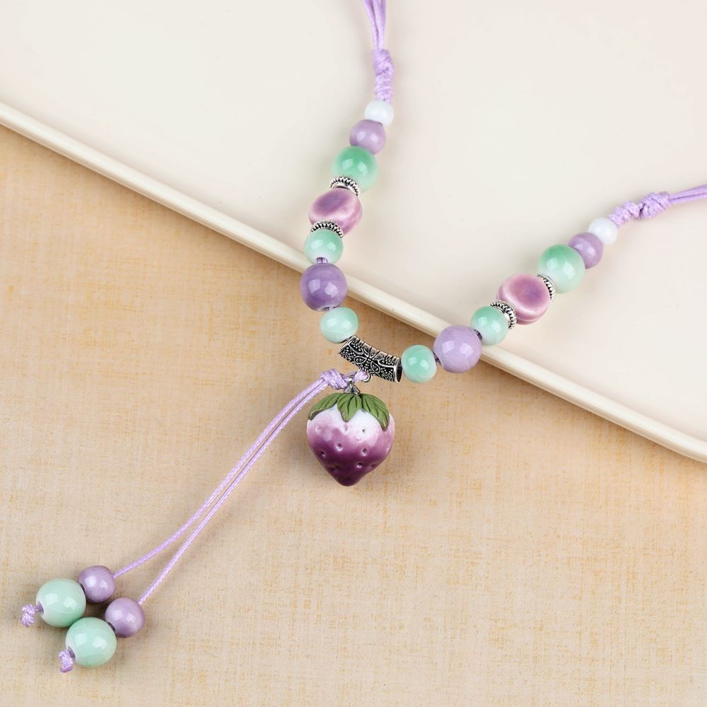 景德镇新款中式陶瓷串珠水果项链 可爱糖果草莓项链百搭吊坠饰品