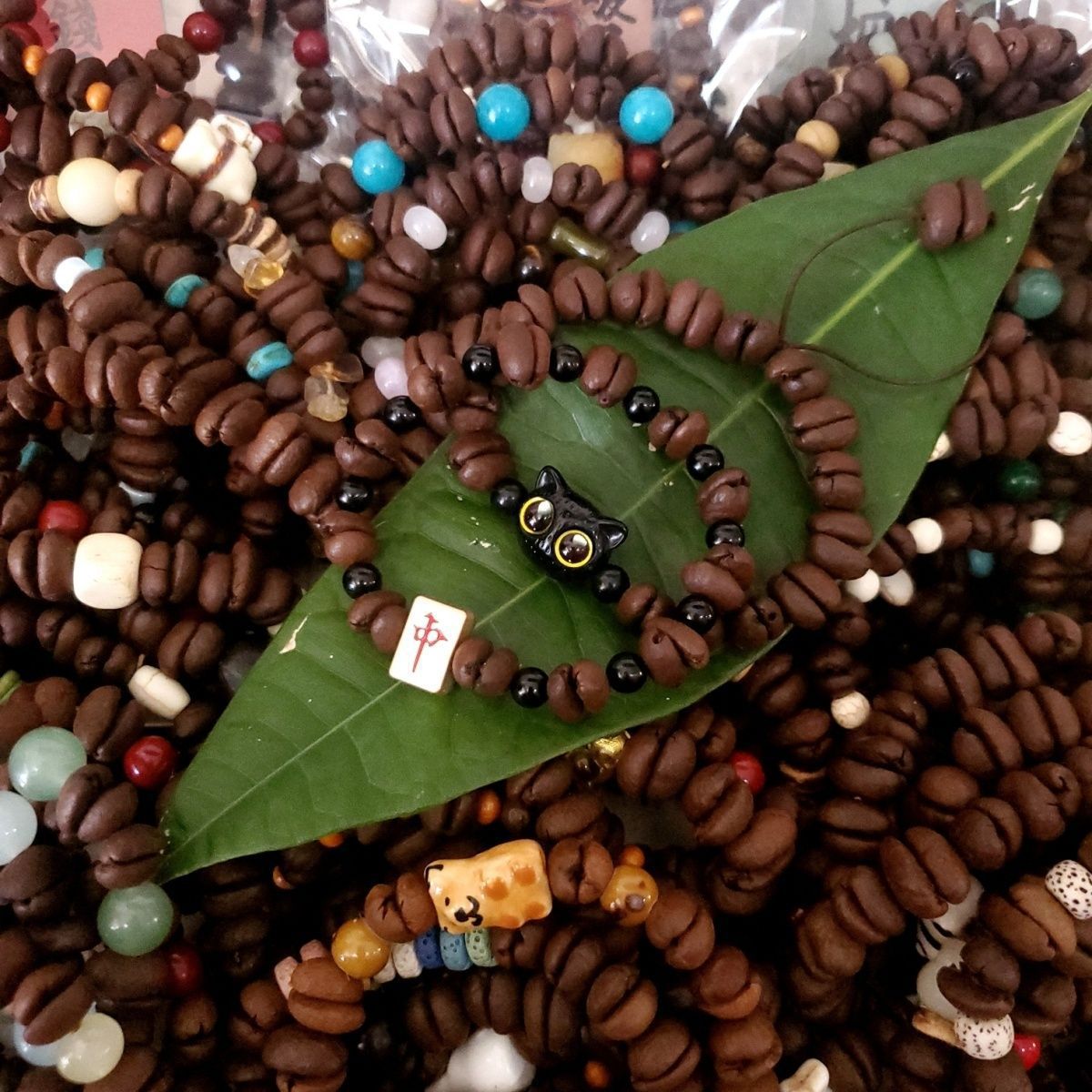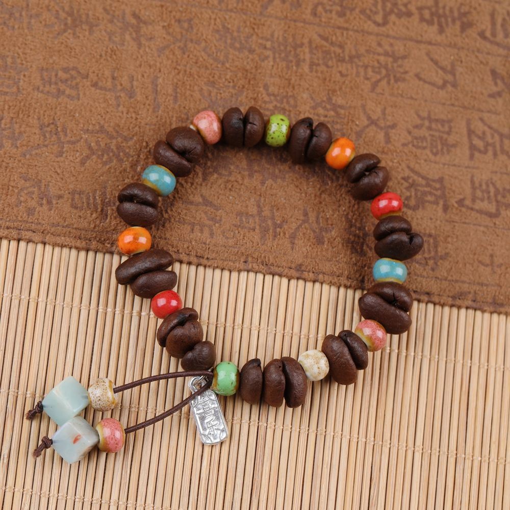 流苏咖啡豆串珠陶瓷手链女生闺蜜情侣手饰小众设计卡通手串摆摊批