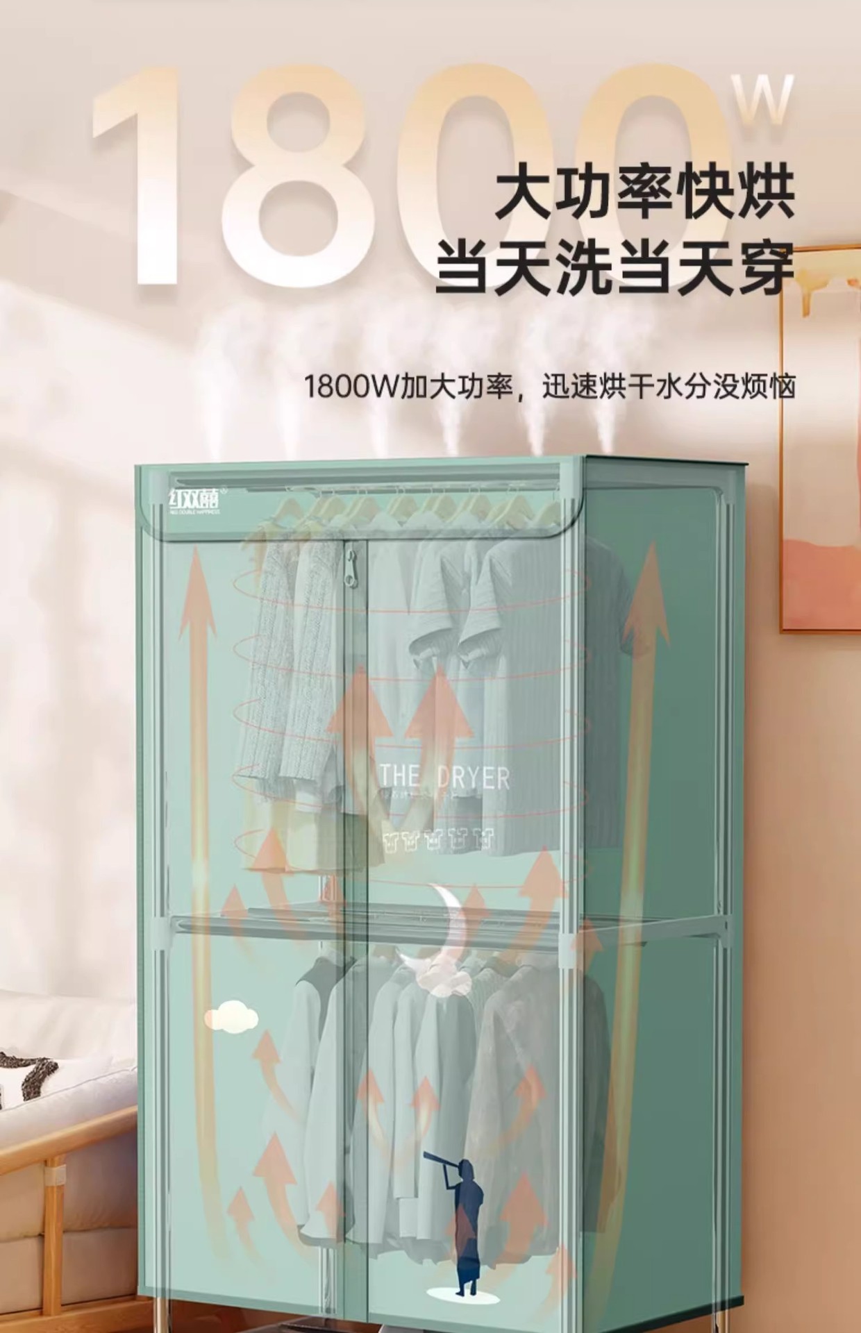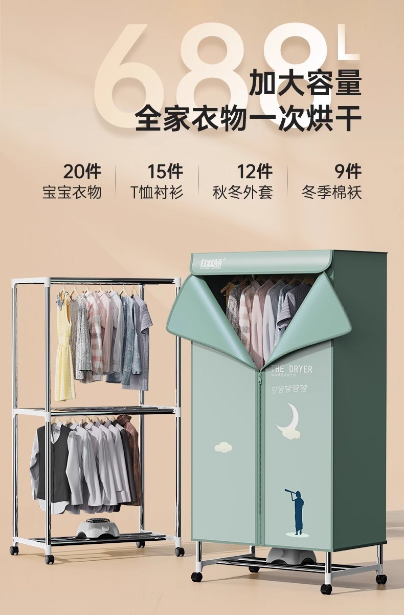 红双喜干衣机家用烘衣机小型风干机宿舍婴儿烘衣速干可折叠烘干机