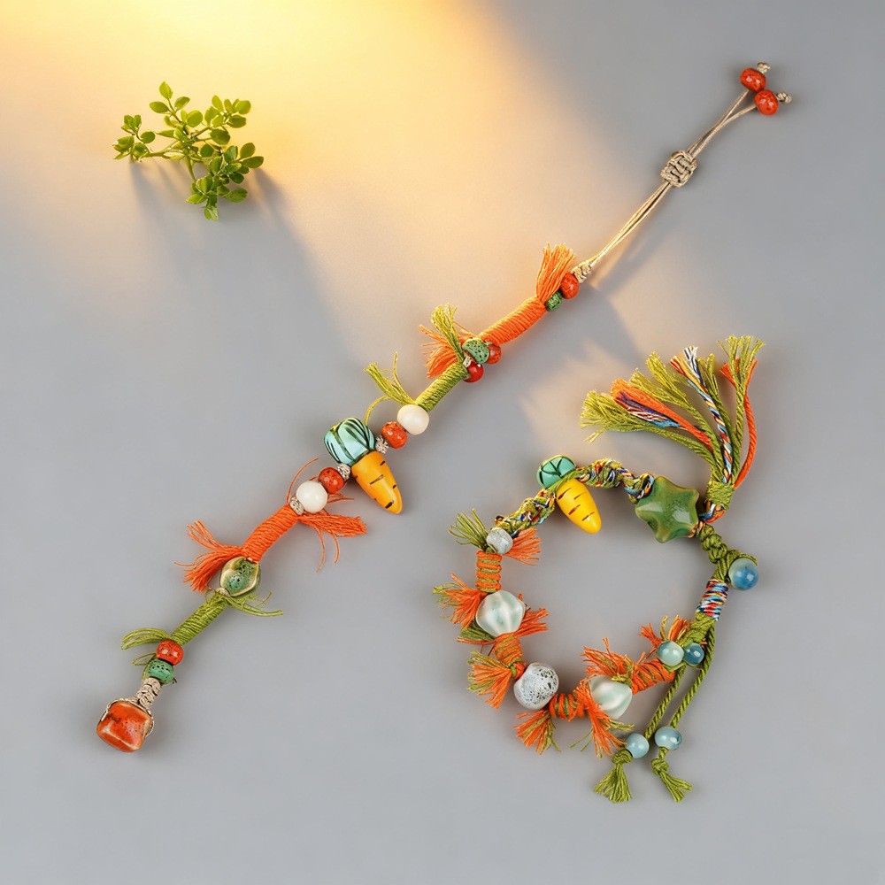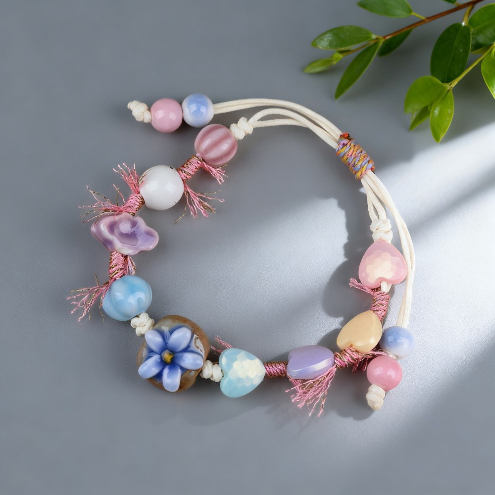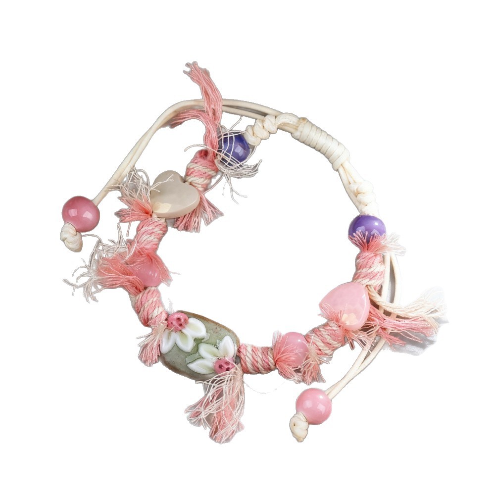 景德镇小清新手工捏花手绳 文艺手工陶瓷饰品景区货源摆摊批发