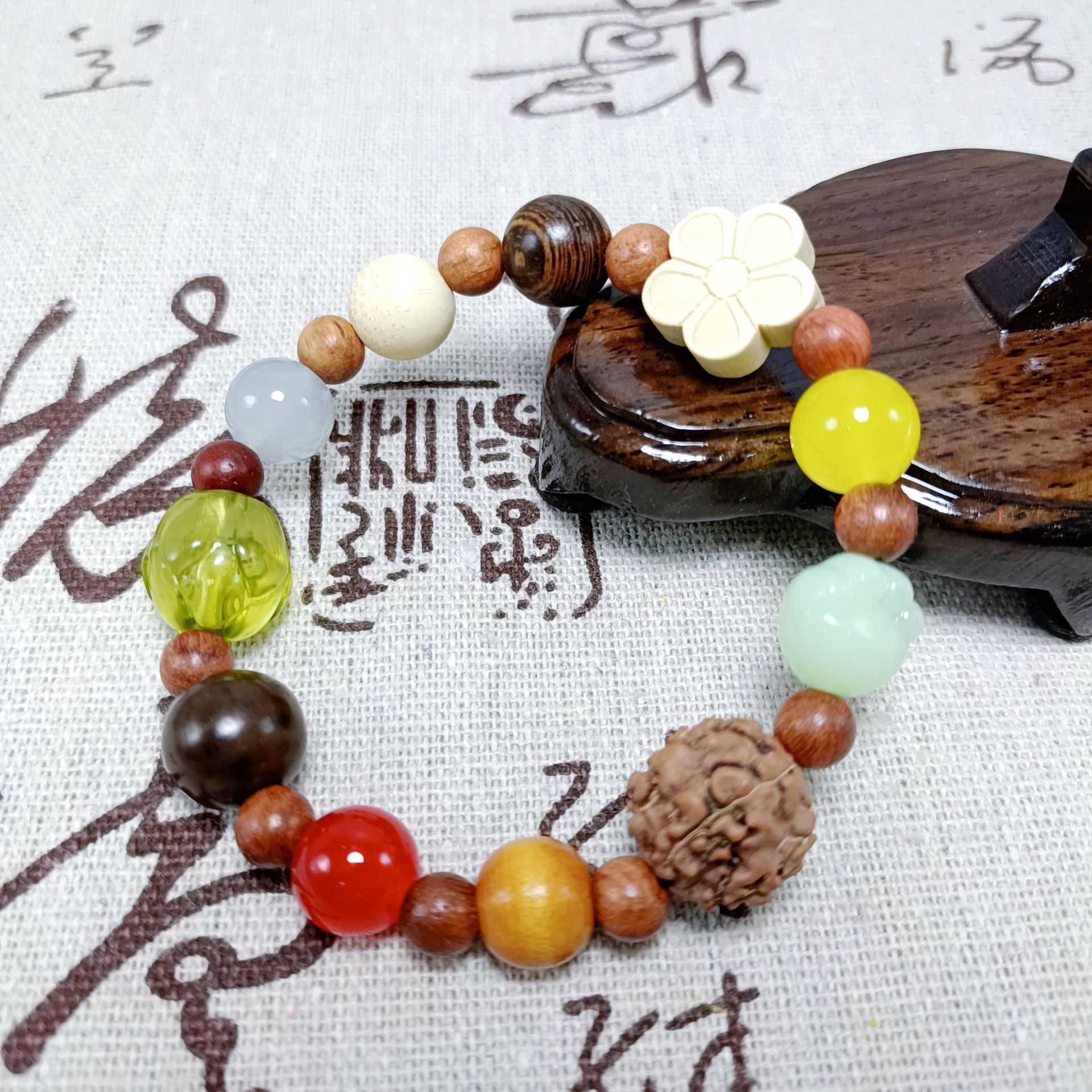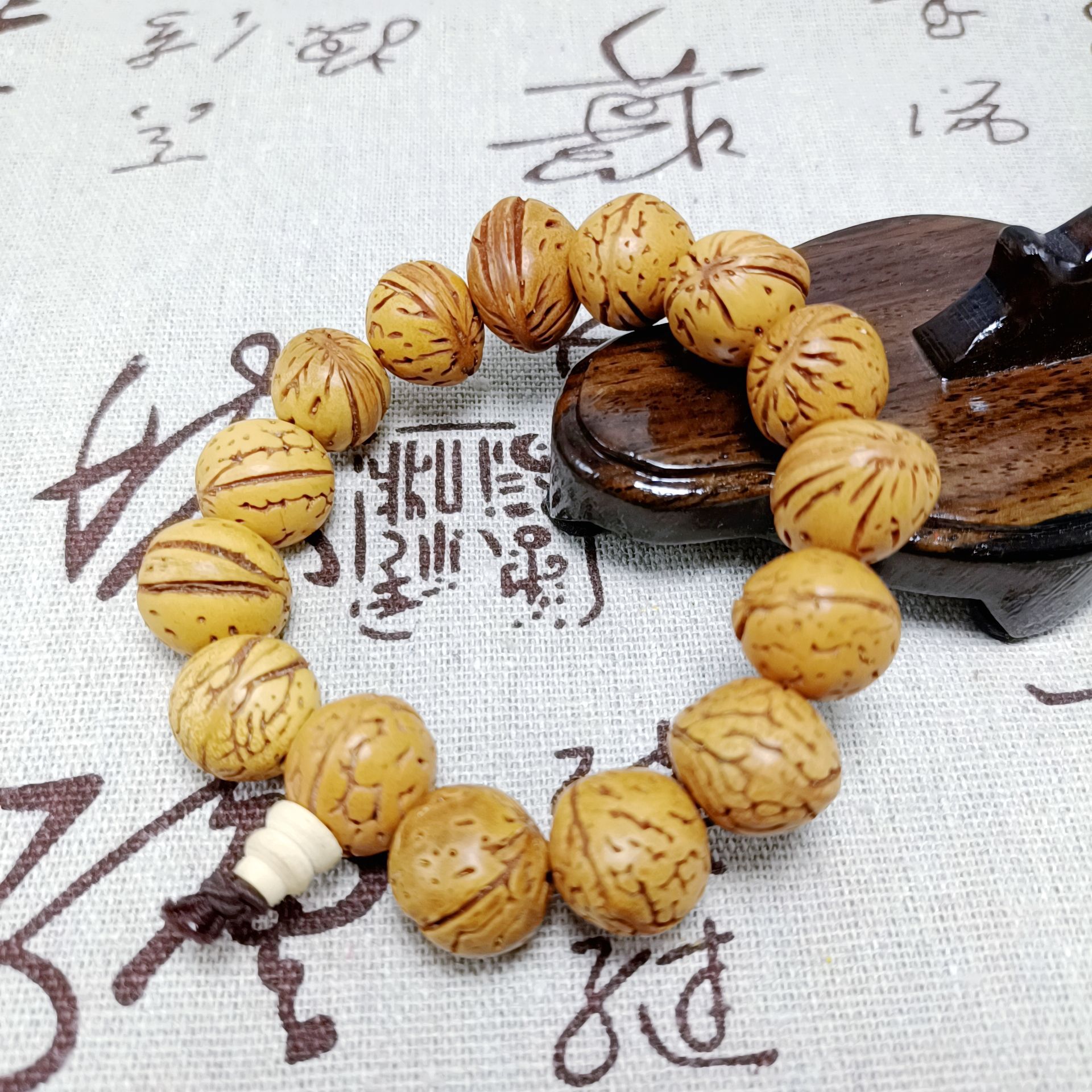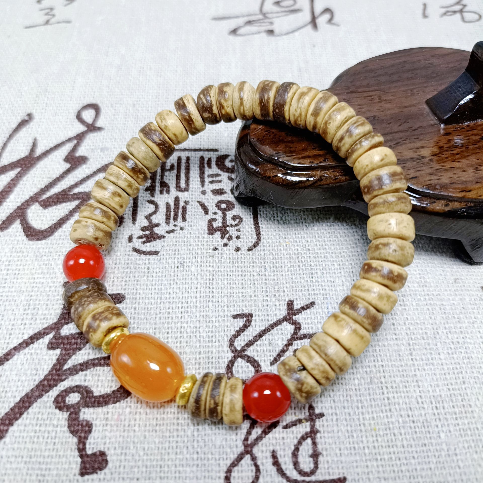 新中式金刚桃核手串国风多宝菩提男女款文玩佛珠手串地摊直播引流