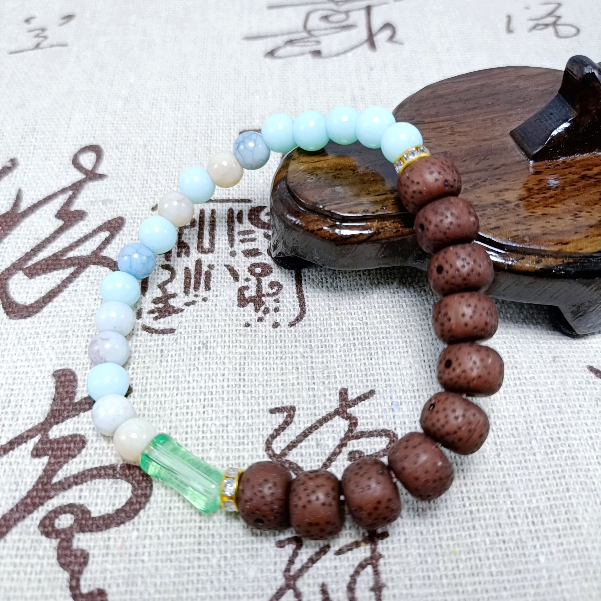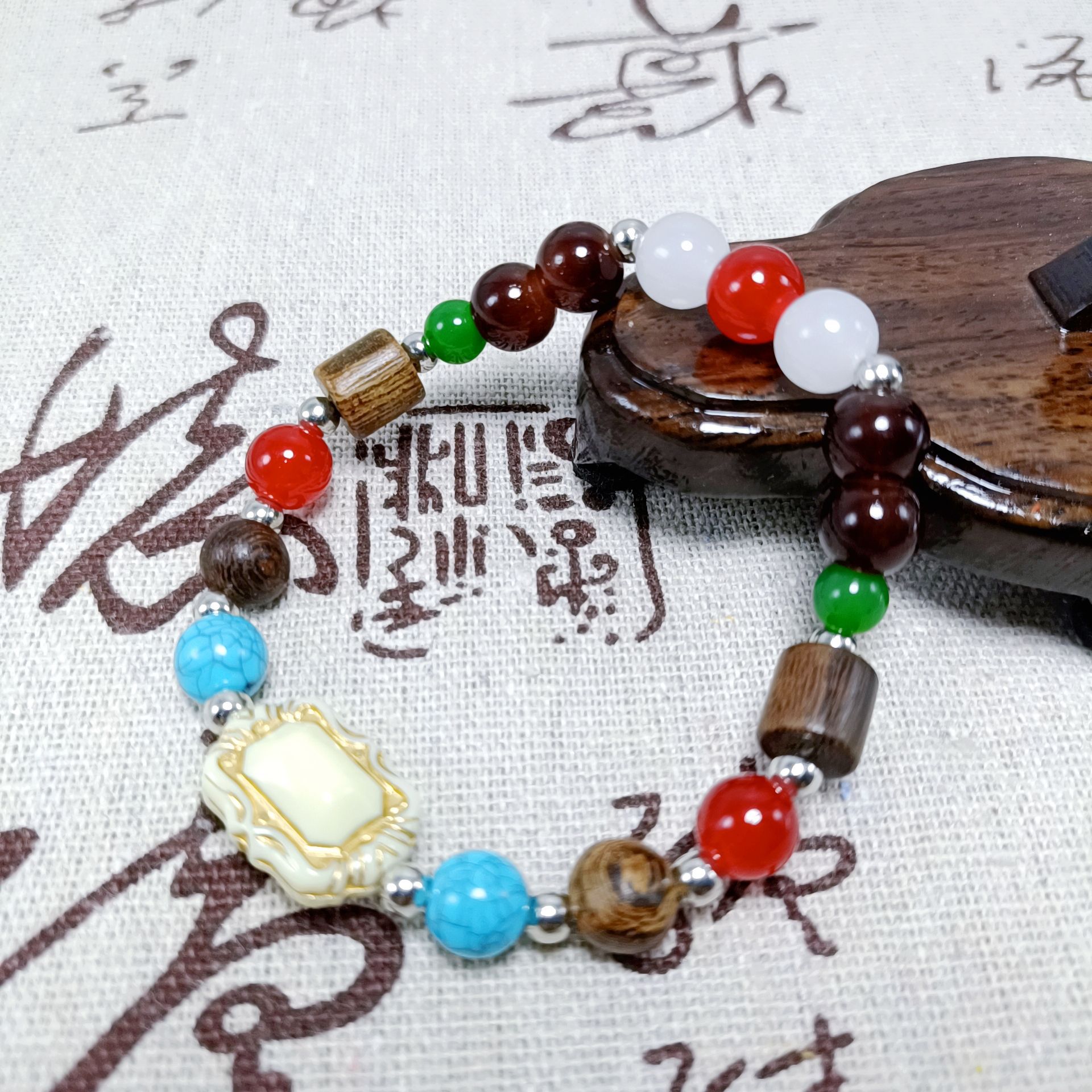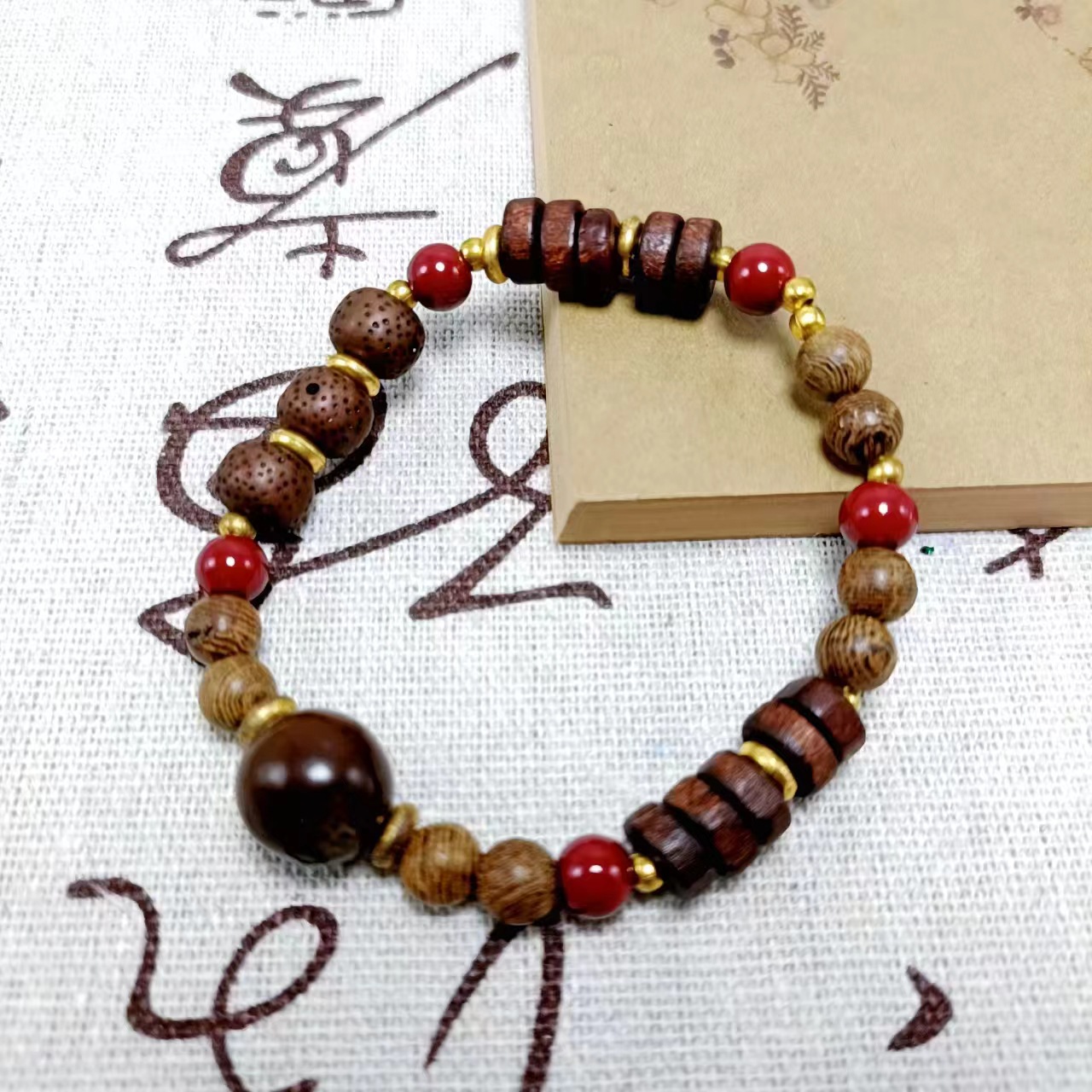 新中式金刚桃核手串国风多宝菩提男女款文玩佛珠手串地摊直播引流