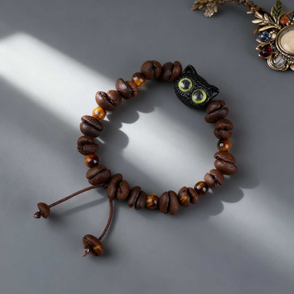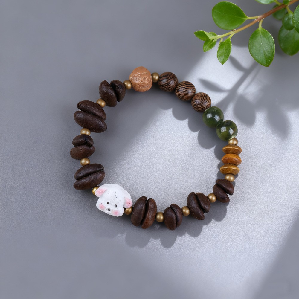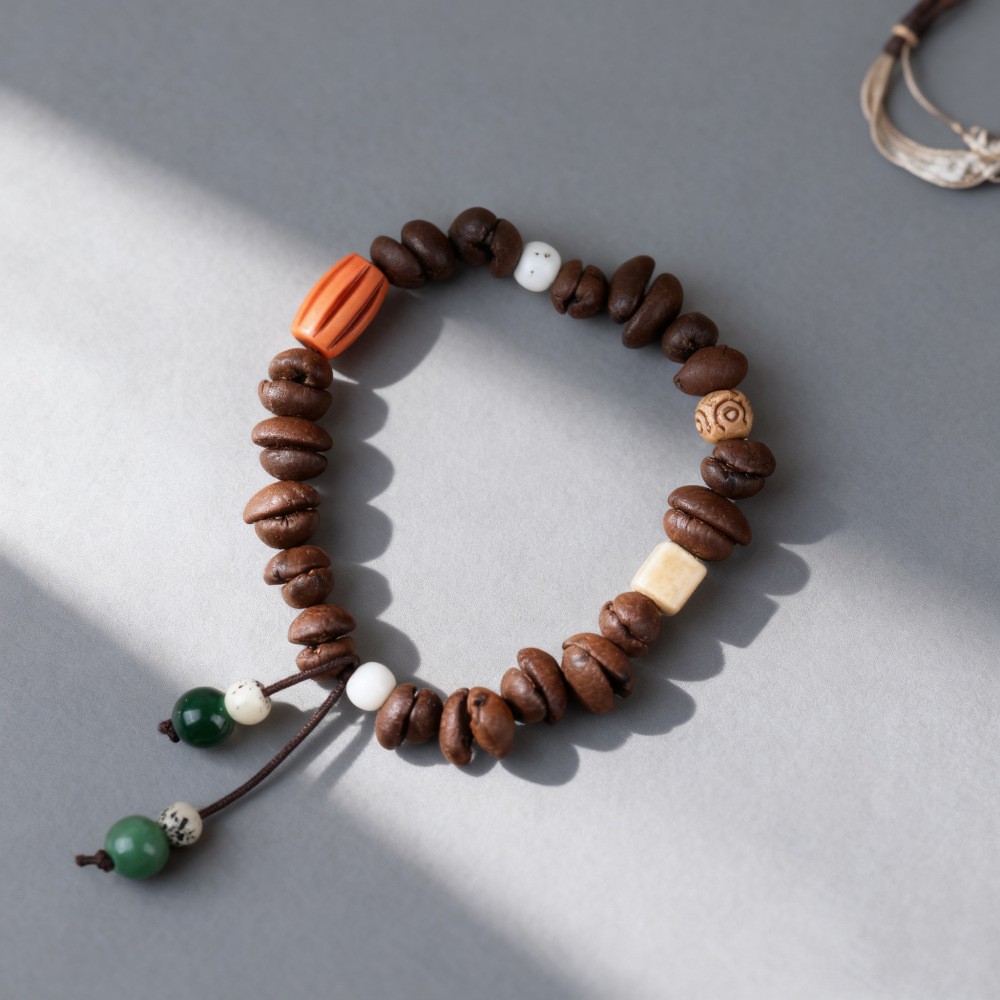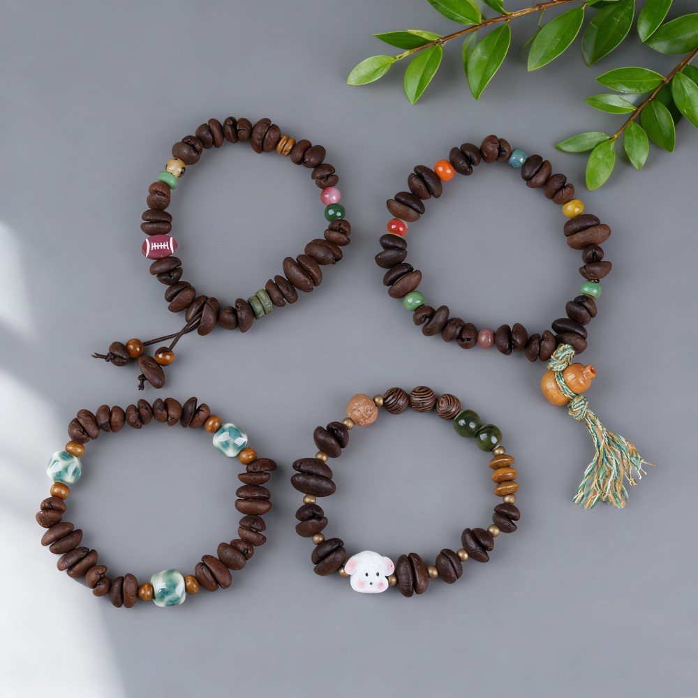 中式手工天然【真】咖啡豆手串手作串珠小众百搭男女生情侣手链