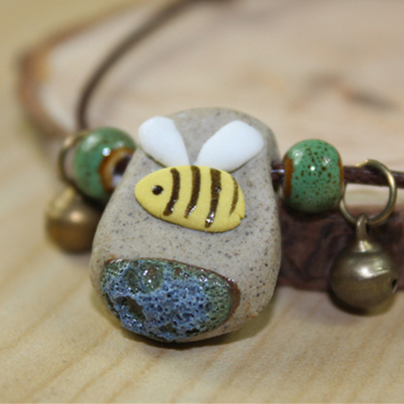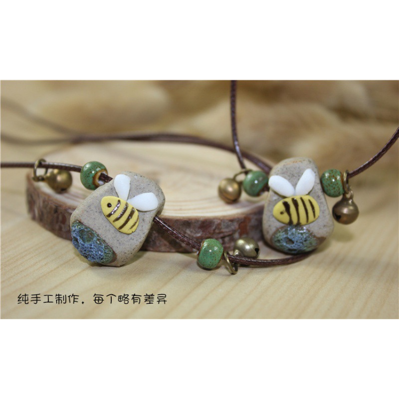 景德镇陶瓷首饰品创意小蜜蜂项链可爱卡通地摊货源吊坠蜜蜂元素