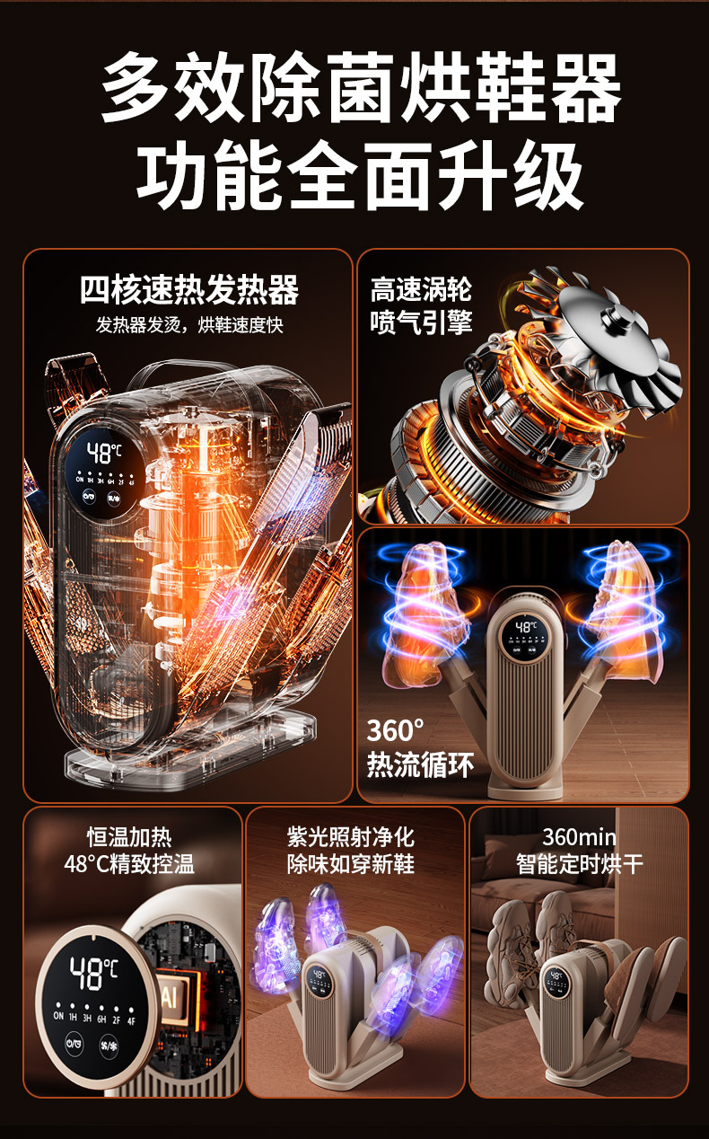 2025年新款智能四脚定时家用烘鞋器烘干机宿舍可折叠小型暖鞋神器