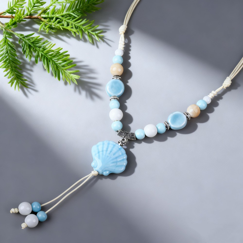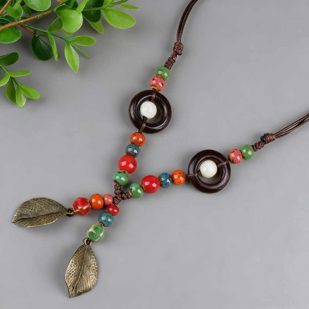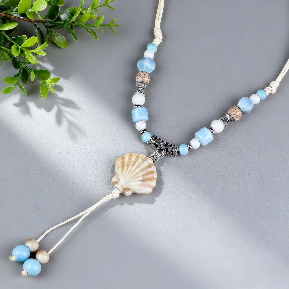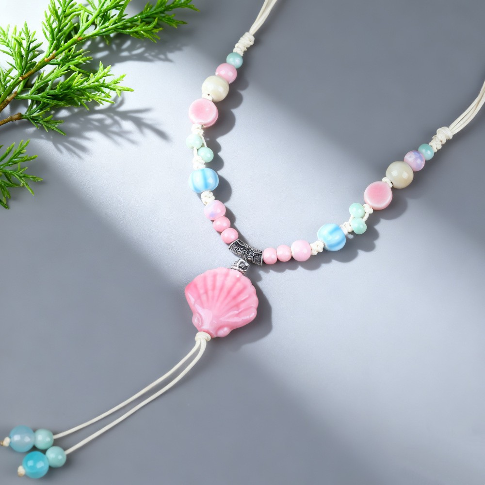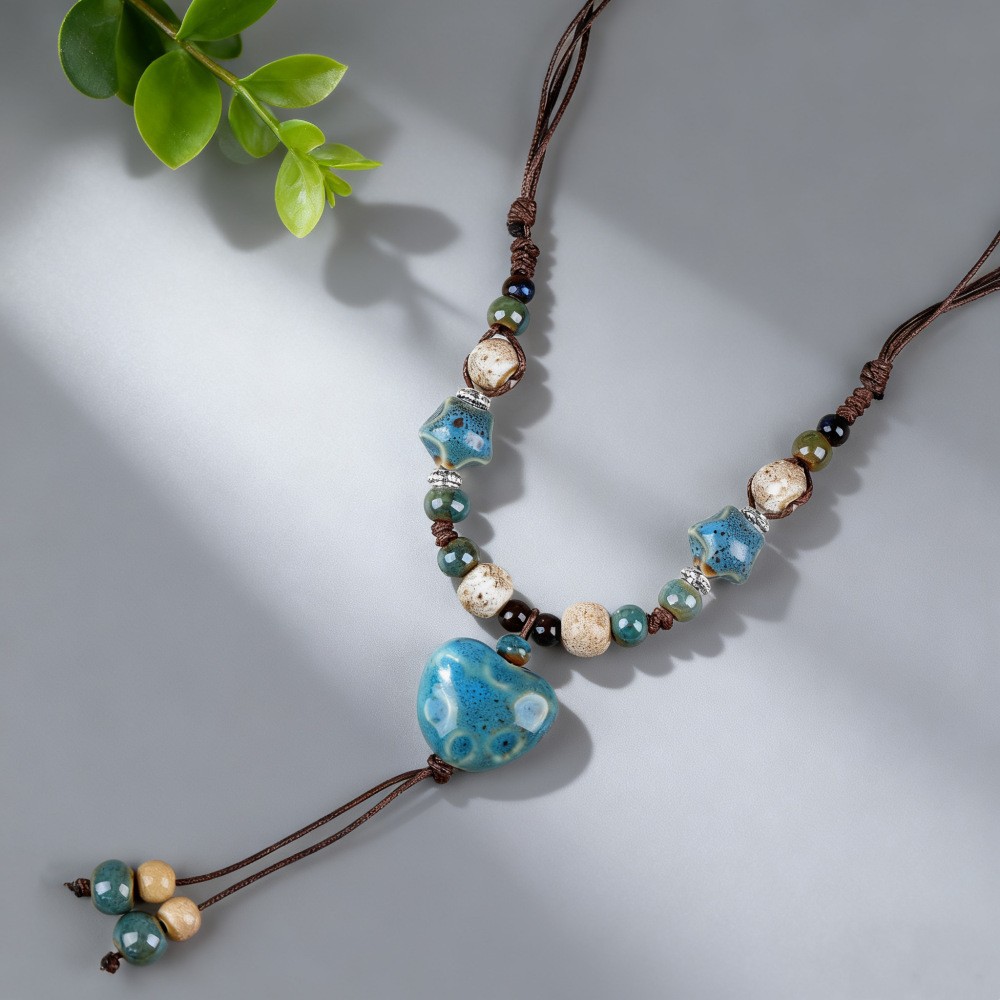 新中式长款陶瓷串珠项链女复古风禅意编织毛衣链跨境百搭锁骨链潮