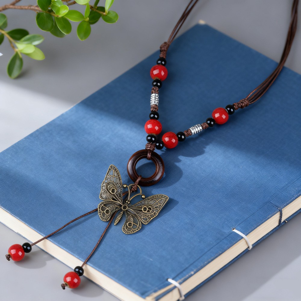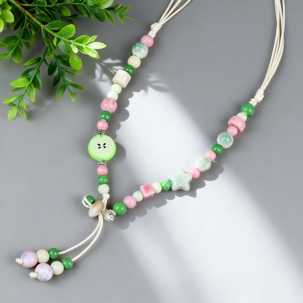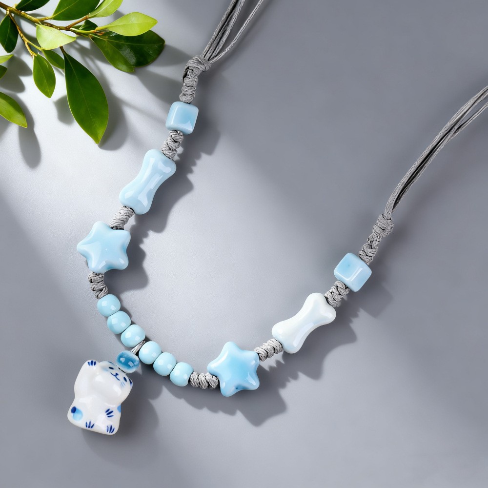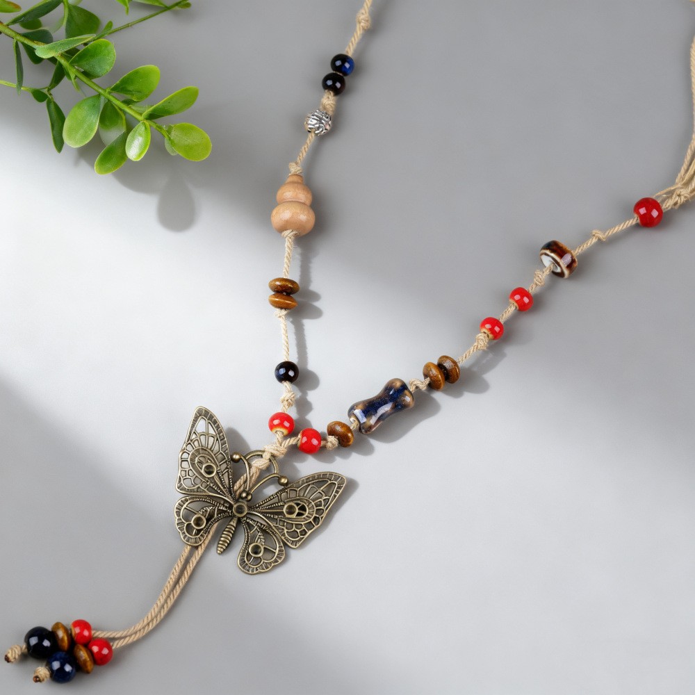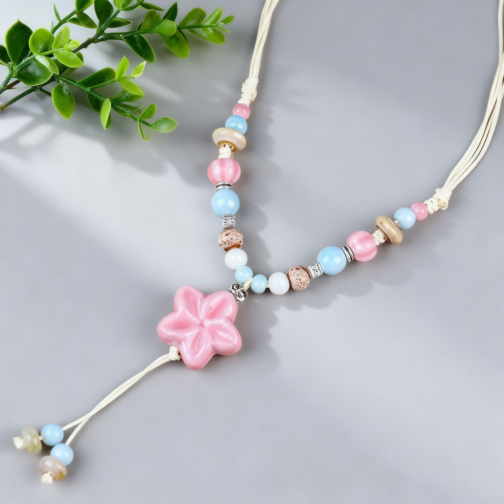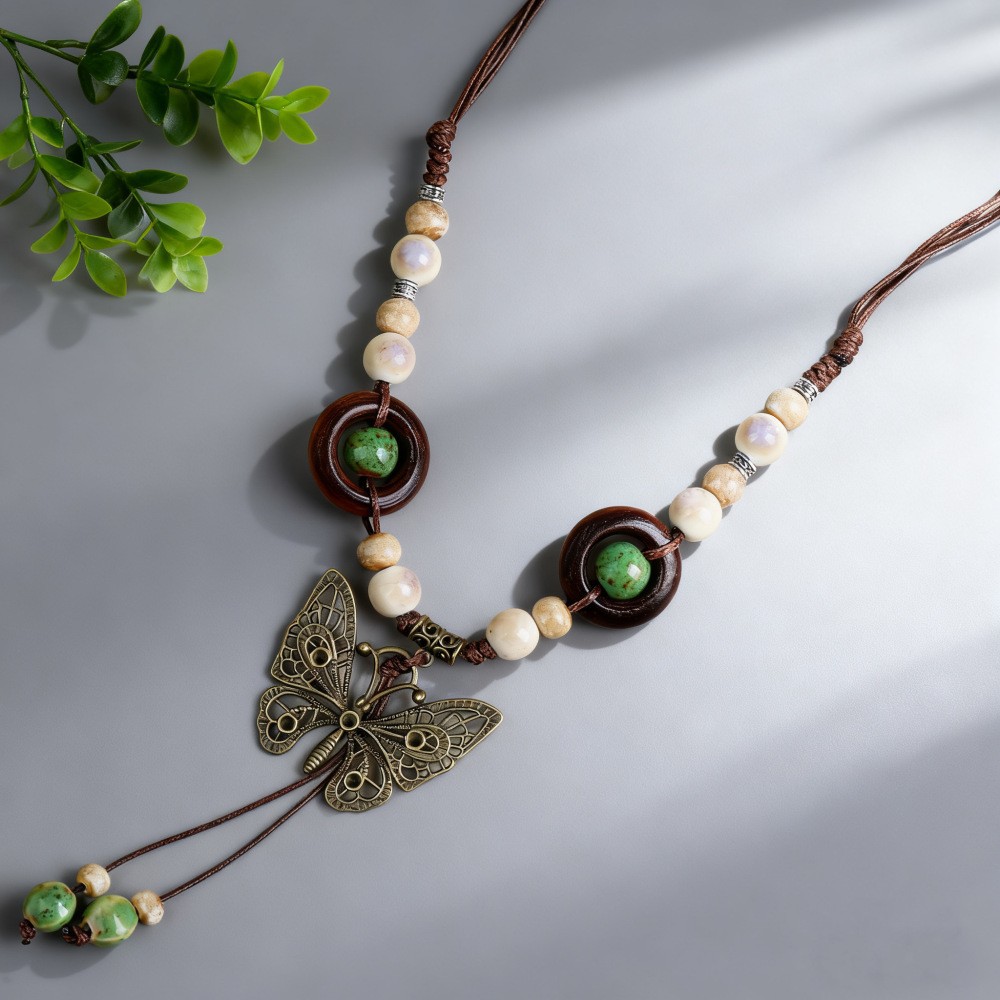 新中式长款陶瓷串珠项链女复古风禅意编织毛衣链跨境百搭锁骨链潮