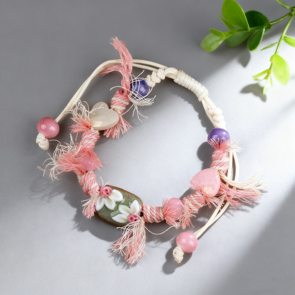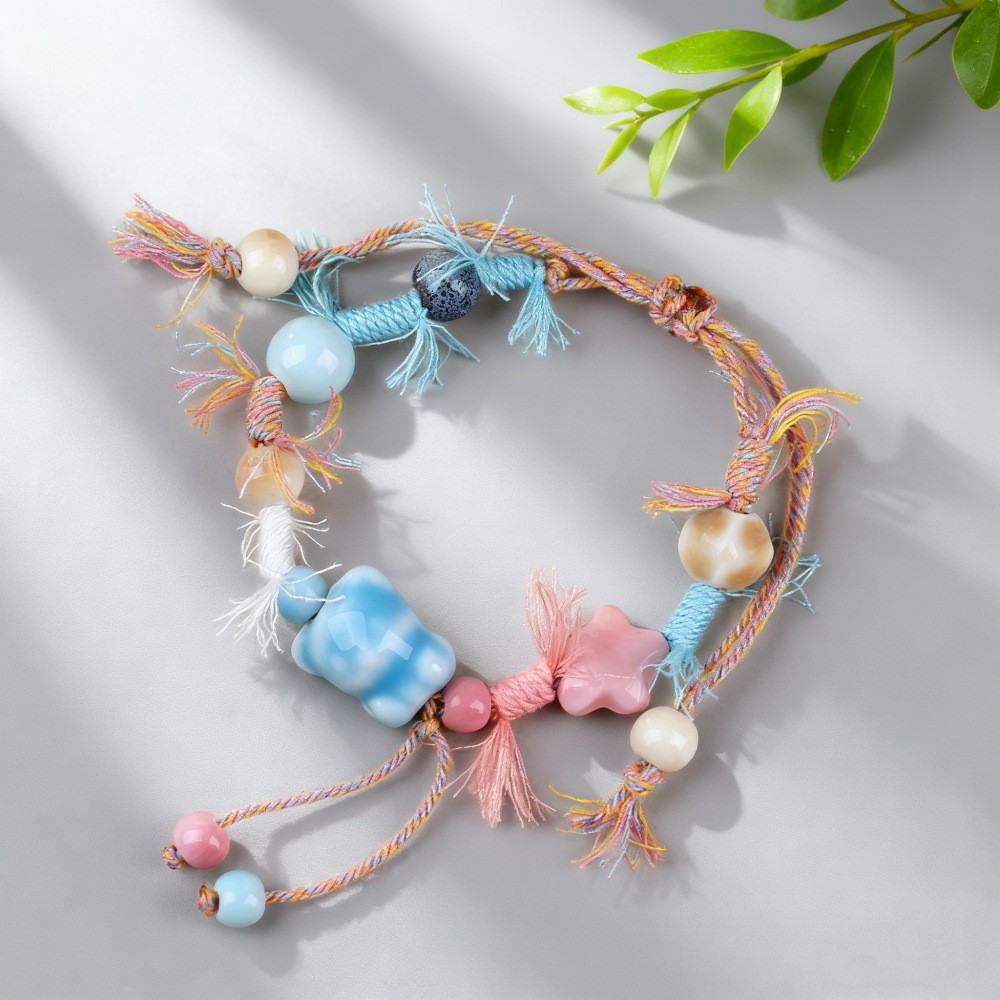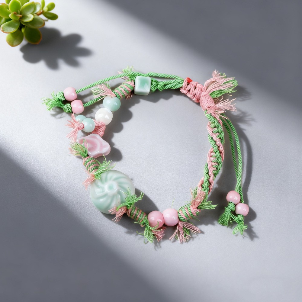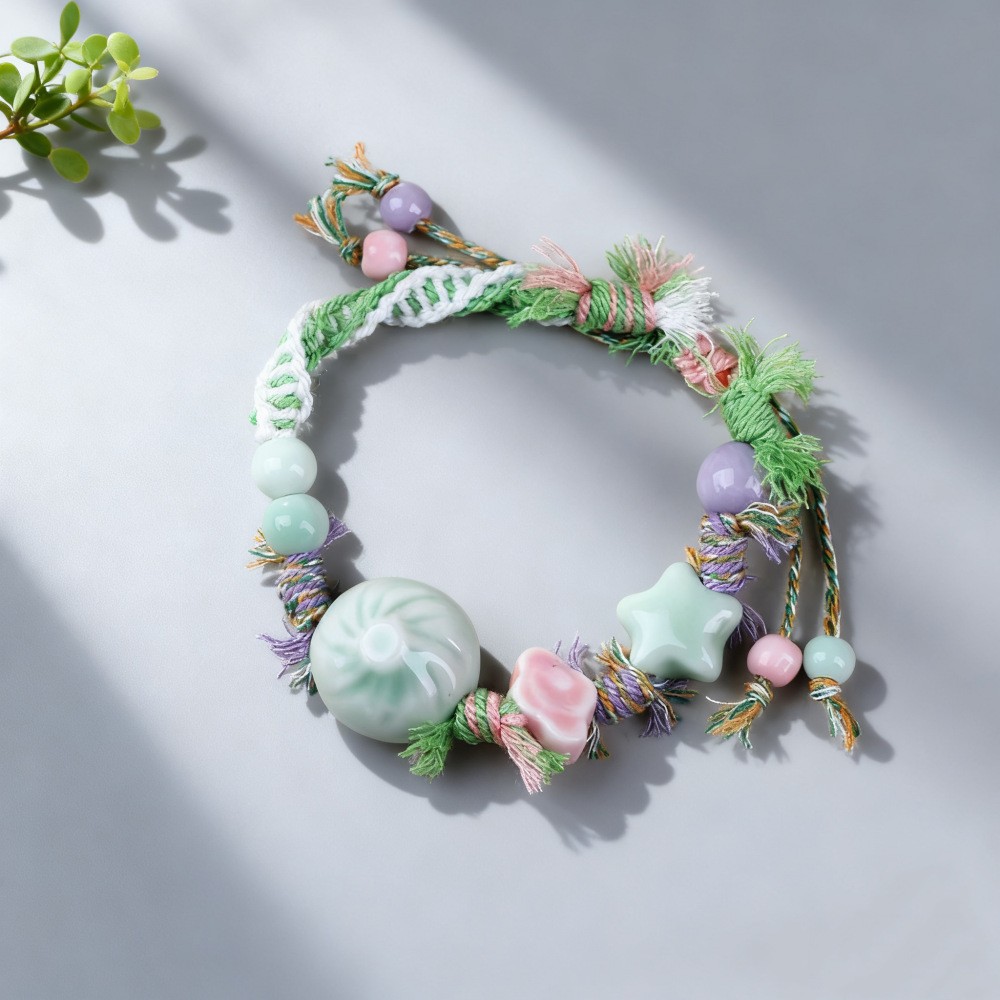 景德镇陶瓷小清新甜美重工编制手绳蝴蝶小众设计可爱水果闺蜜手饰