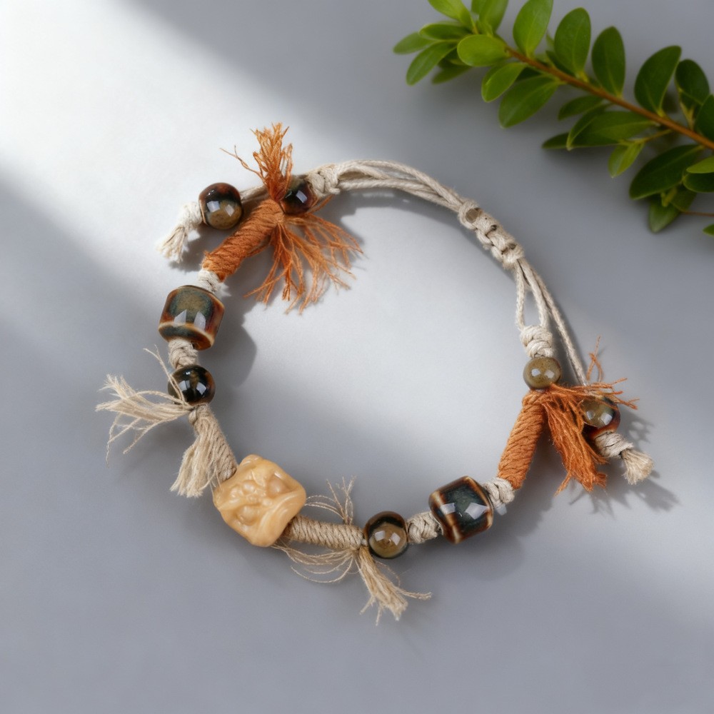景德镇原创重工手工编织陶瓷猫手绳汉服配饰手饰闺蜜情侣礼物饰品