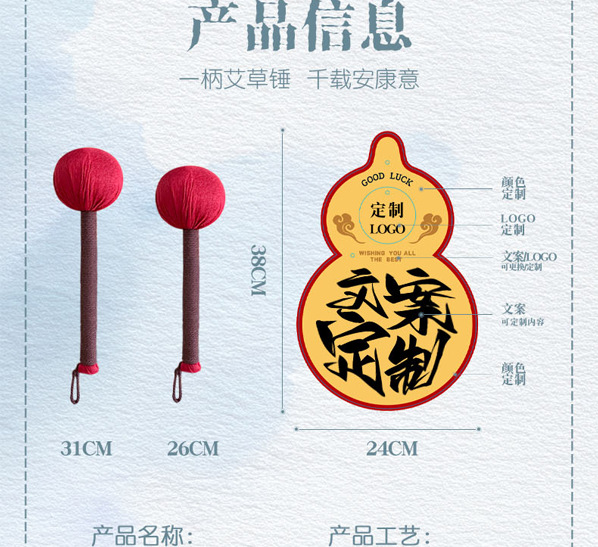 新年伴手礼艾草锤葫芦挂件摆件开业年会酒店伴手礼物实用定制logo