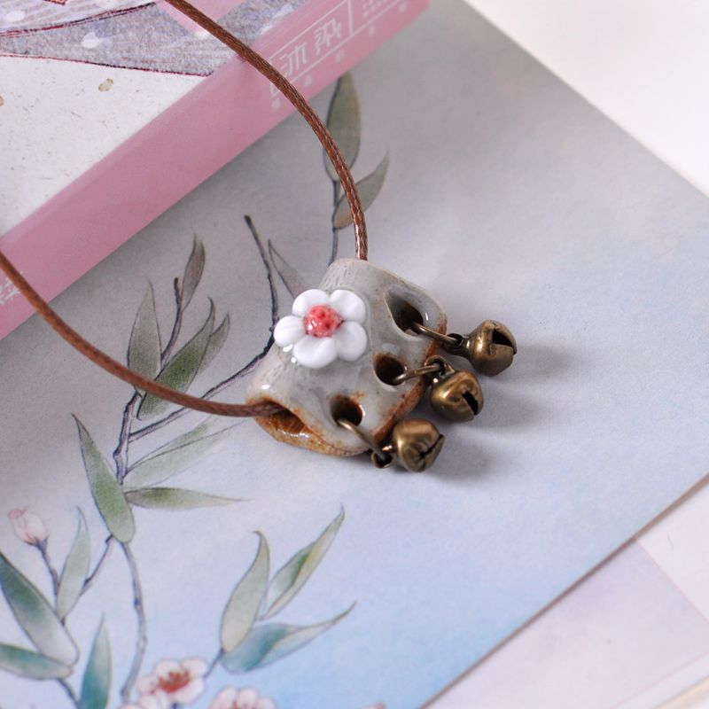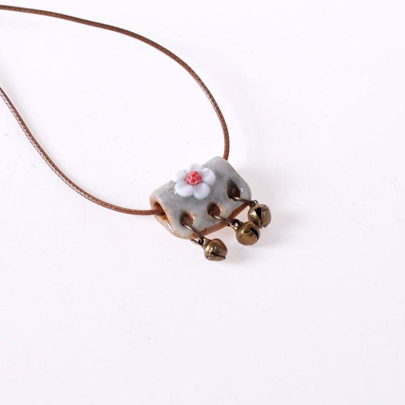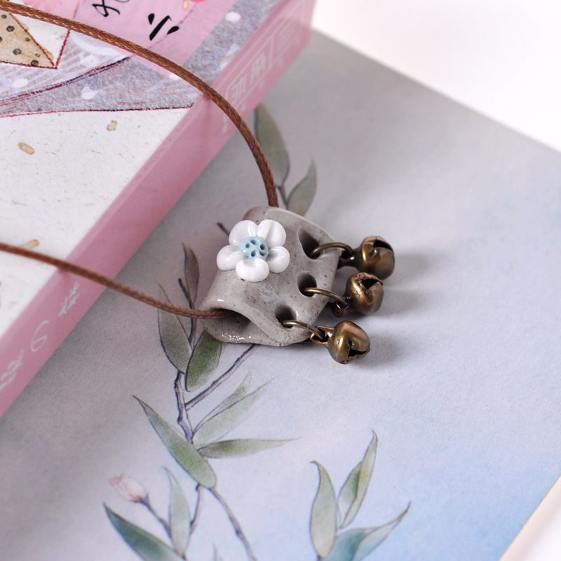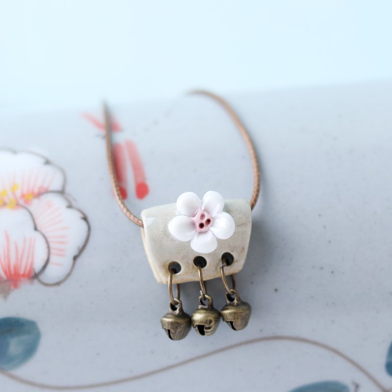 文艺森系手工陶瓷石上封花梅玲吊坠项链地摊商品可爱花锁骨链饰品