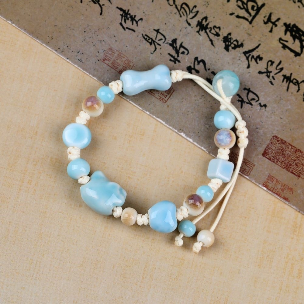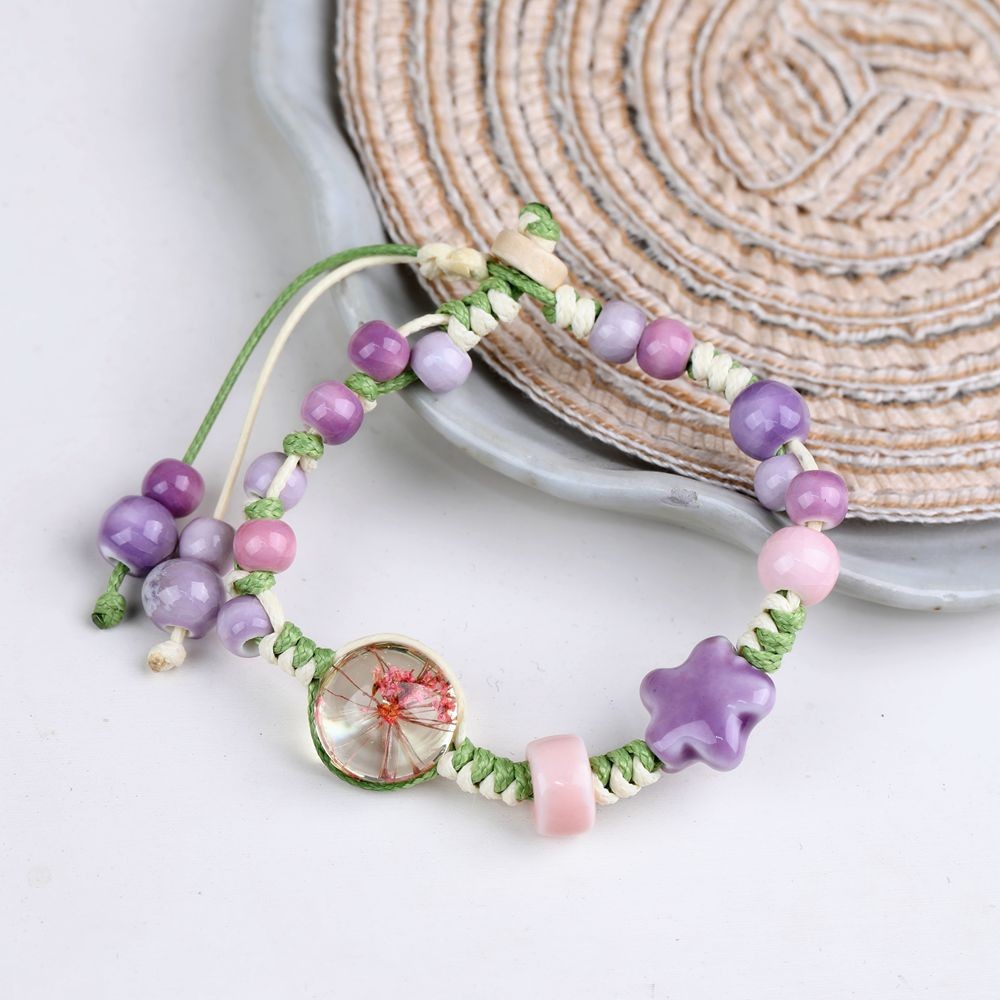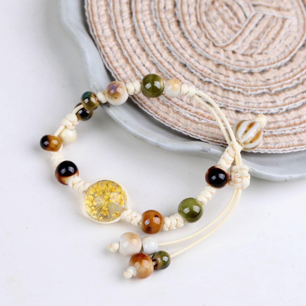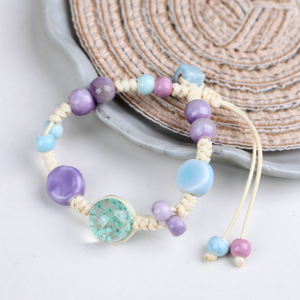 景德镇陶瓷手链男女同款地摊货源十元货源满天星玻璃球干花手链