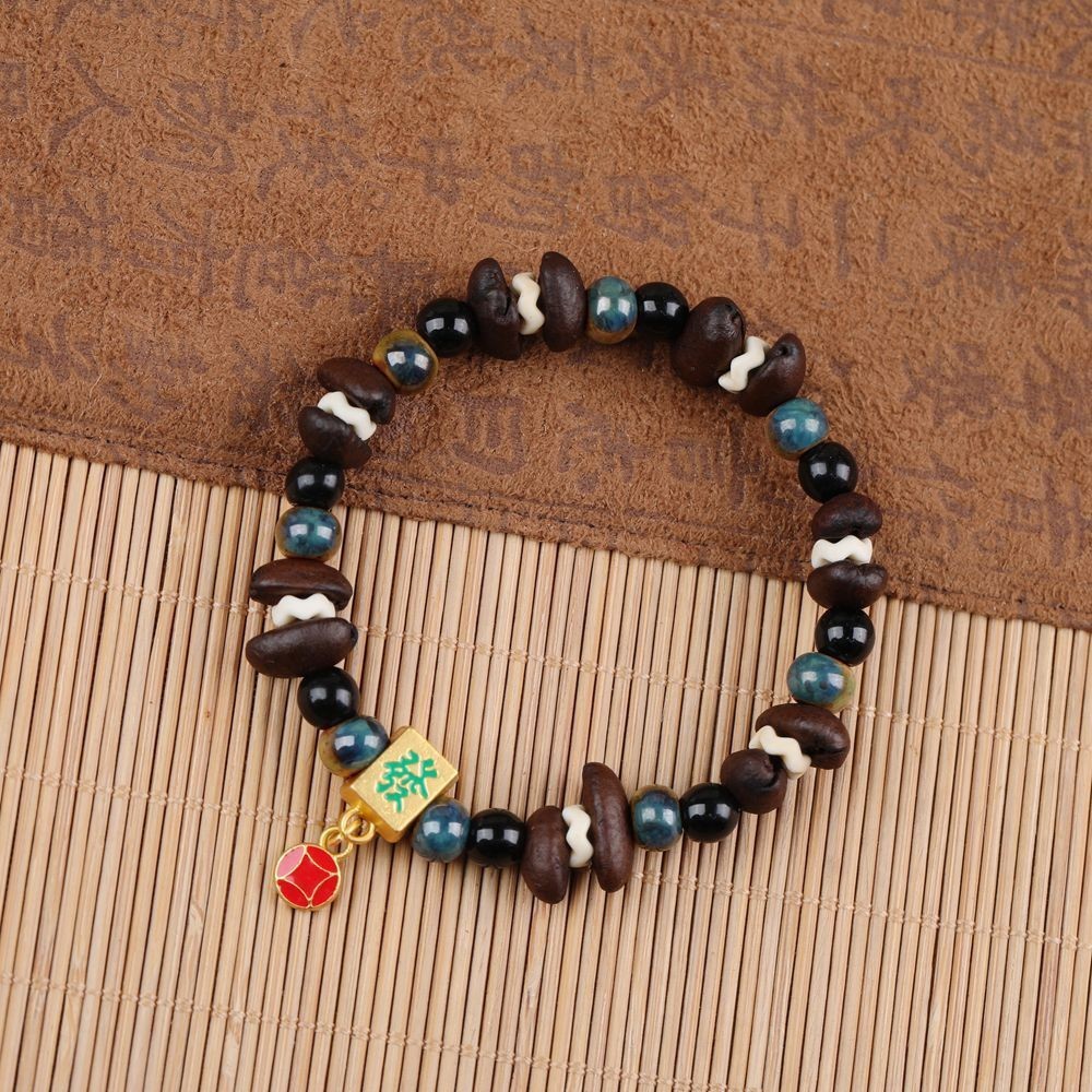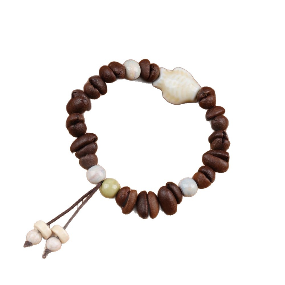 发财咖啡豆串珠陶瓷手链 女生闺蜜情侣小众设计可爱鱼系摆摊批发