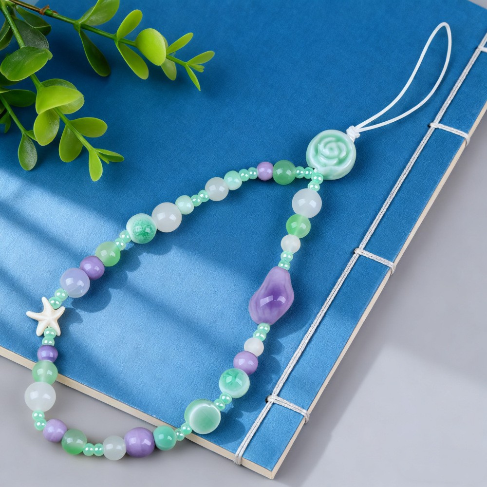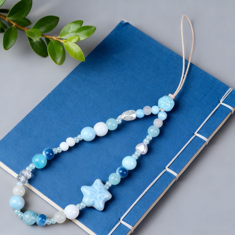 个性创意串珠陶瓷海星系列水晶挂绳学生闺蜜手机链挂饰通用包挂绳