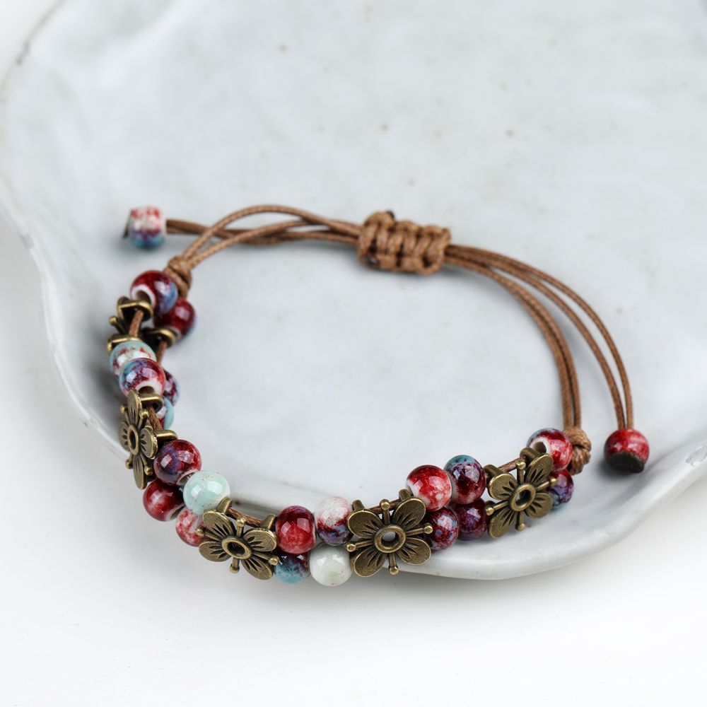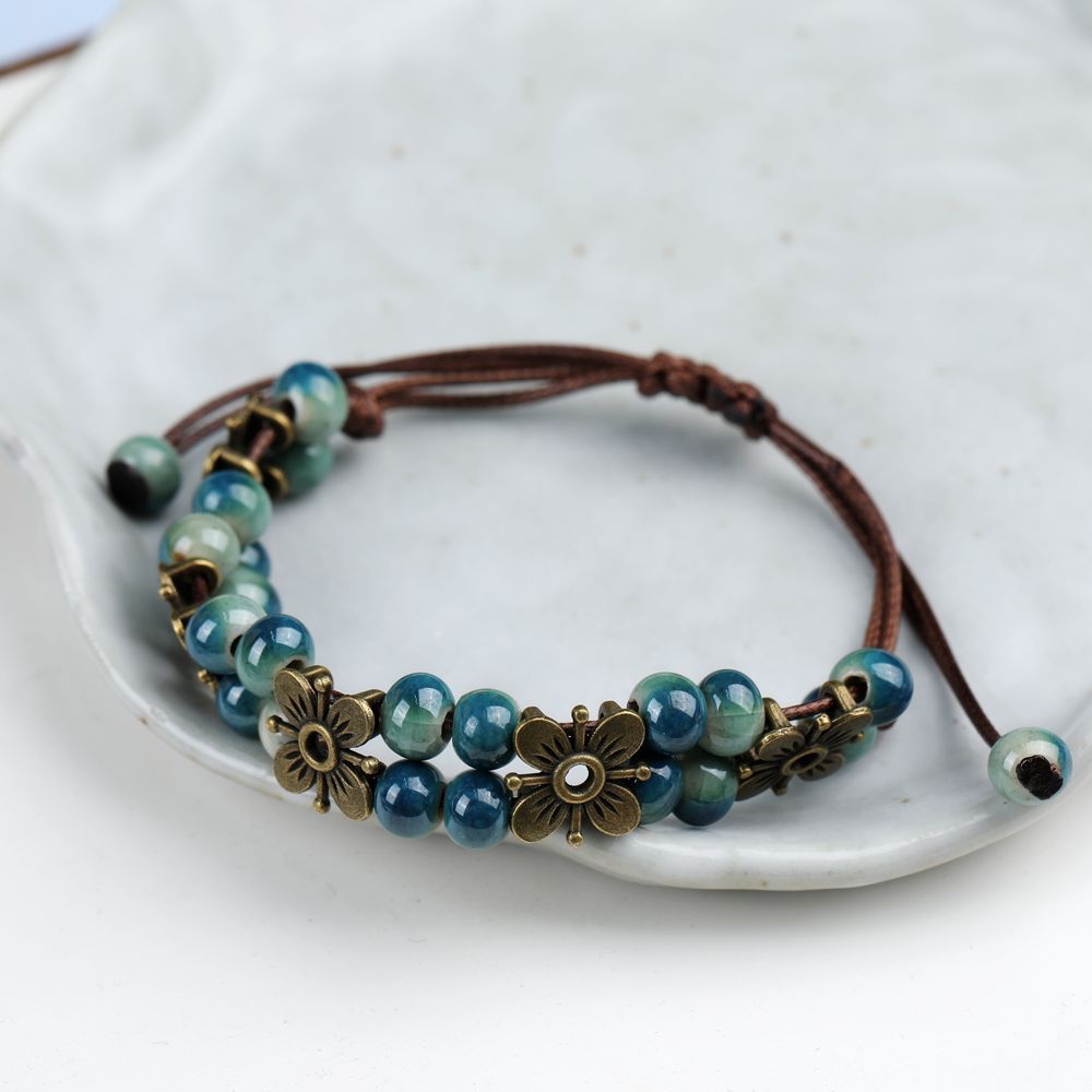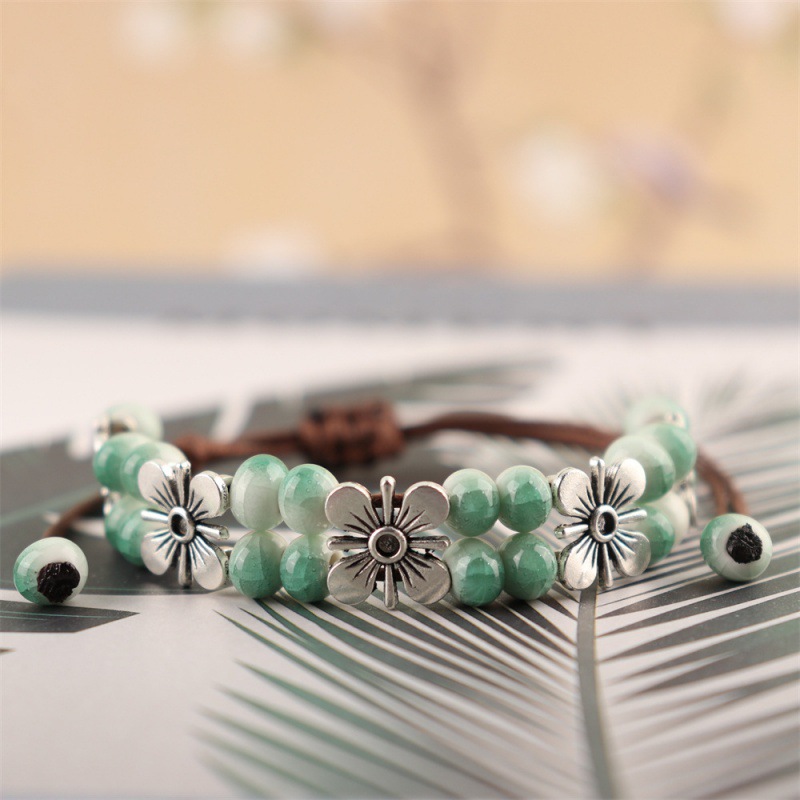 四叶草全手工编制珠链 古铜民族风闺蜜手链 叶子饰品批发地摊货源