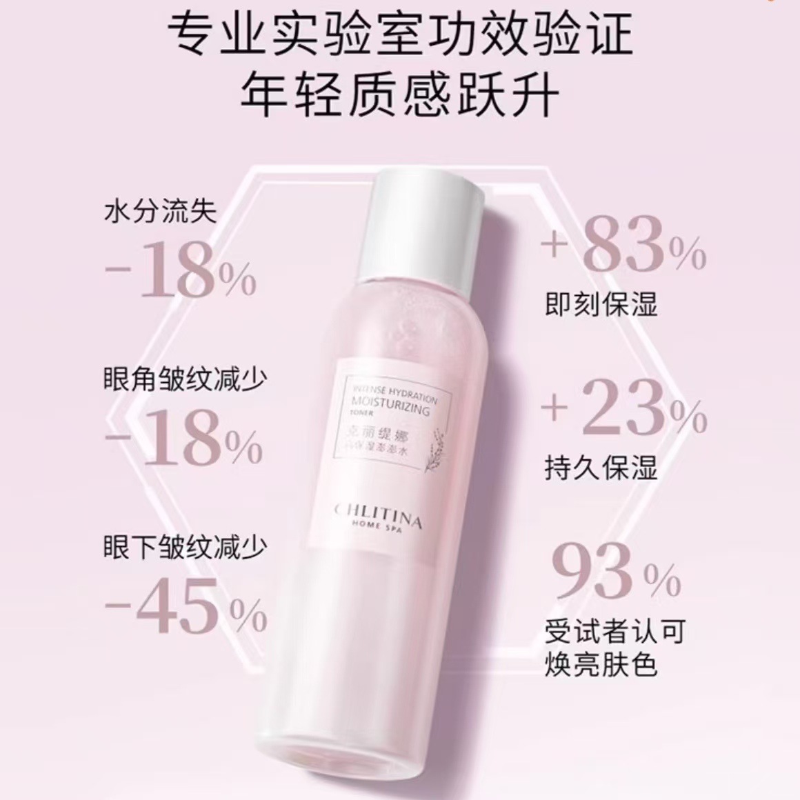 克丽缇娜四抗高保湿澎澎水有效锁住水分并淡化因干燥而引起的干纹