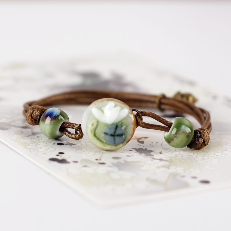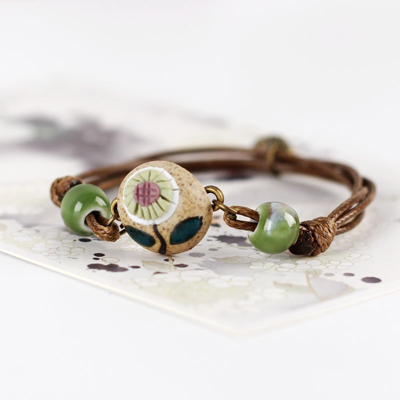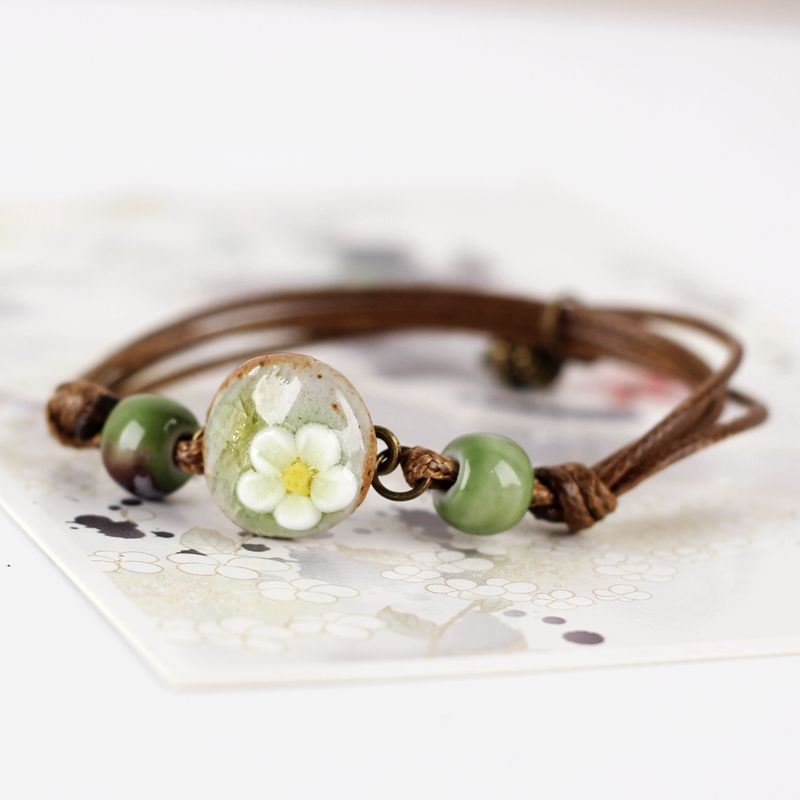 石上花语清新森系地摊手链民族编织陶瓷花朵手工闺蜜女陶瓷手链