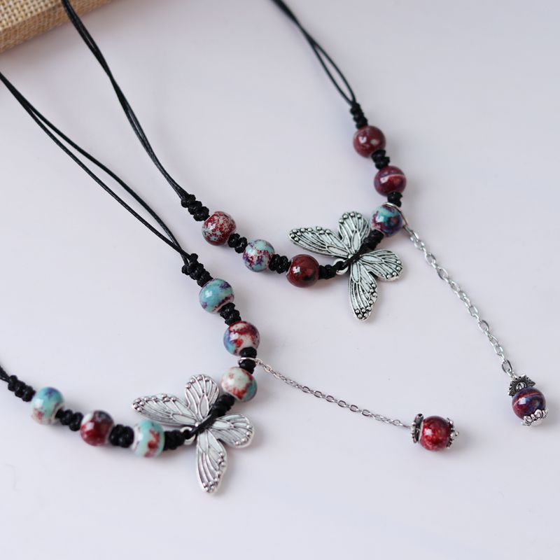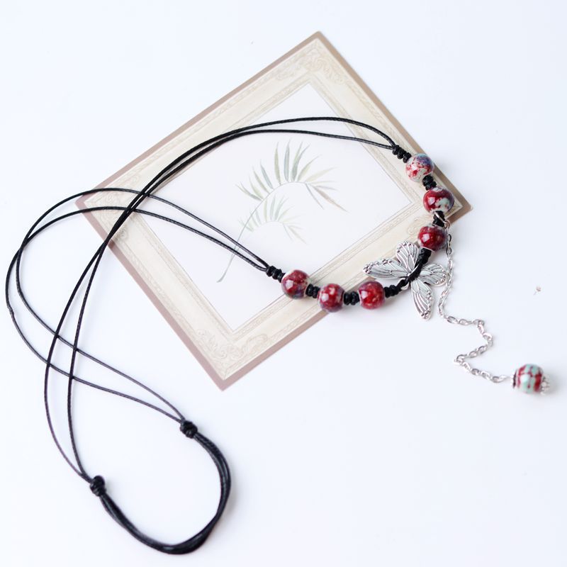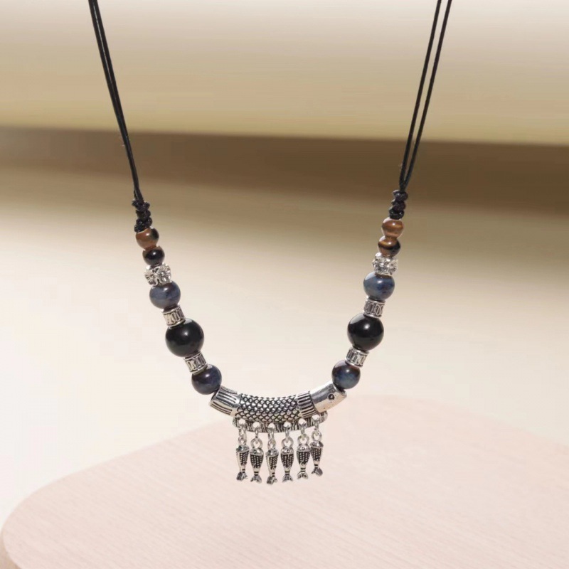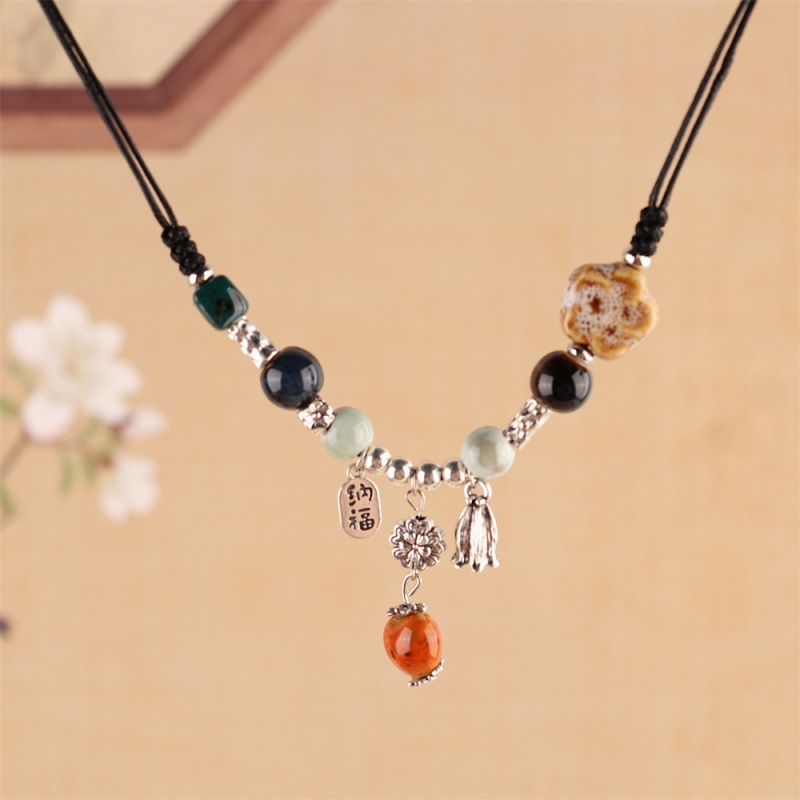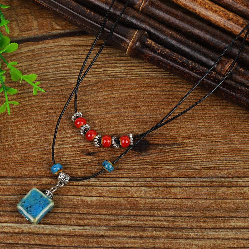 批发陶瓷毛衣链 复古民族风服装配饰 几何型秋冬毛衣项链地摊货源