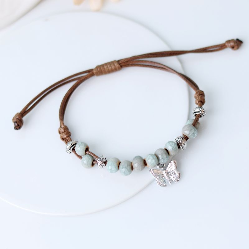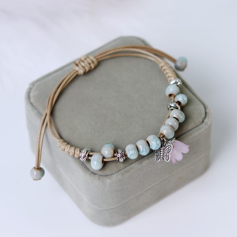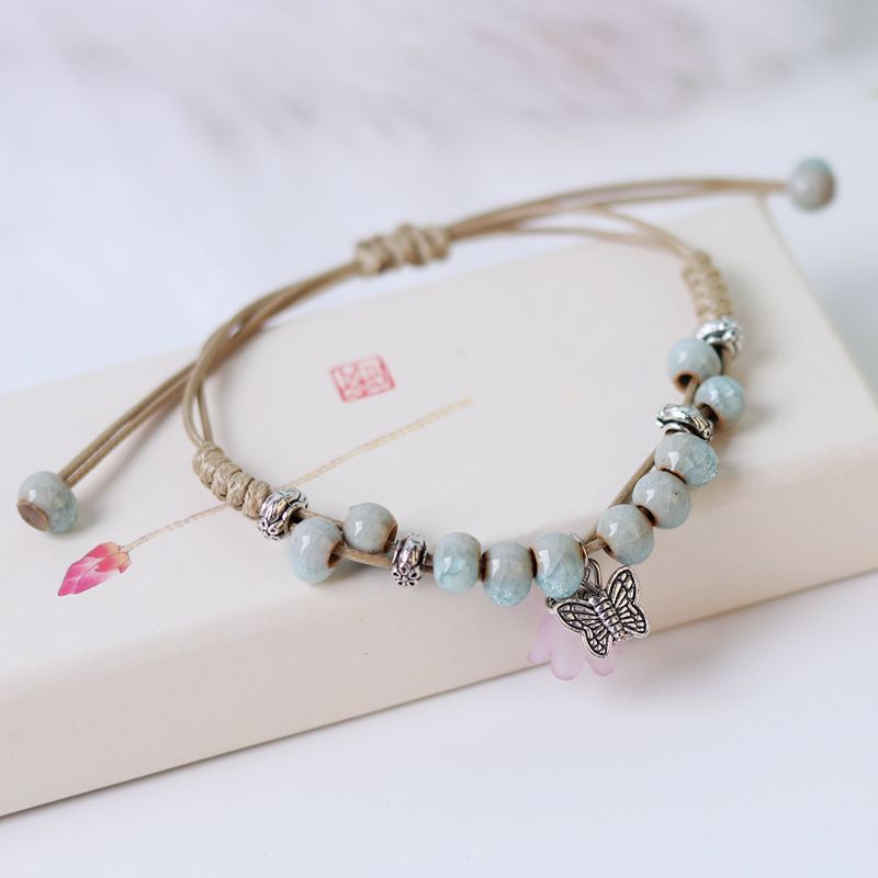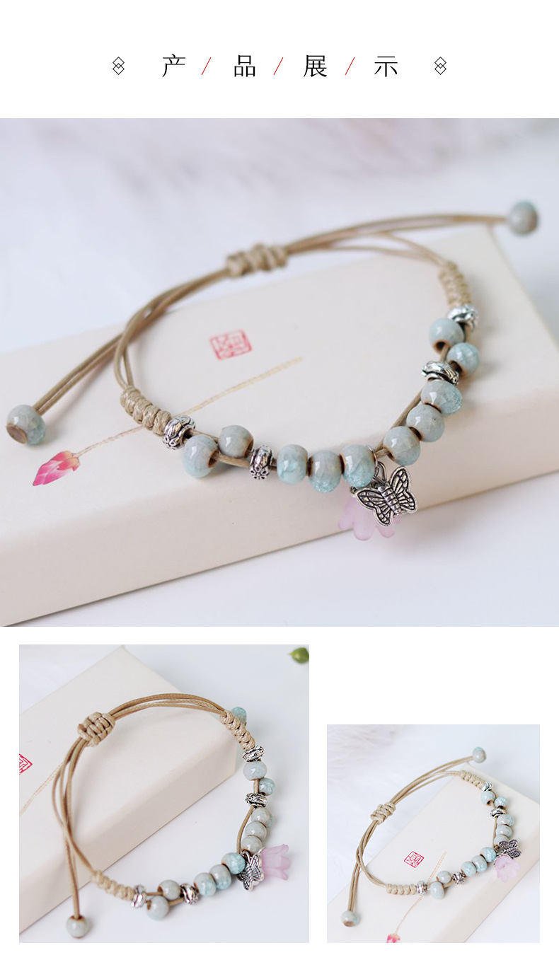 厂家货源景德镇陶瓷饰品民族风创意手工编织蝴蝶手链女小清新手饰