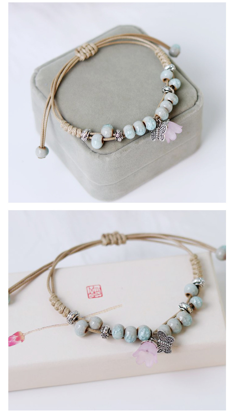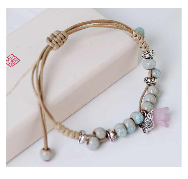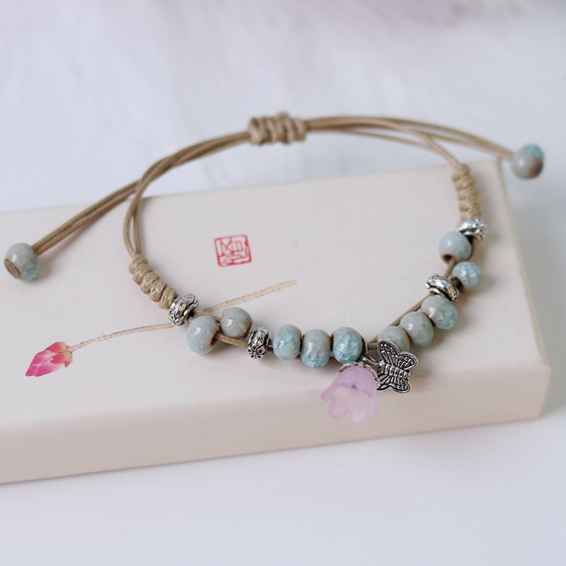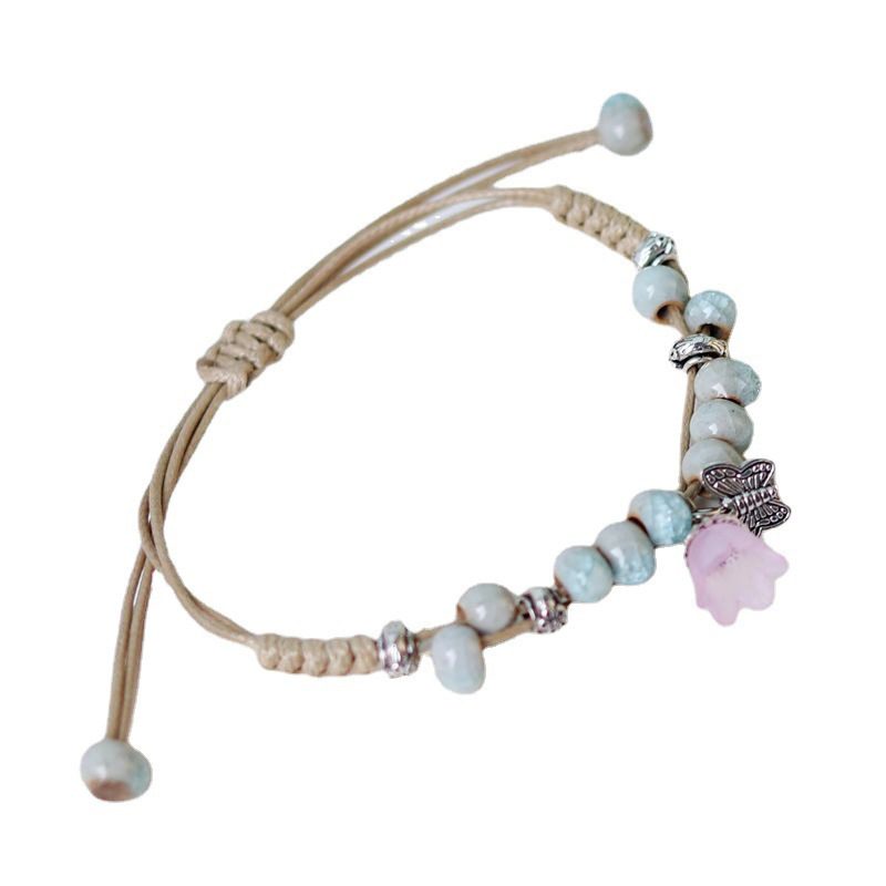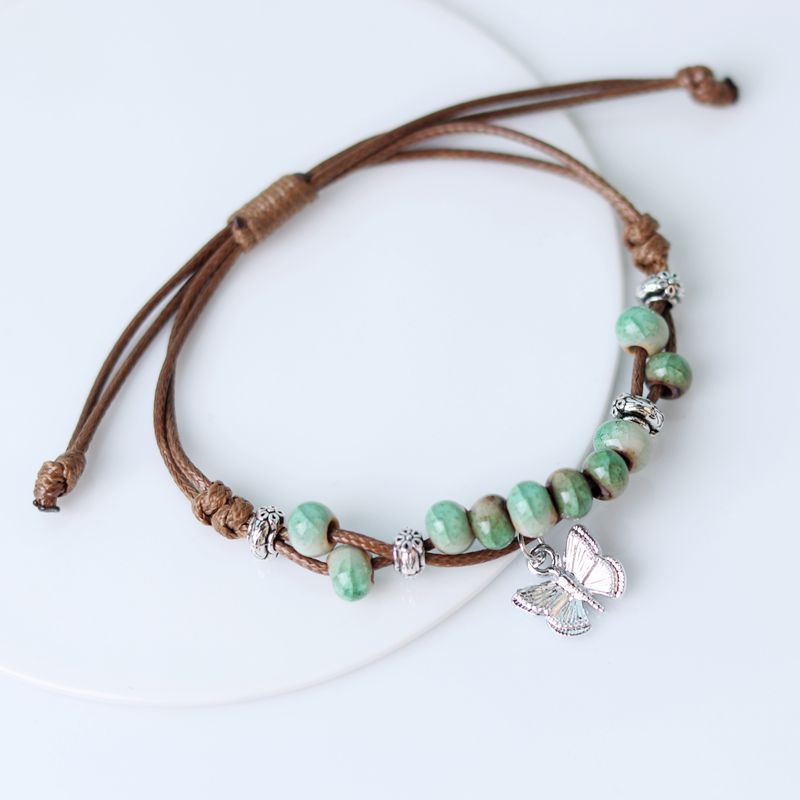 厂家货源景德镇陶瓷饰品民族风创意手工编织蝴蝶手链女小清新手饰