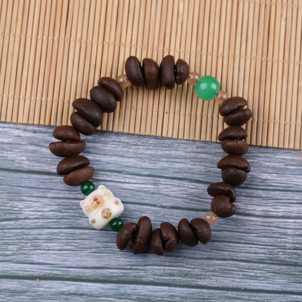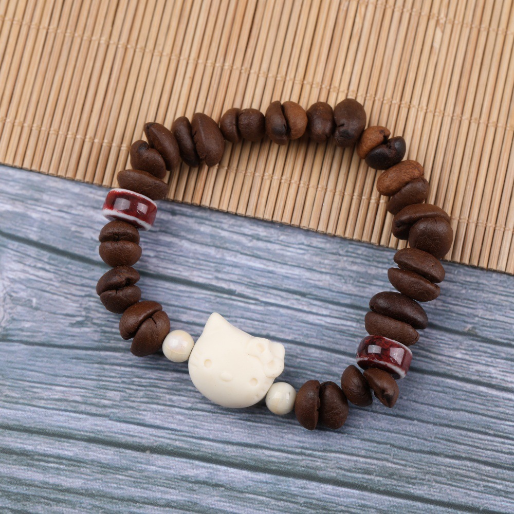 多巴胺卡通猫咪可爱风手串 陶瓷象牙果木珠松石拼接咖啡豆手串女