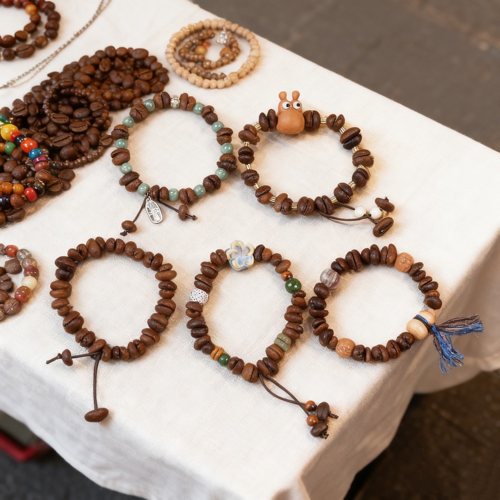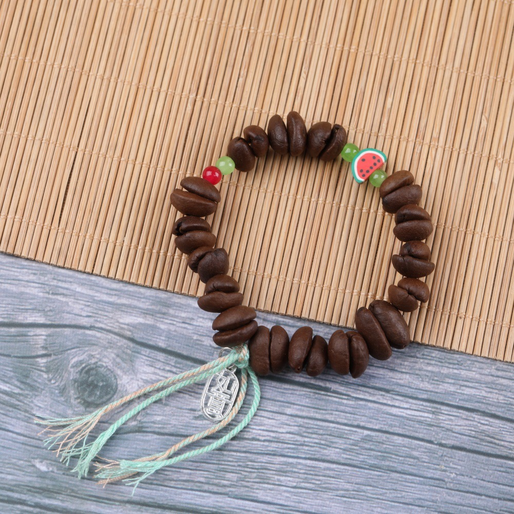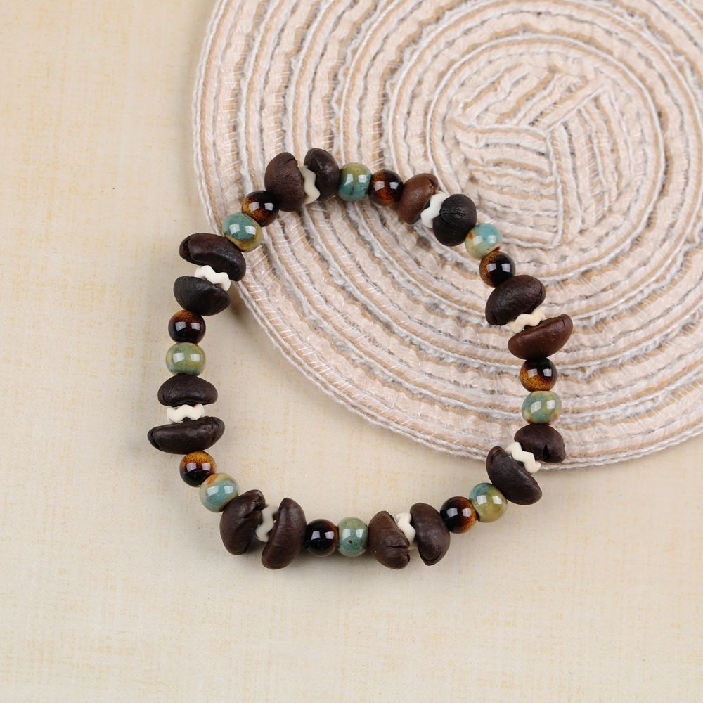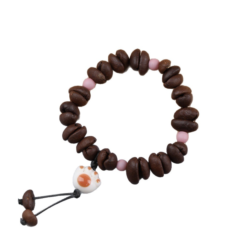 dopamine cartoon cute-style bracelet: ceramic, ivory nut, wooden bead, and turquoise combined with coffee bean beads — women’s bracelet.