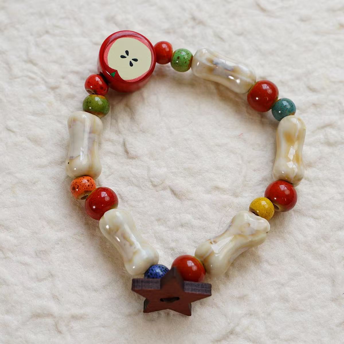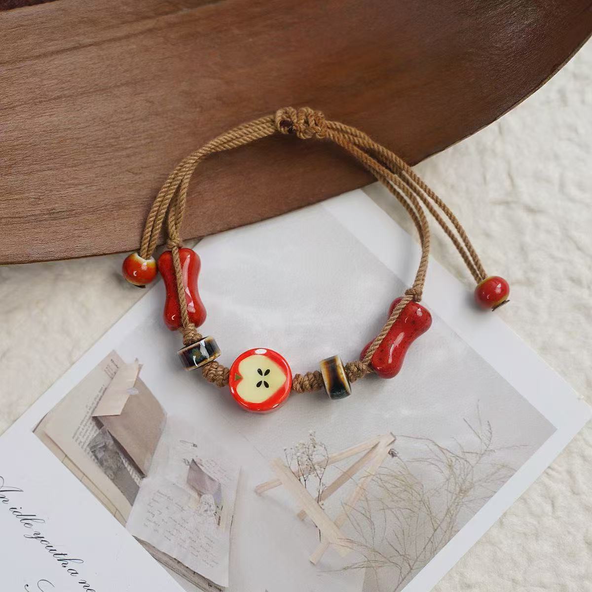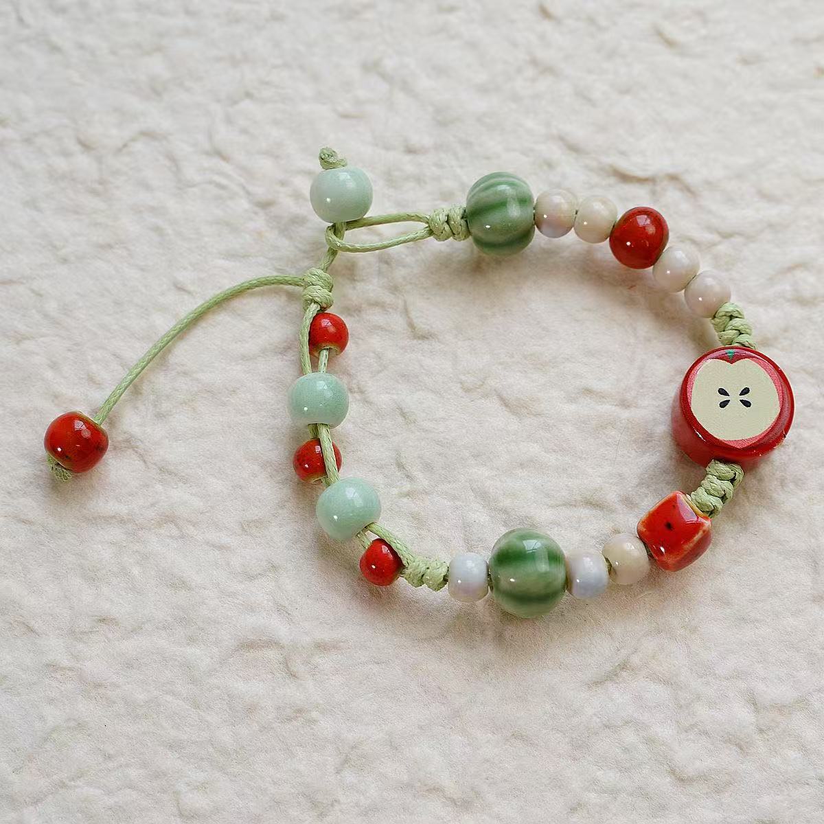 景德镇新款可爱风清新平安圣诞节陶瓷手串手饰苹果元素饰品