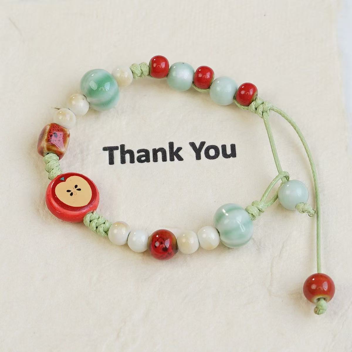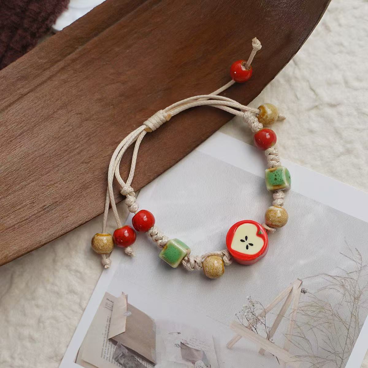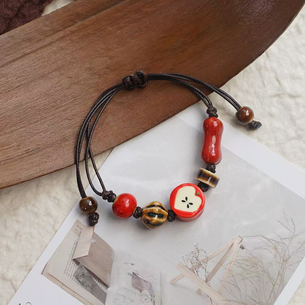 景德镇新款可爱风清新平安圣诞节陶瓷手串手饰苹果元素饰品