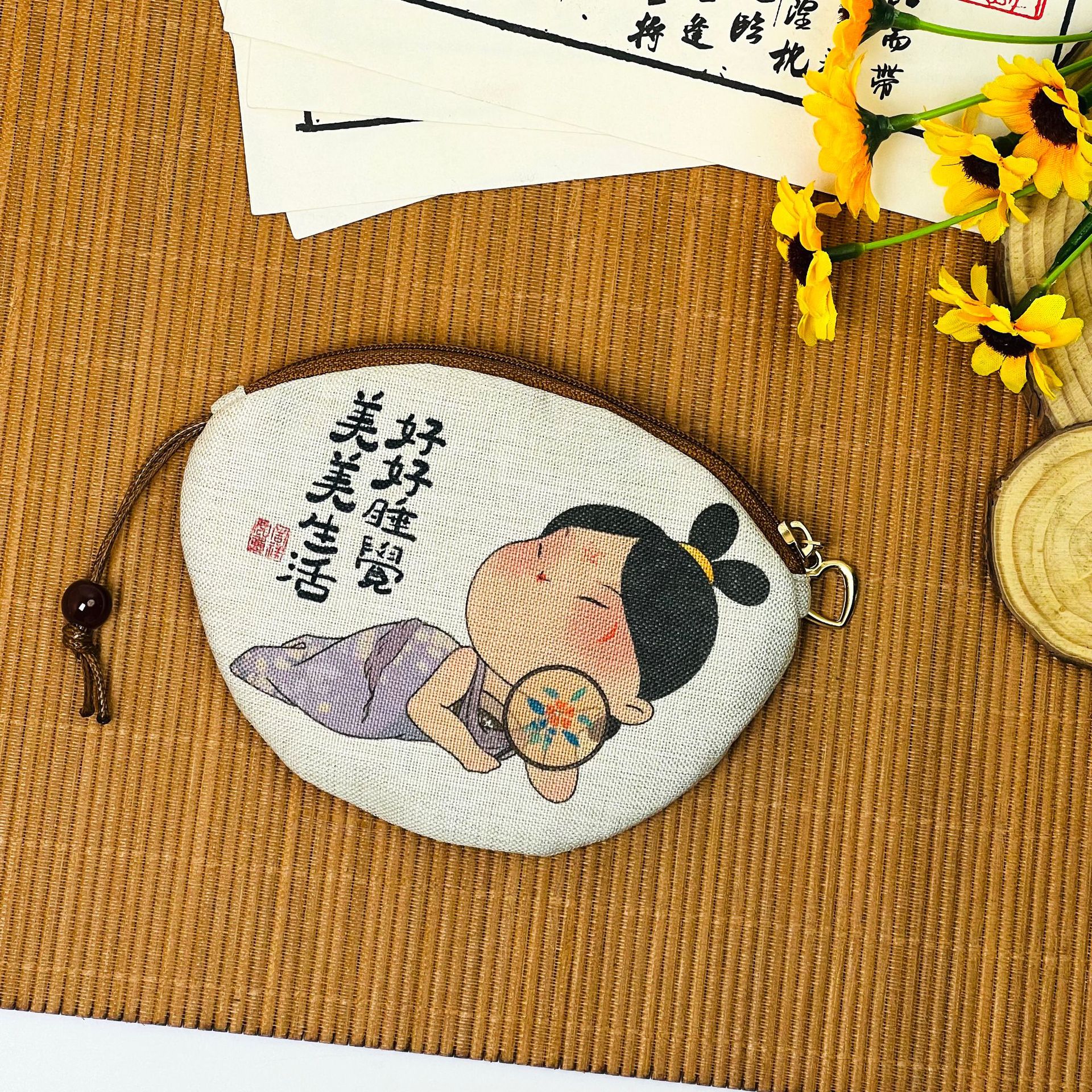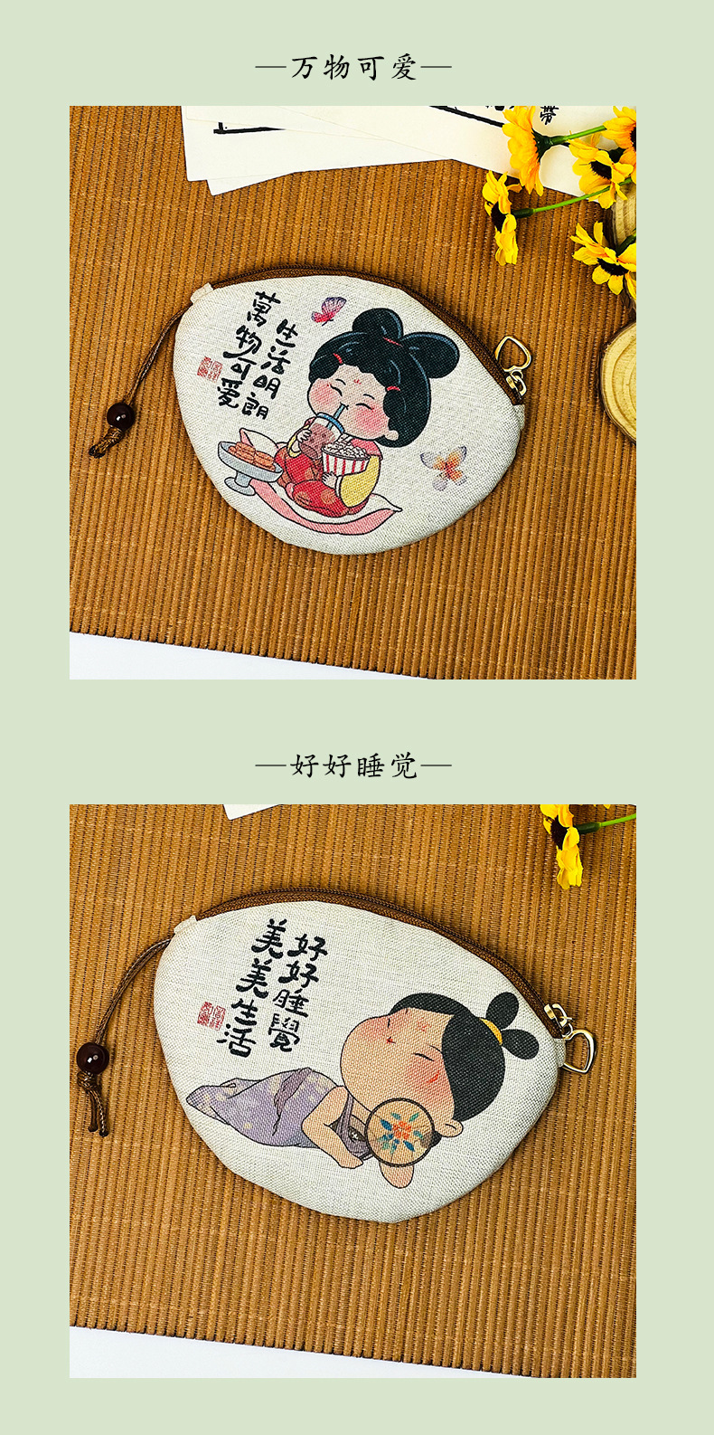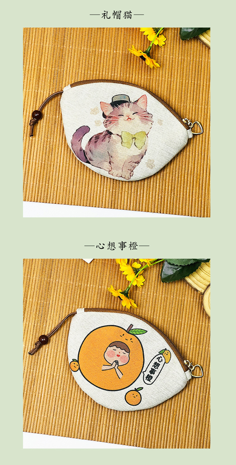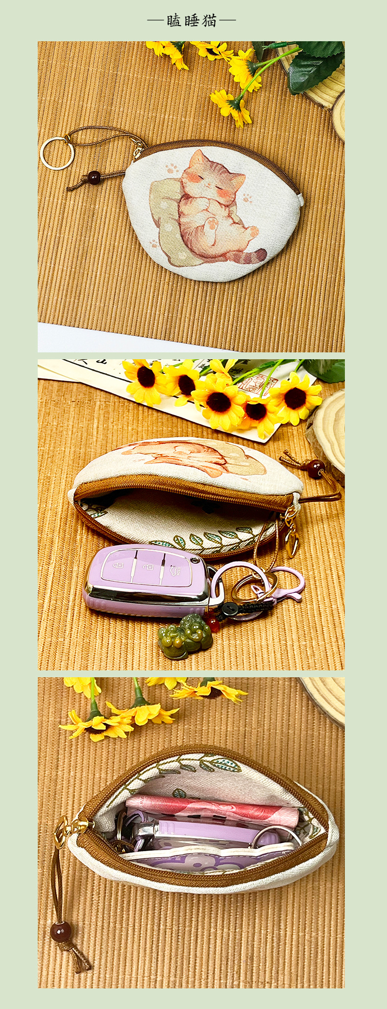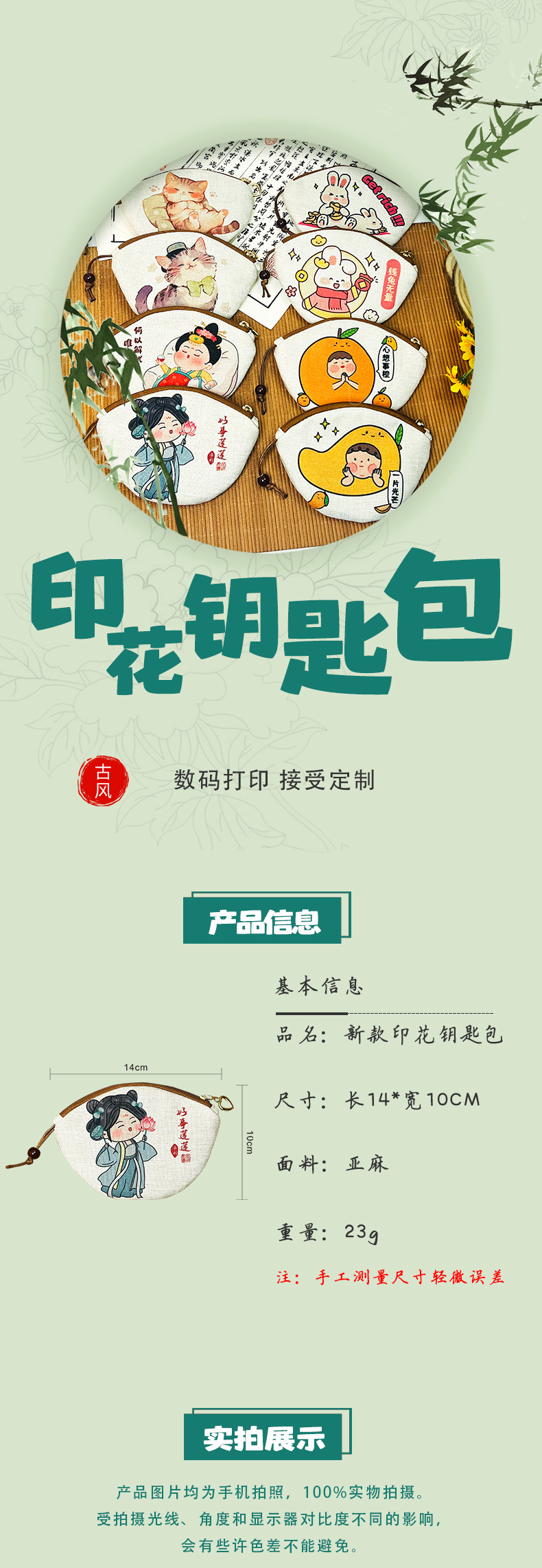 钥匙包淘宝爆款数码印花零钱包抽拉迷你小包国风手工布艺卡通卡包