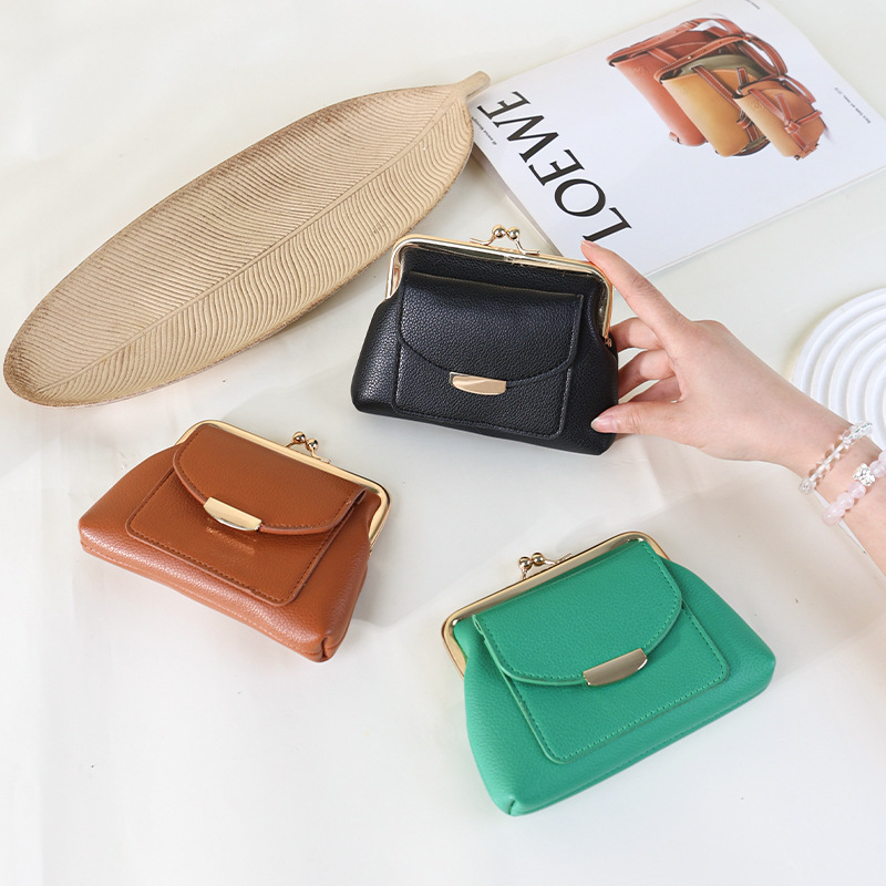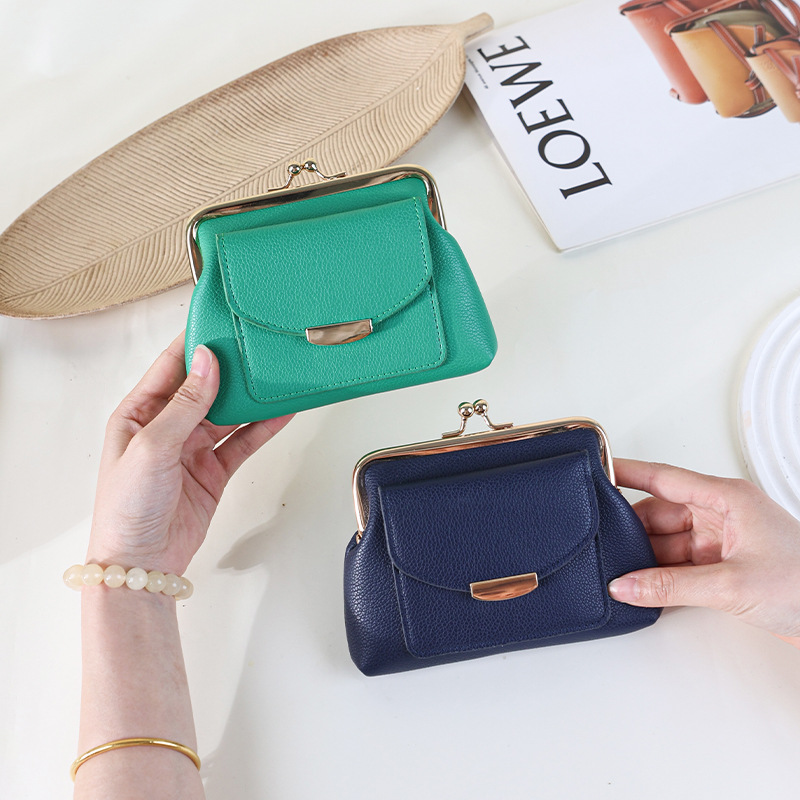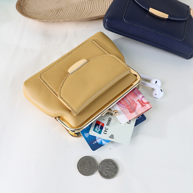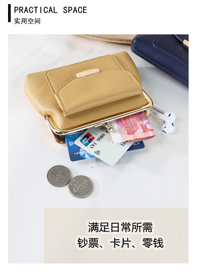 新款简约时尚夹子包荔枝纹小众迷你零钱包短款可爱潮流手拿包钱夹
