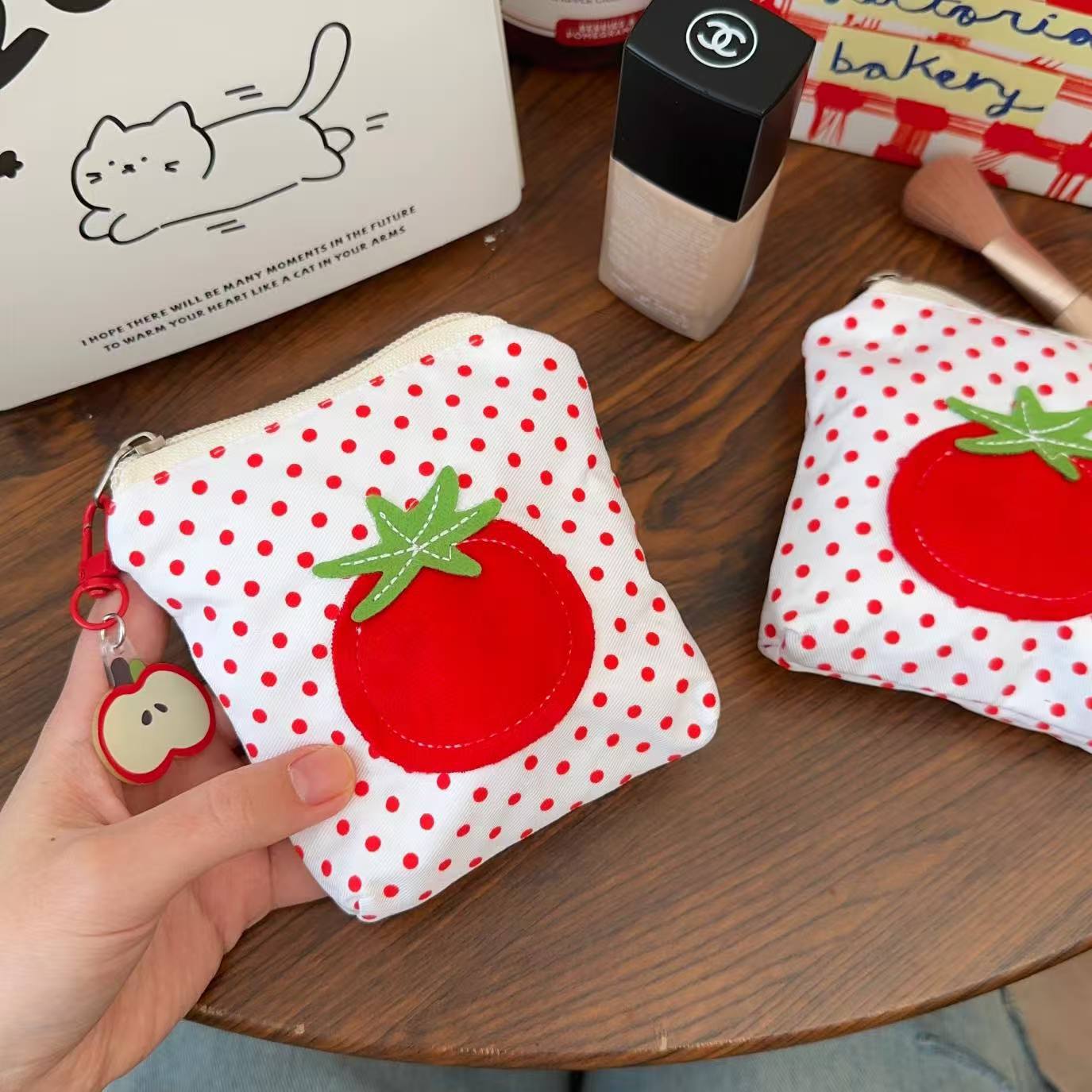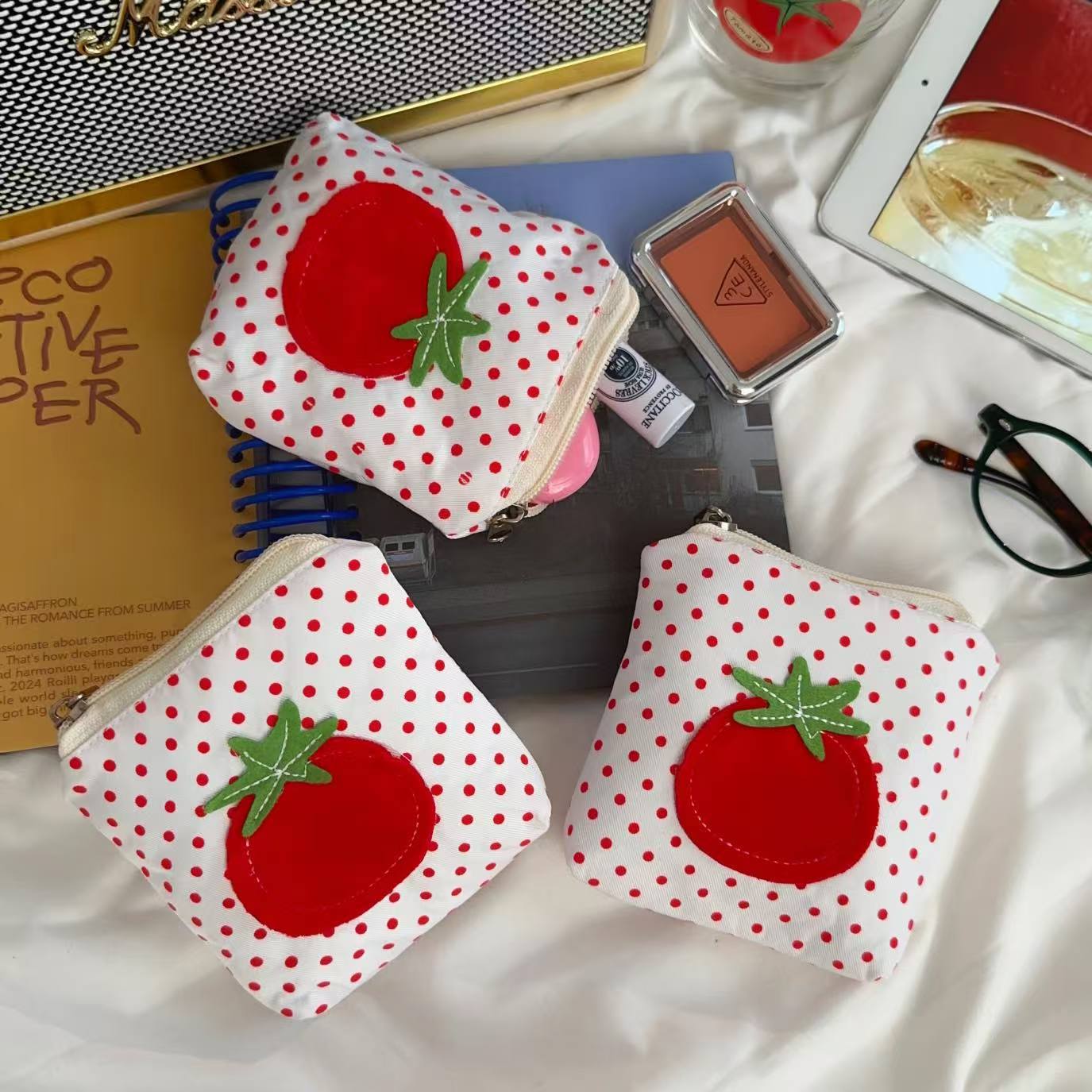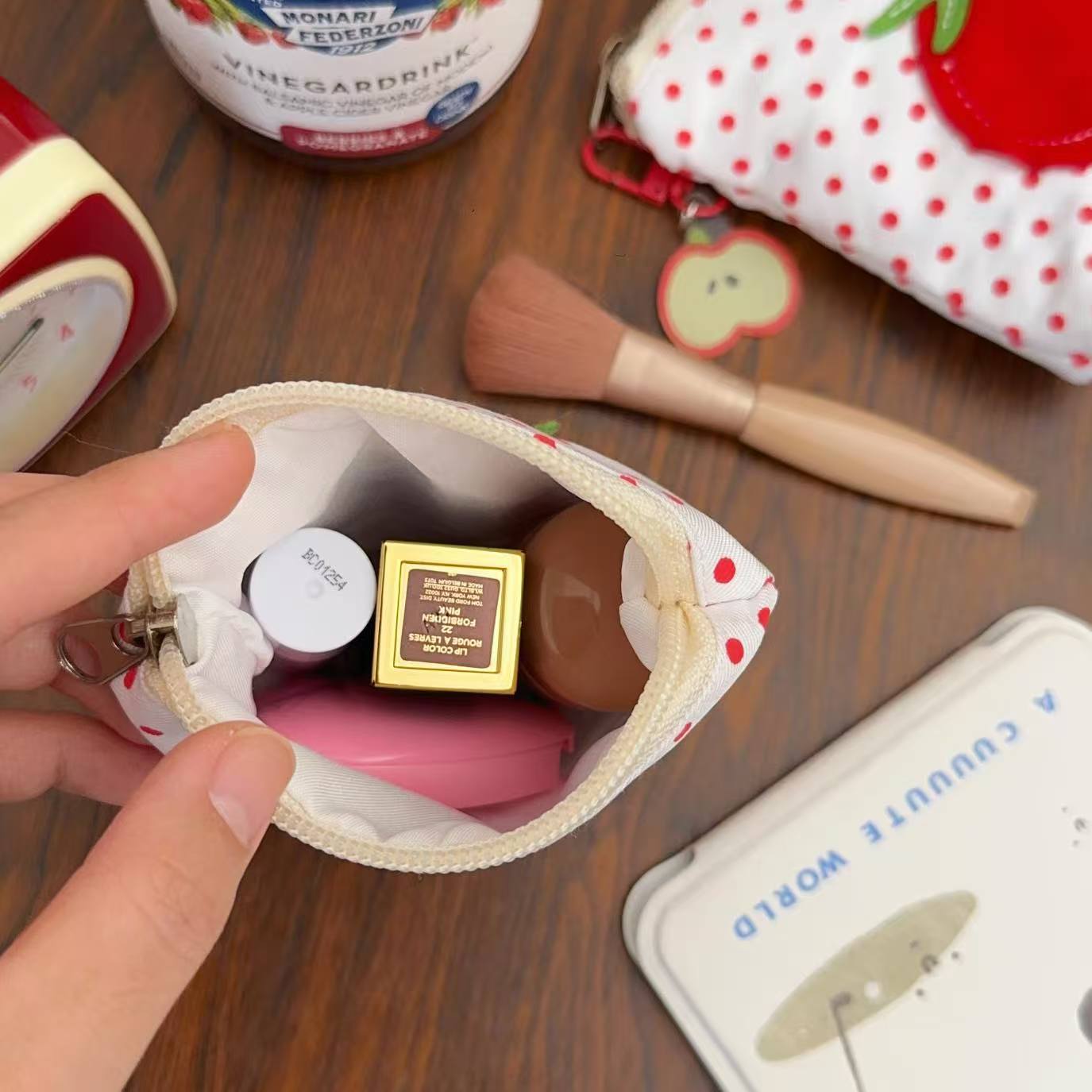 新款红色波点番茄零钱包迷你小包包韩版小巧便携口红耳机包收纳包