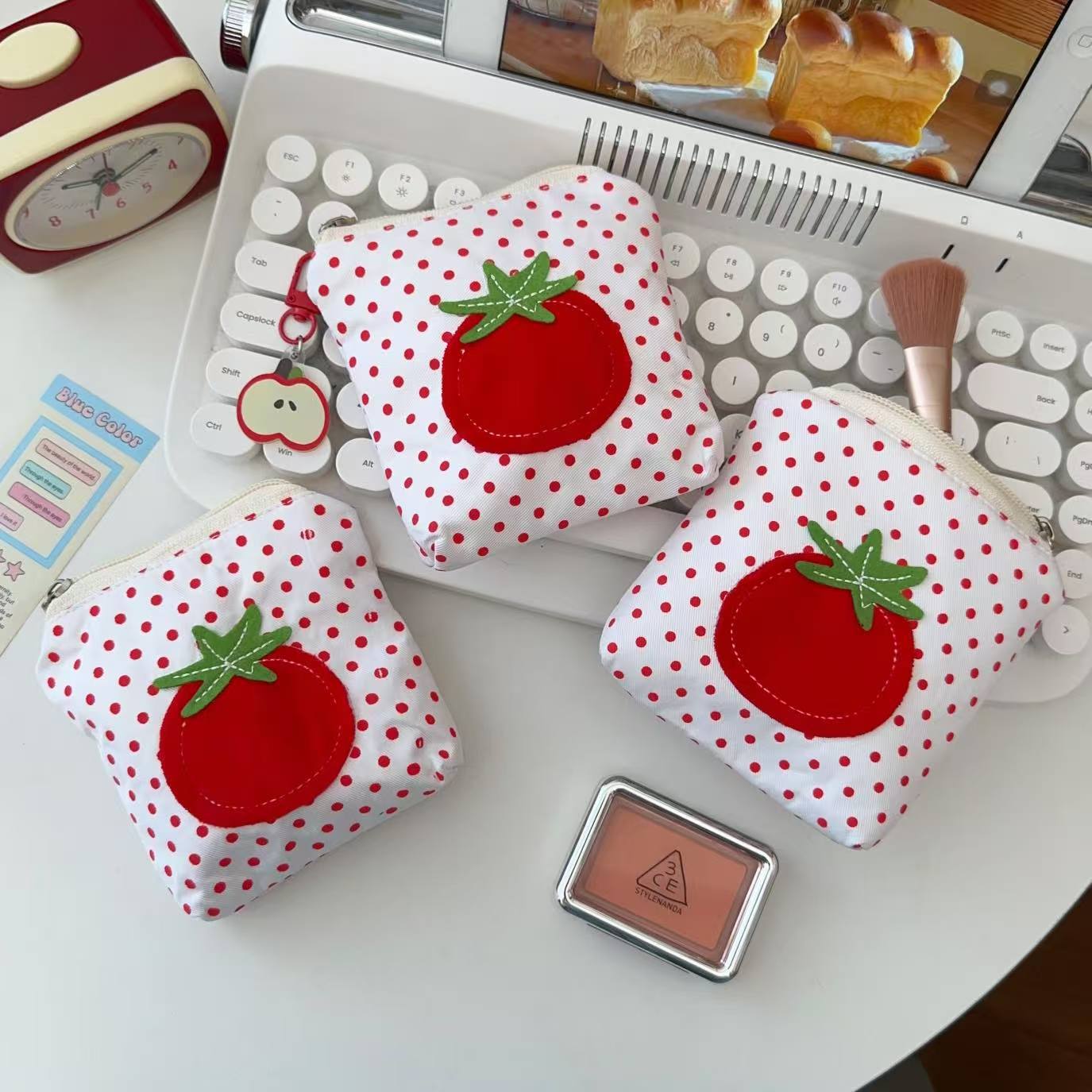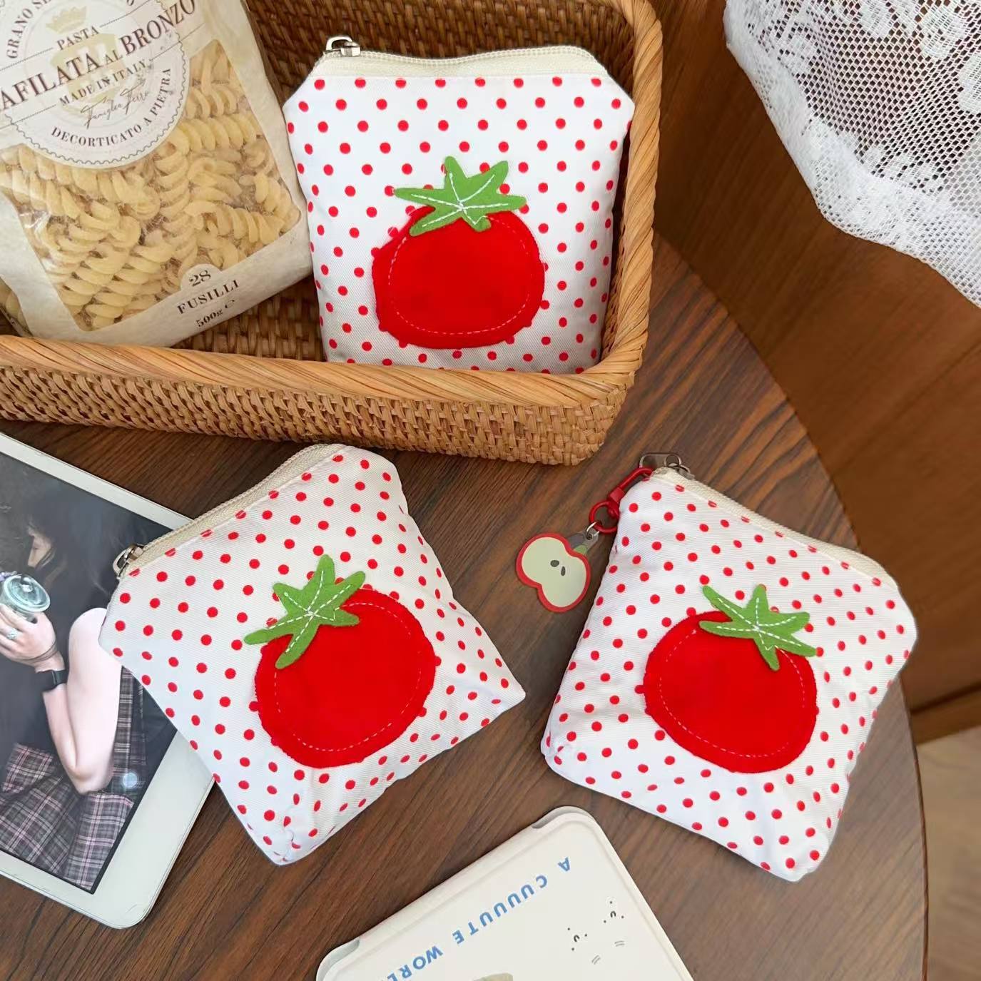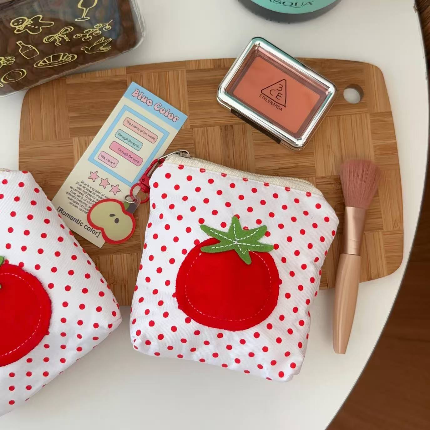 新款红色波点番茄零钱包迷你小包包韩版小巧便携口红耳机包收纳包