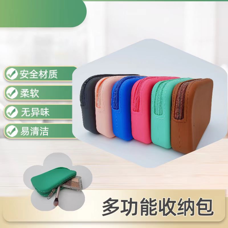 跨境硅胶零钱包多用途化妆包 钥匙数据线收纳包 防水防尘卫生巾包