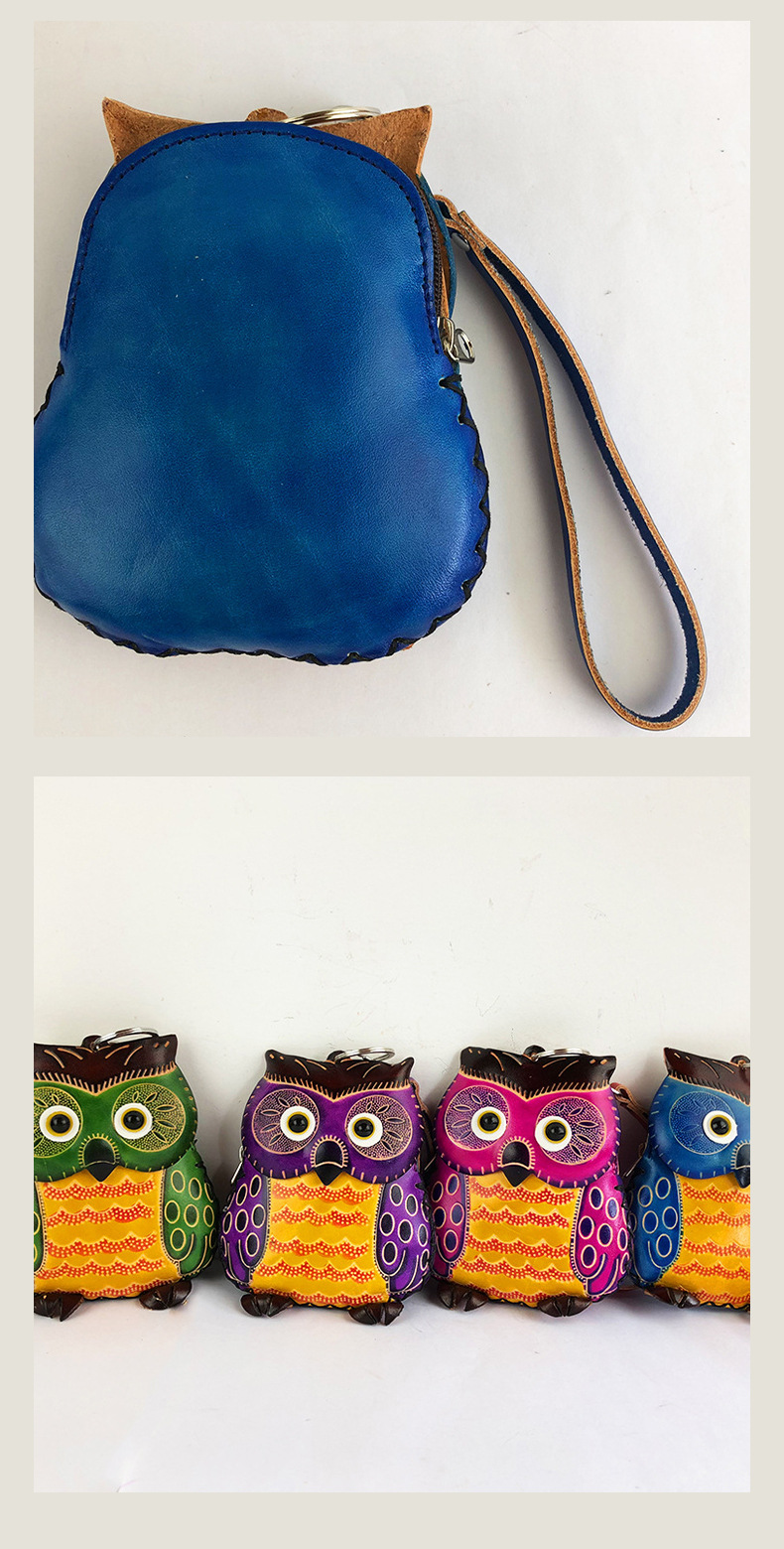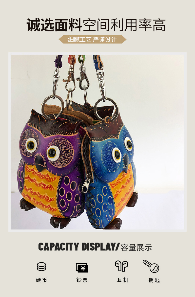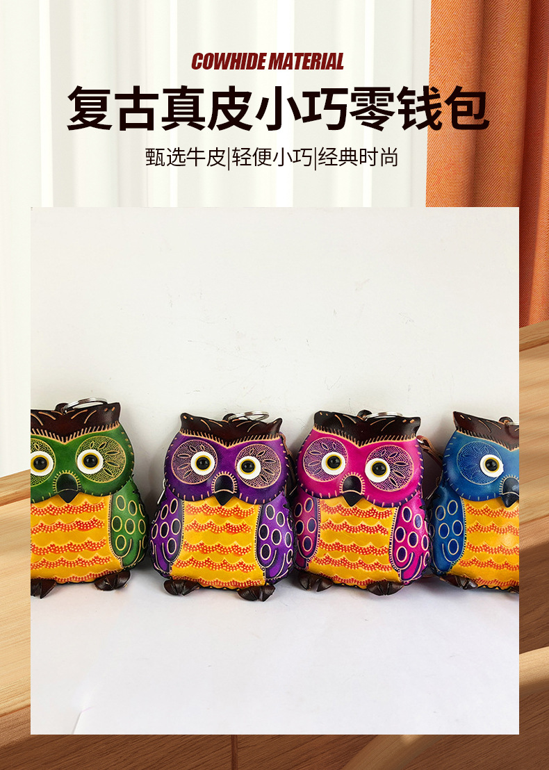 跨境手工牛皮猫头鹰零钱包个性可爱动物旅游纪念品卡通批发收纳