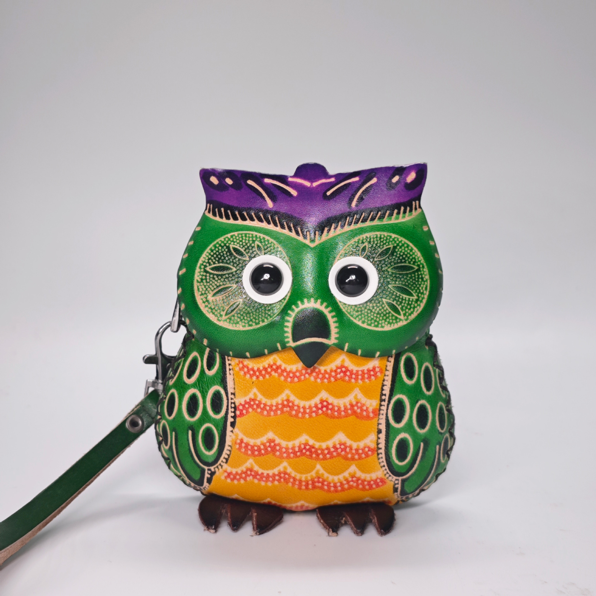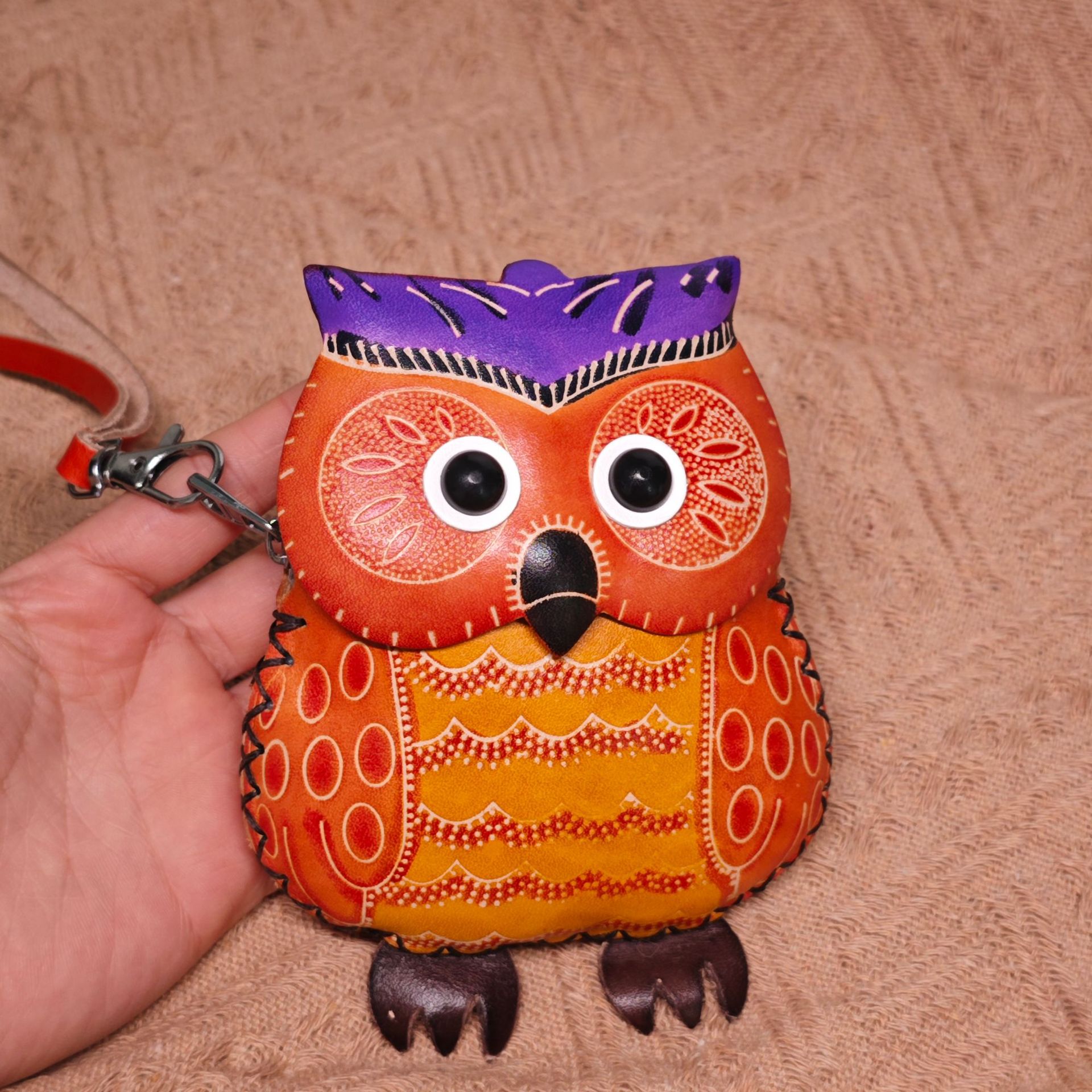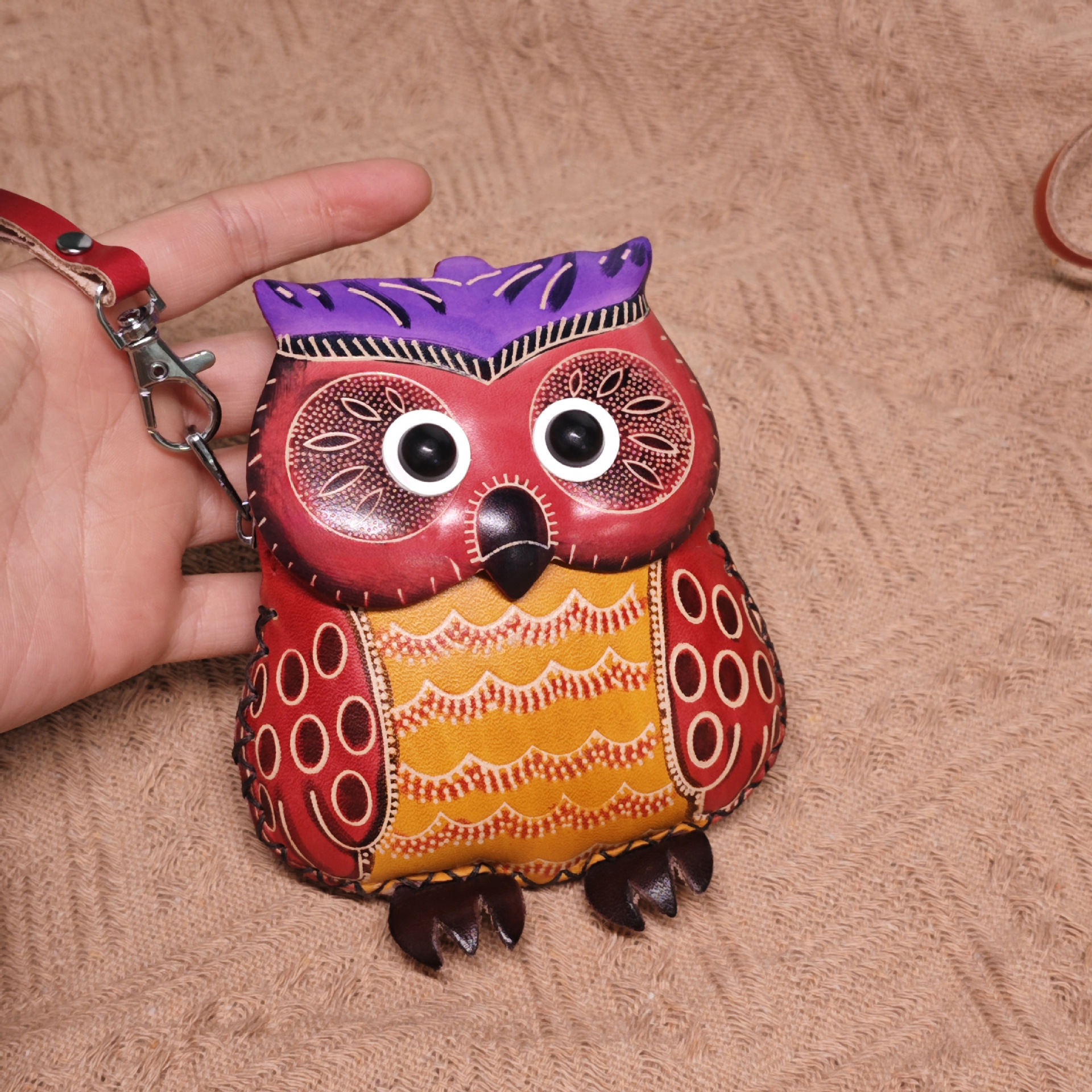 跨境手工牛皮猫头鹰零钱包个性可爱动物旅游纪念品卡通批发收纳