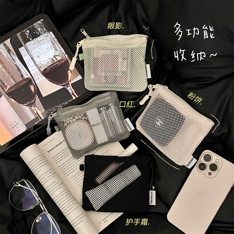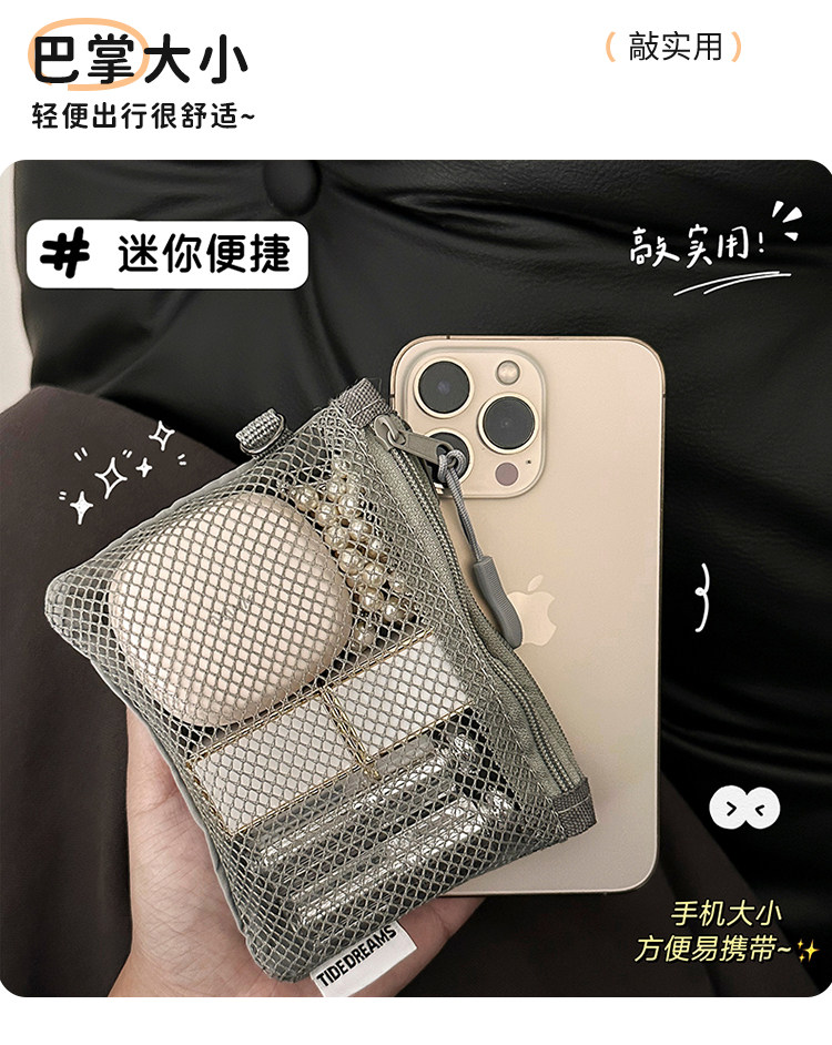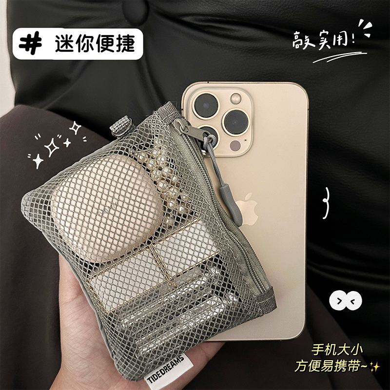 网格纳包迷你便携式随身零钱包化妆包数据线耳机包小物收纳双层包