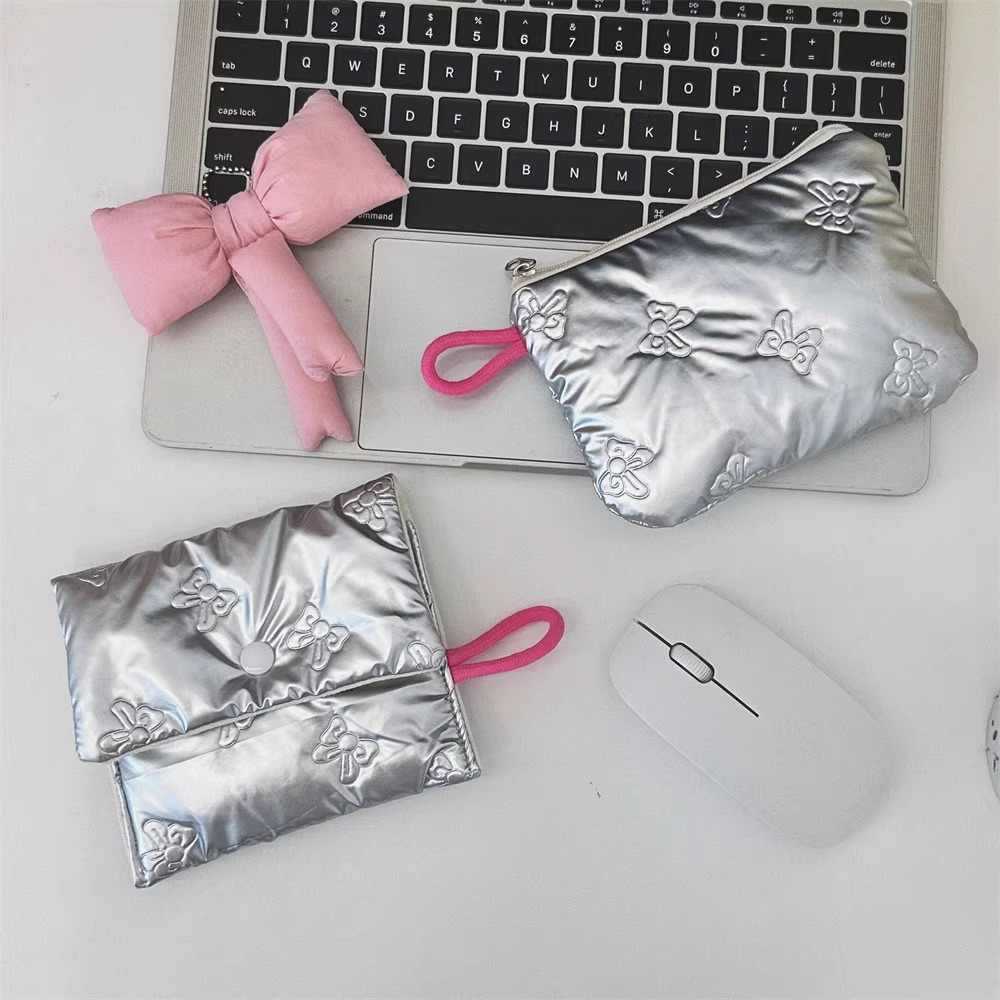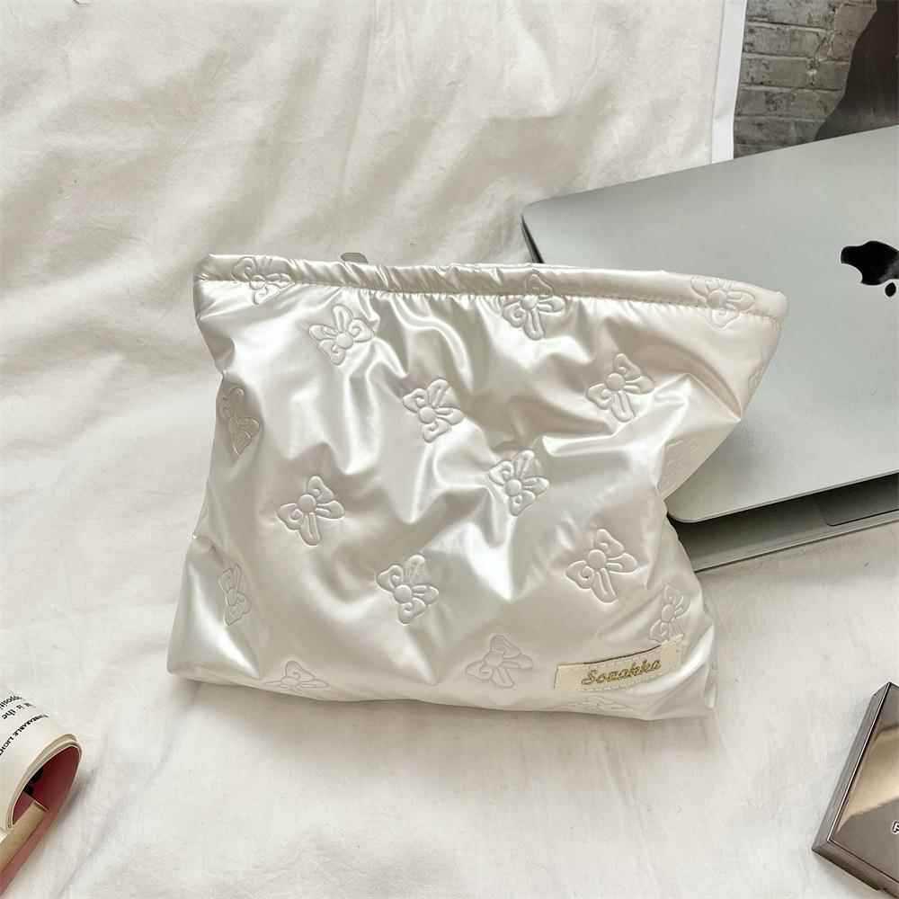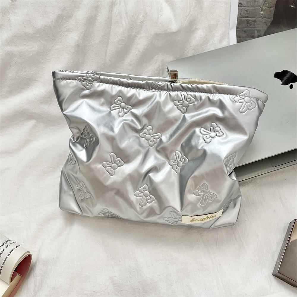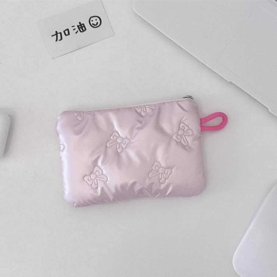 韩国ins博主菱格绗缝化妆包女可爱手拿包便携随身小零钱包纳包