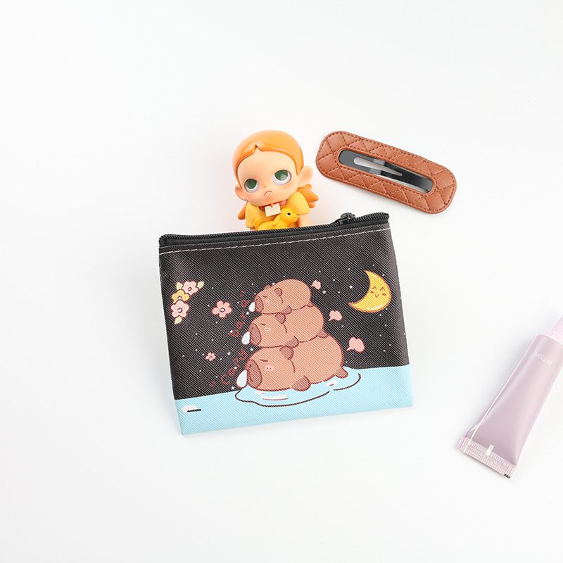 卡皮巴拉零钱包迷你小包ins风豚水儿童水豚卡包PU小包包随身便携