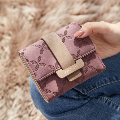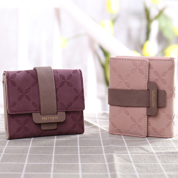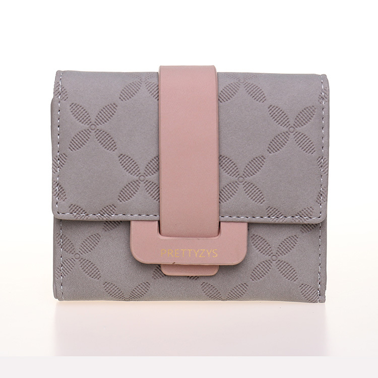 PRETTYZYS普瑞蒂亚马逊韩版女士短款钱包韩版格纹搭扣折叠零钱包