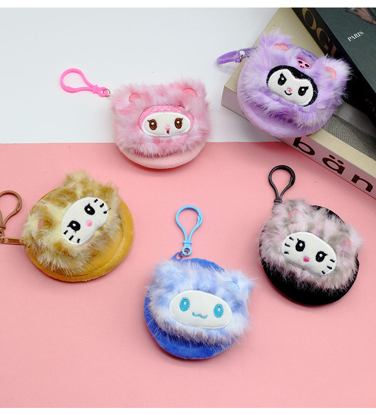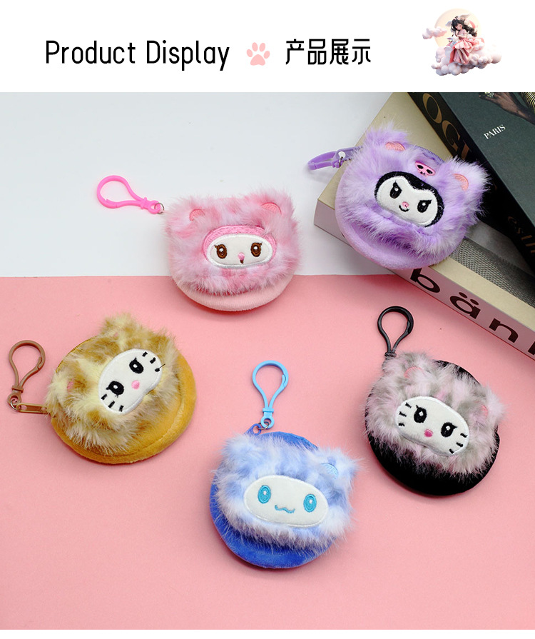 ins风 猫咪耳朵头套毛绒零钱包卡通少女高颜值小钱包耳机硬币收纳