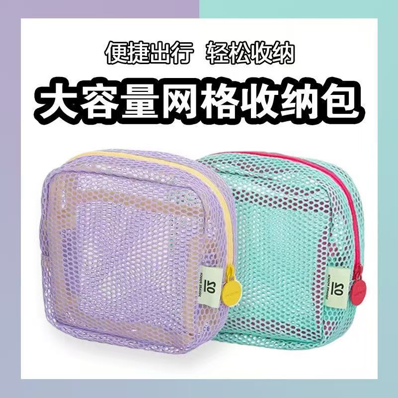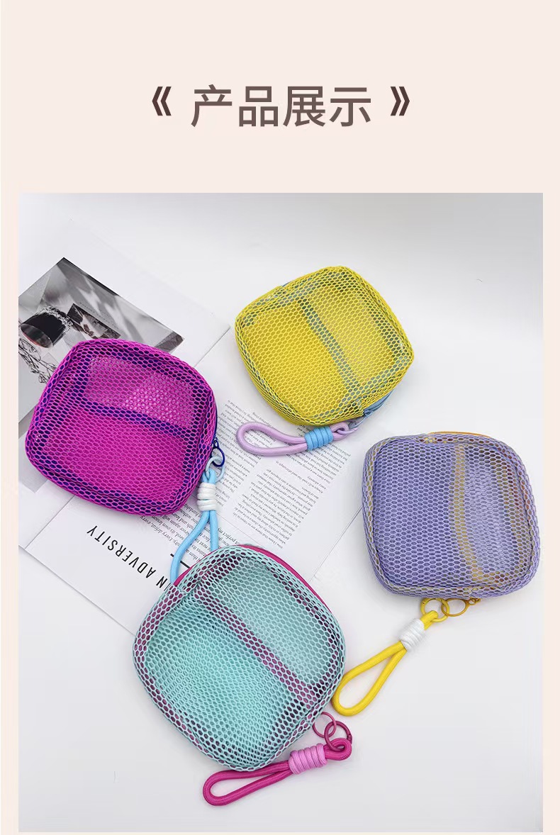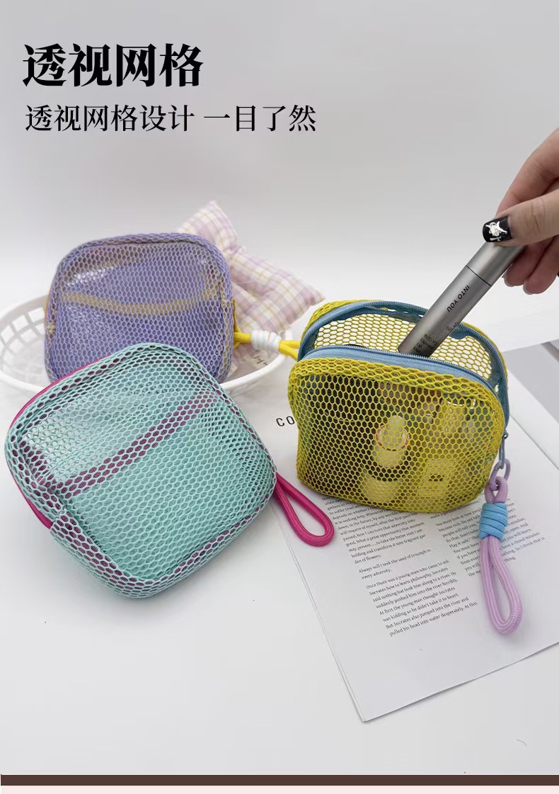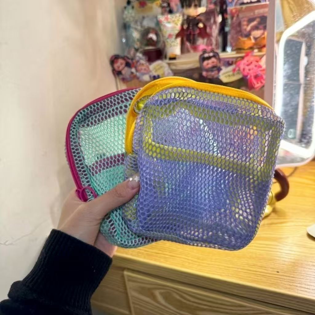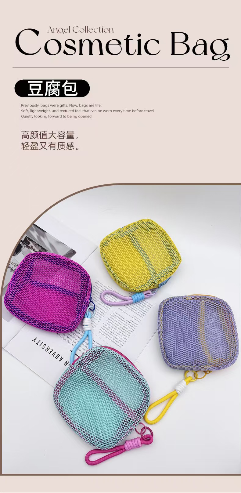 跨境多巴胺网格豆腐包收纳包便携式零钱包网纱小化妆包收纳袋小包