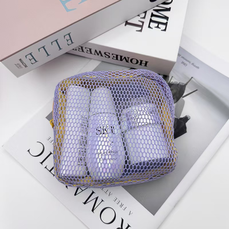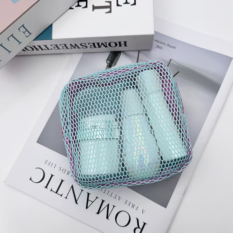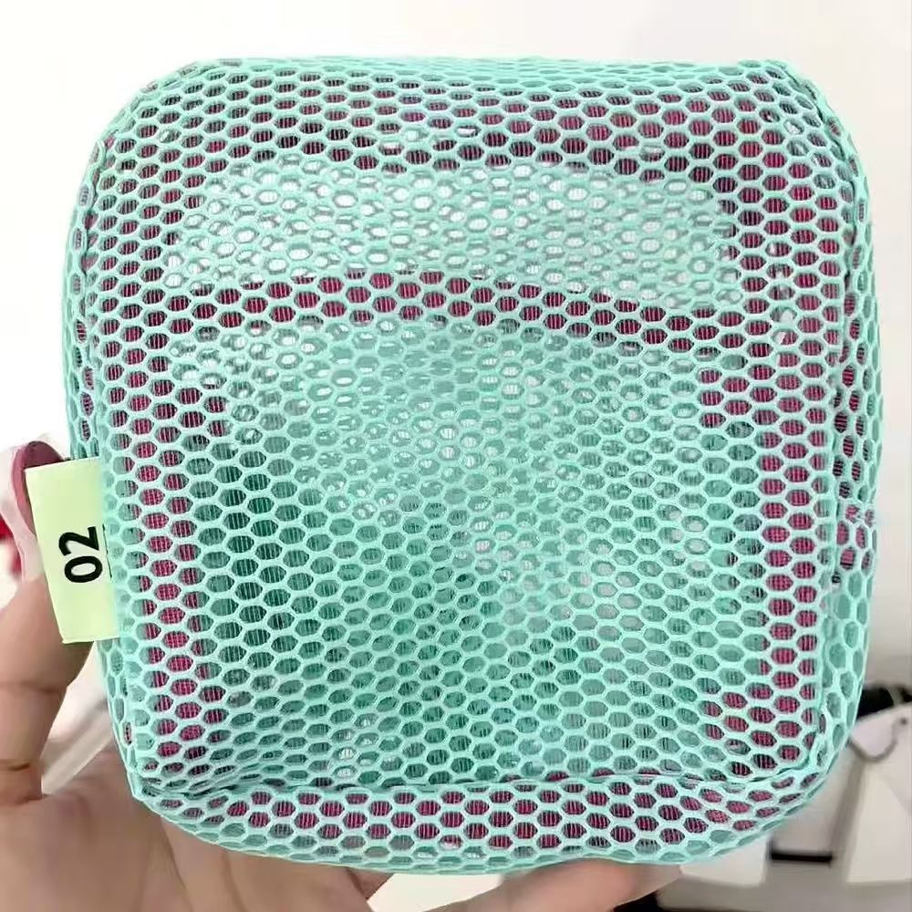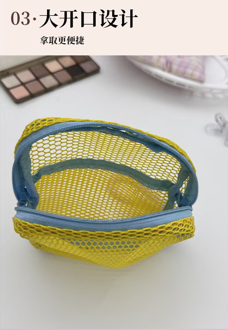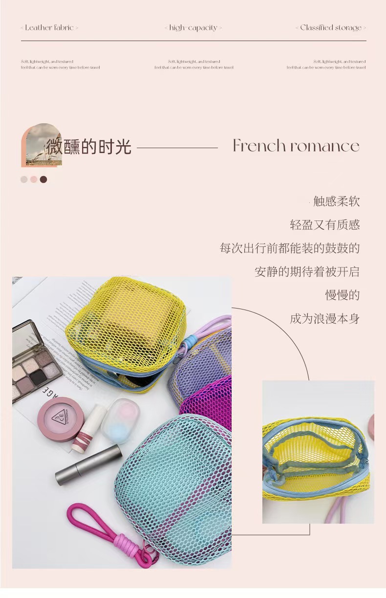 跨境多巴胺网格豆腐包收纳包便携式零钱包网纱小化妆包收纳袋小包