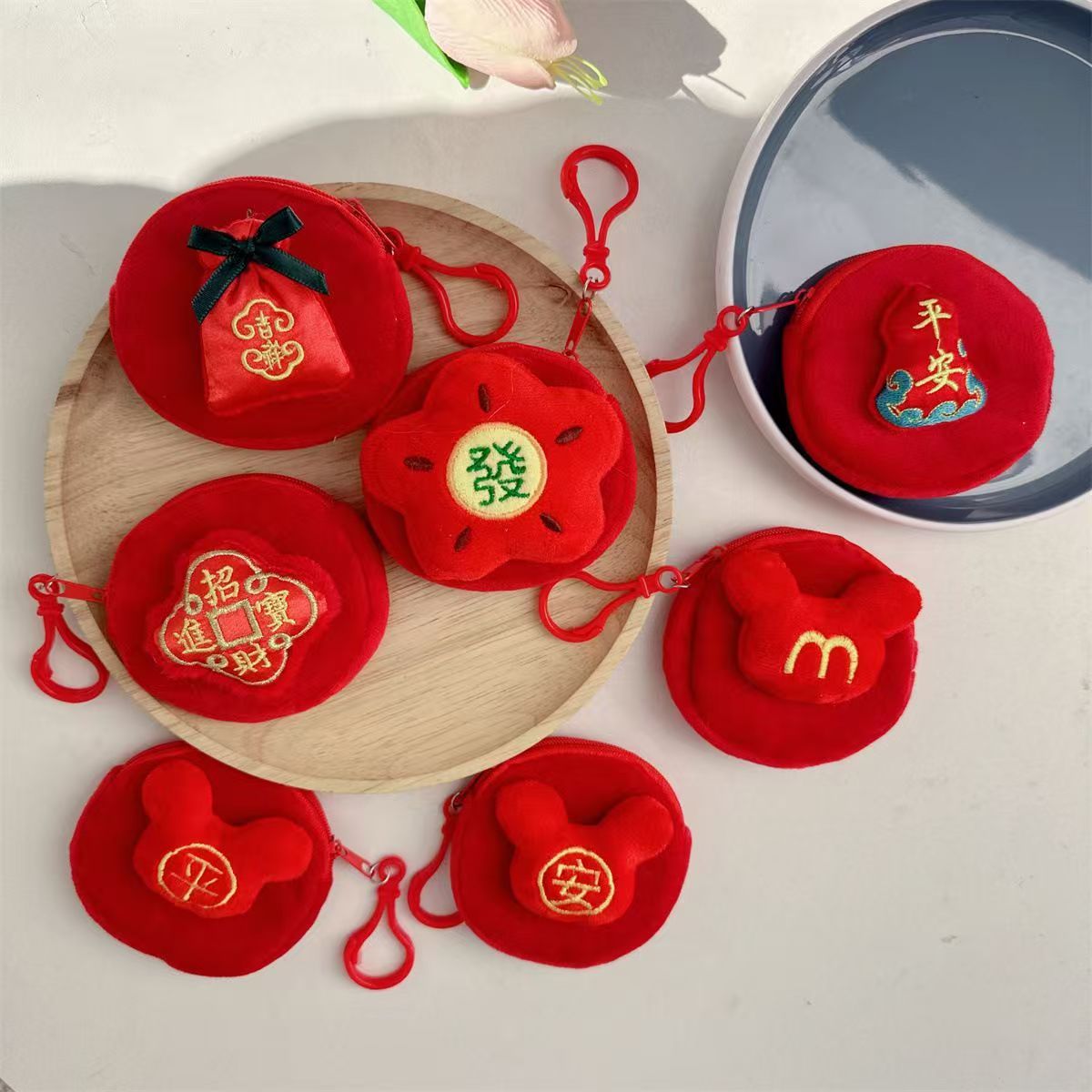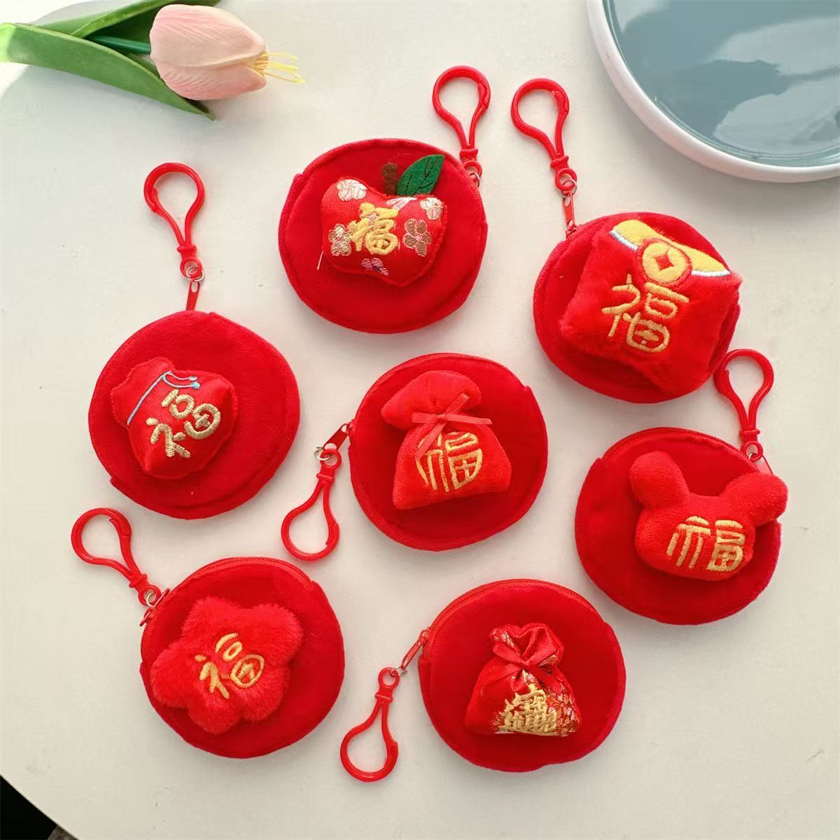 喜庆新年款中国风创意元宝福袋小挂件许愿树吊饰礼品袋零钱包挂饰