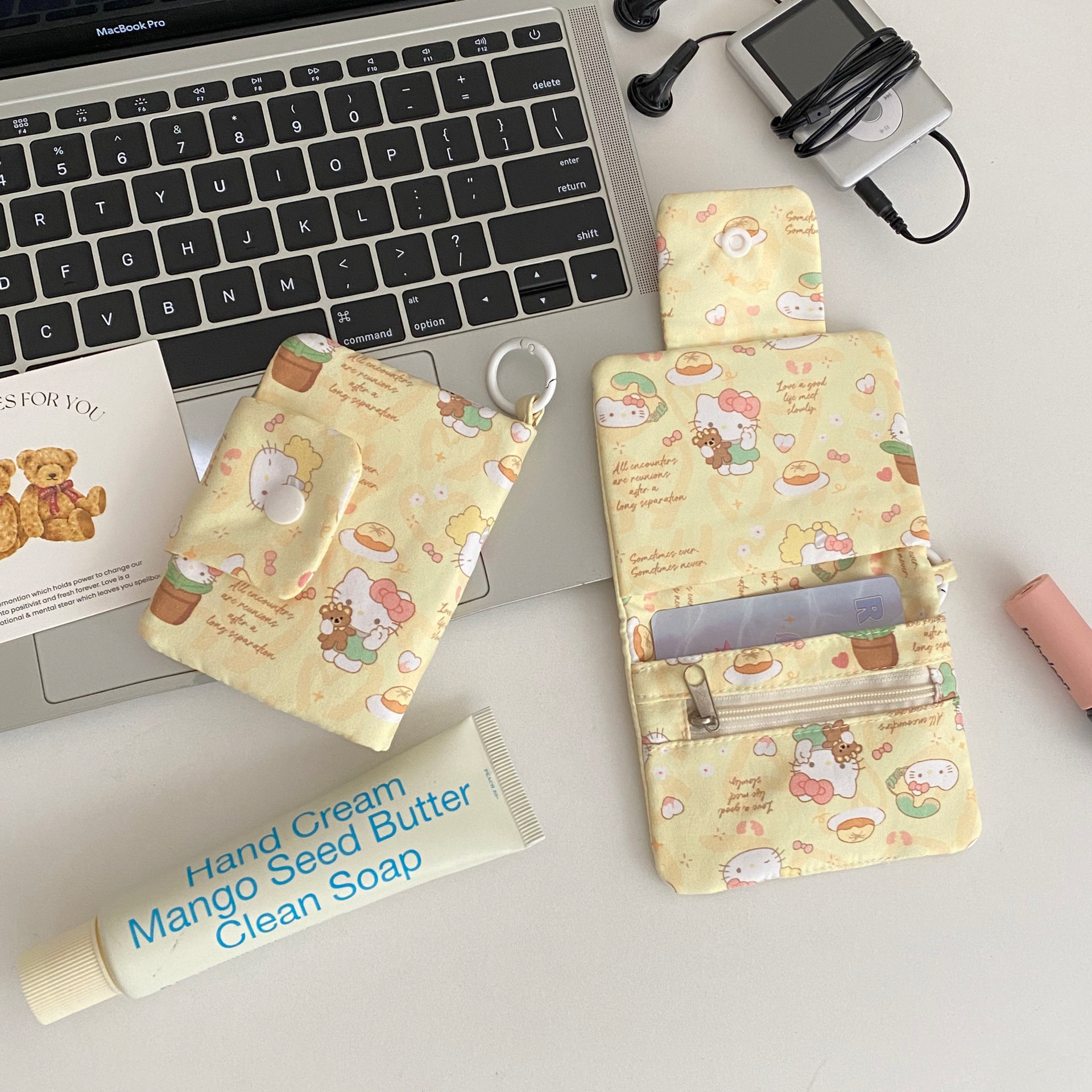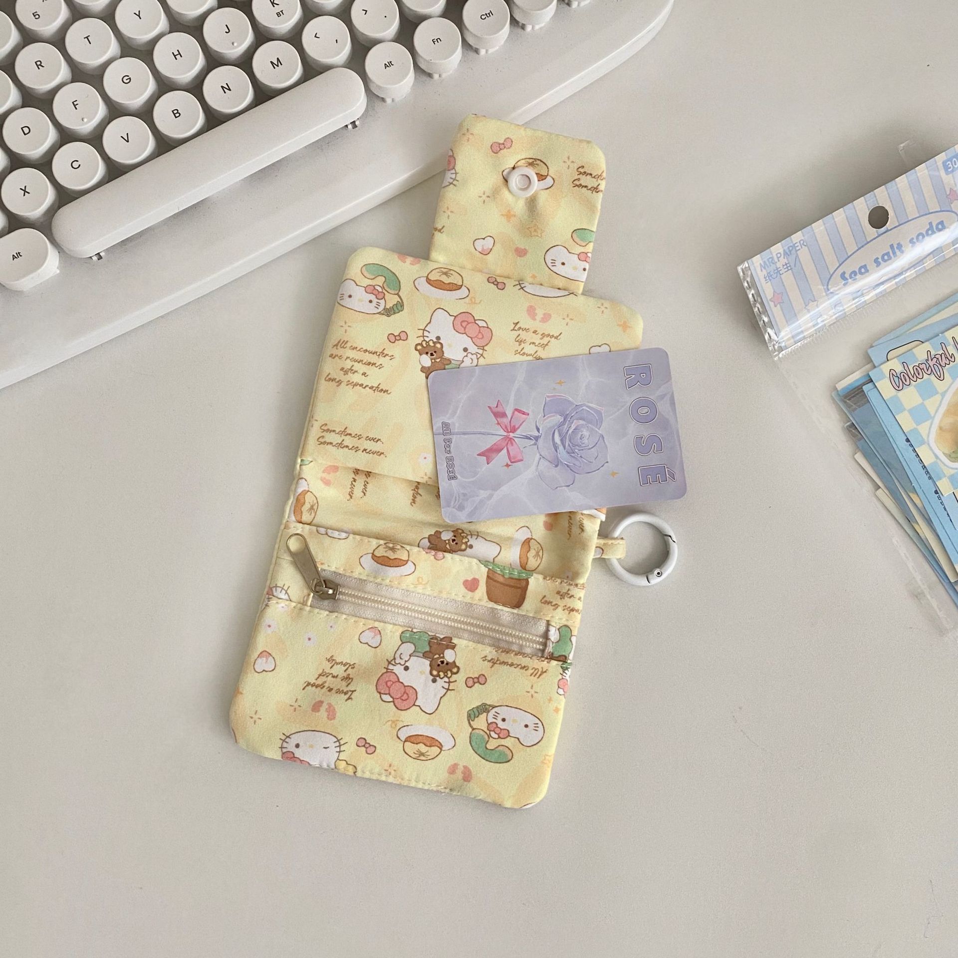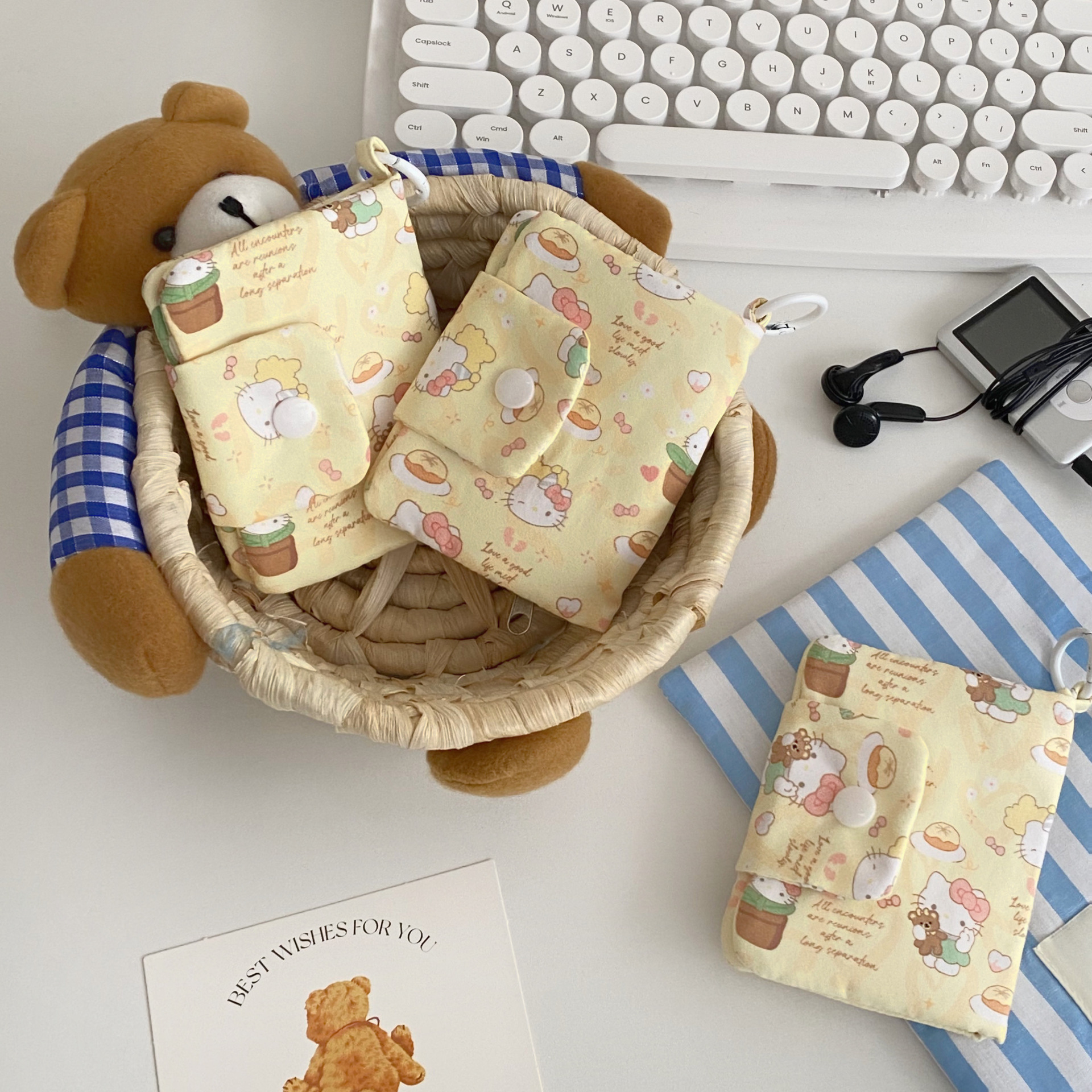 新款可爱猫咪卡包多层零钱包帆布耳机包随身包多功能收纳卡包挂件