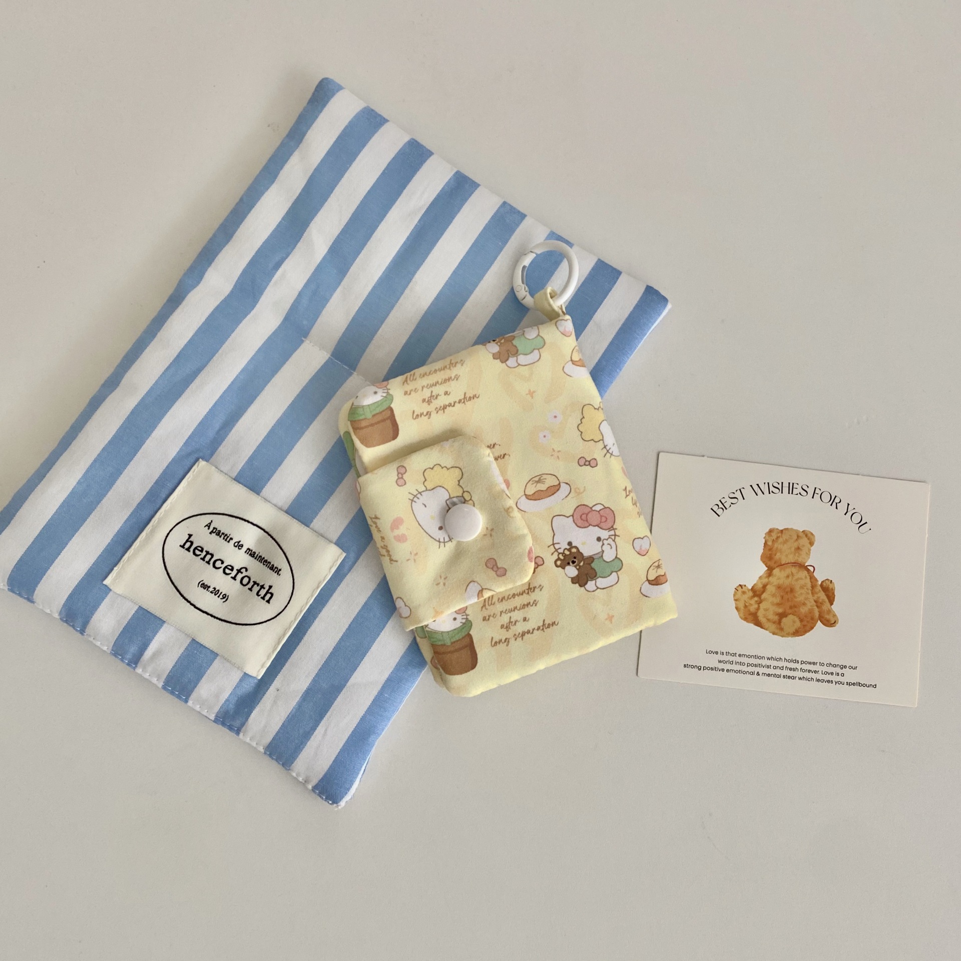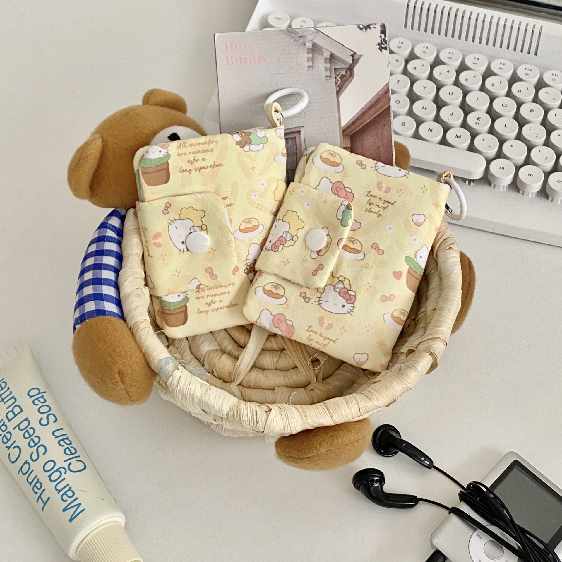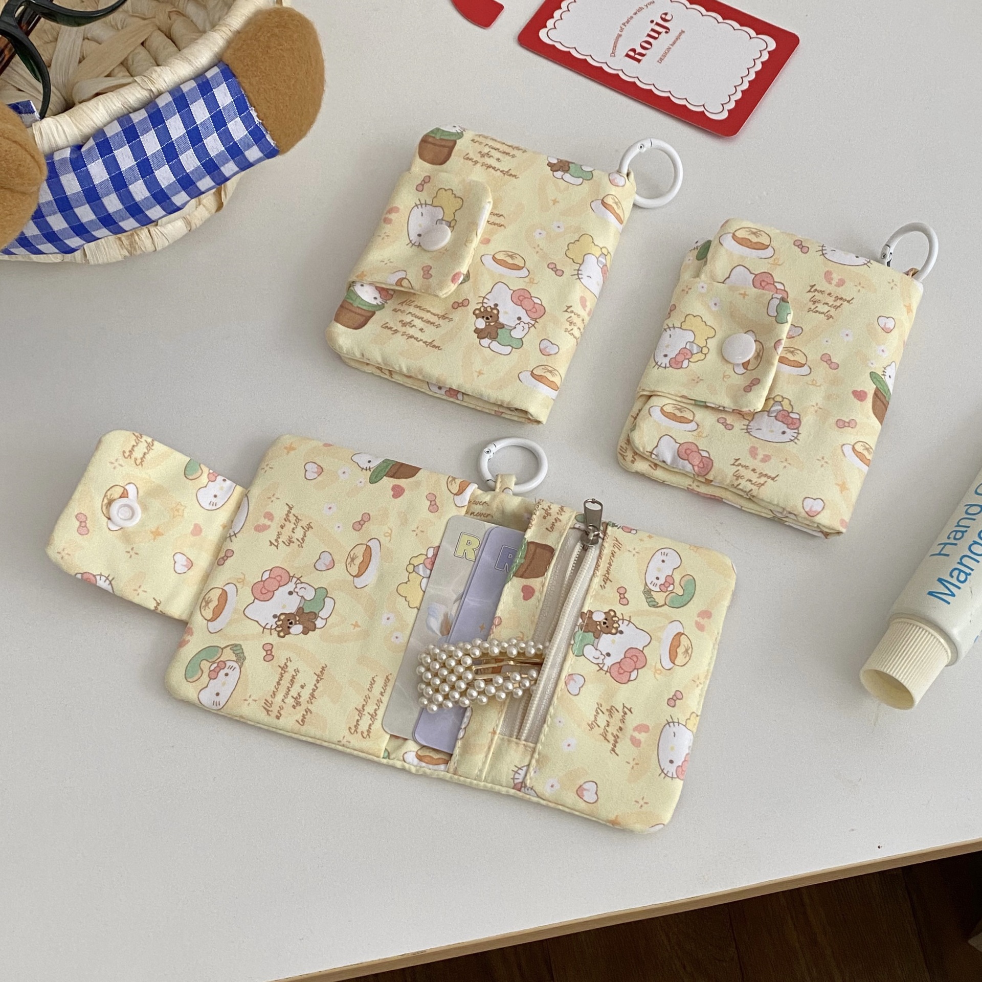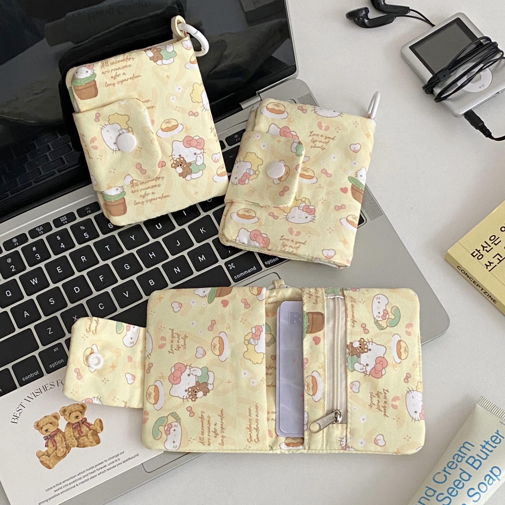 新款可爱猫咪卡包多层零钱包帆布耳机包随身包多功能收纳卡包挂件
