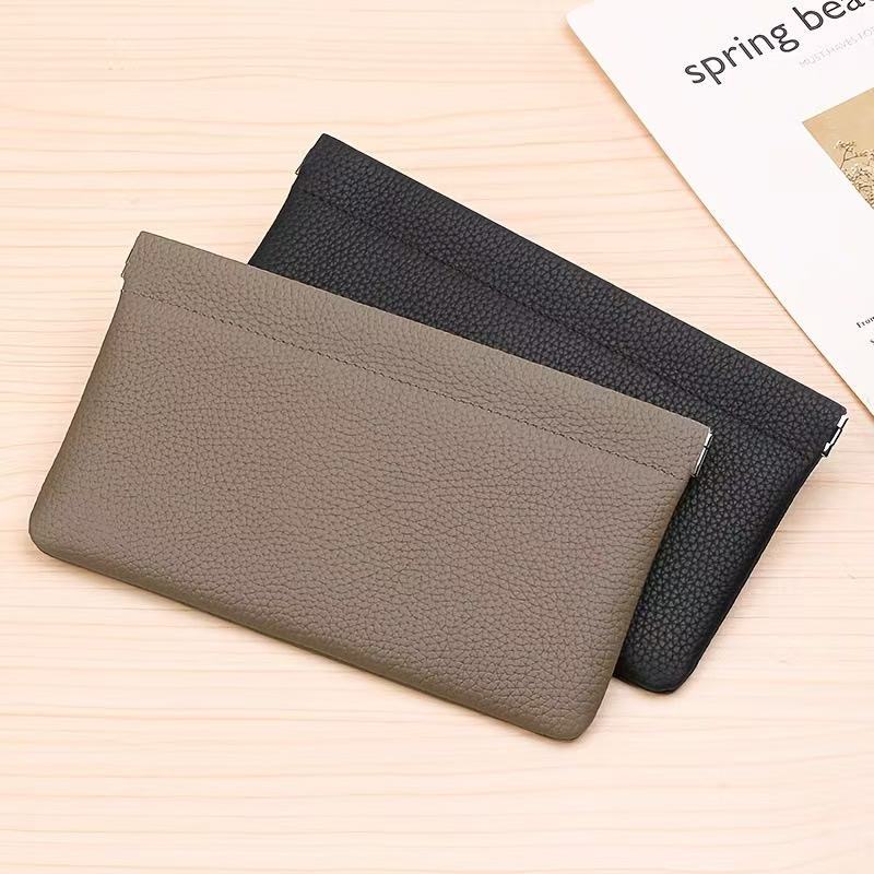 PU钱包女士现金存放袋长款钱夹弹簧男式大钞收纳夹小零钱包