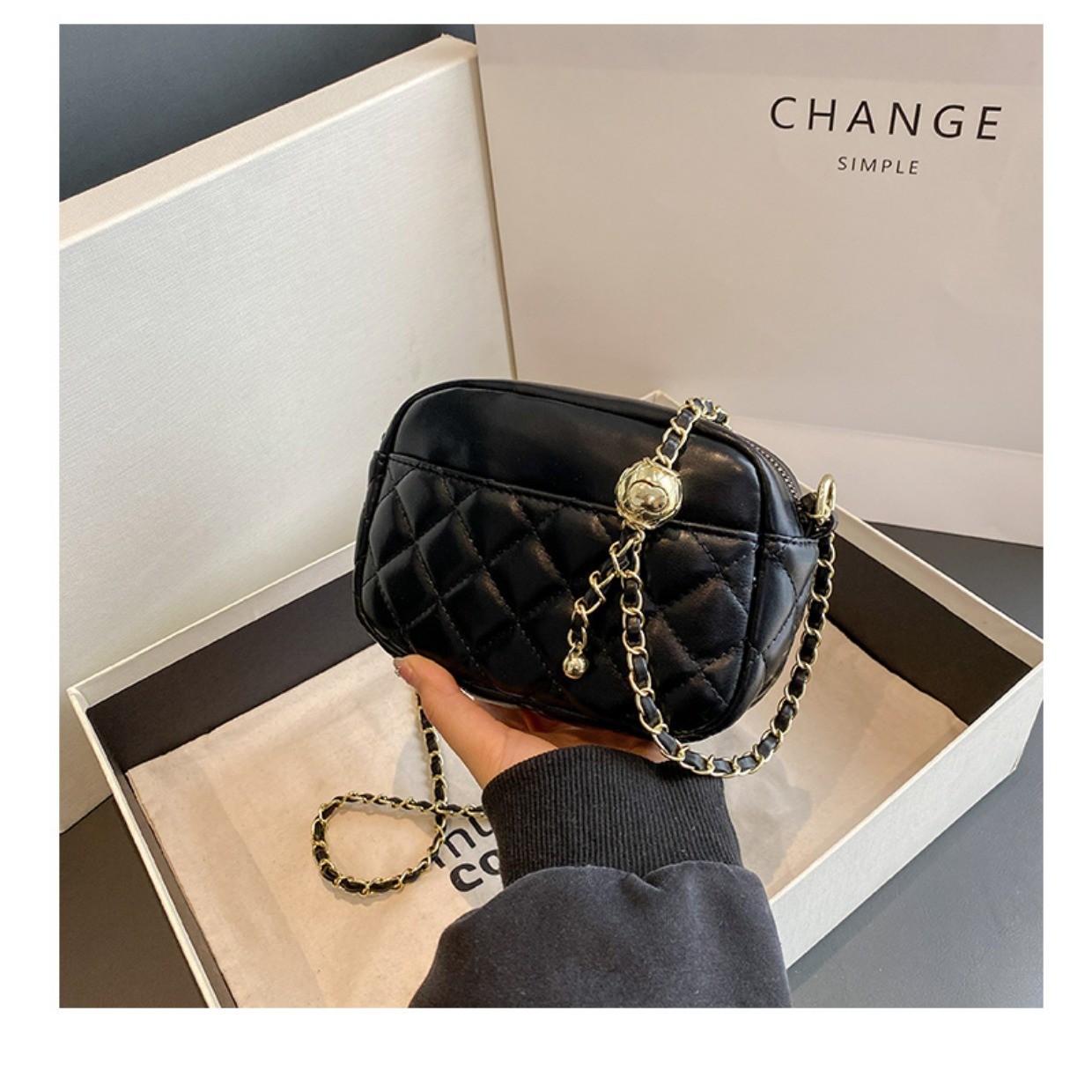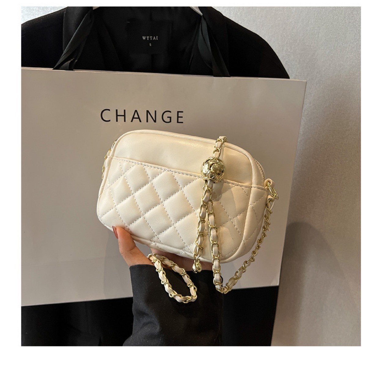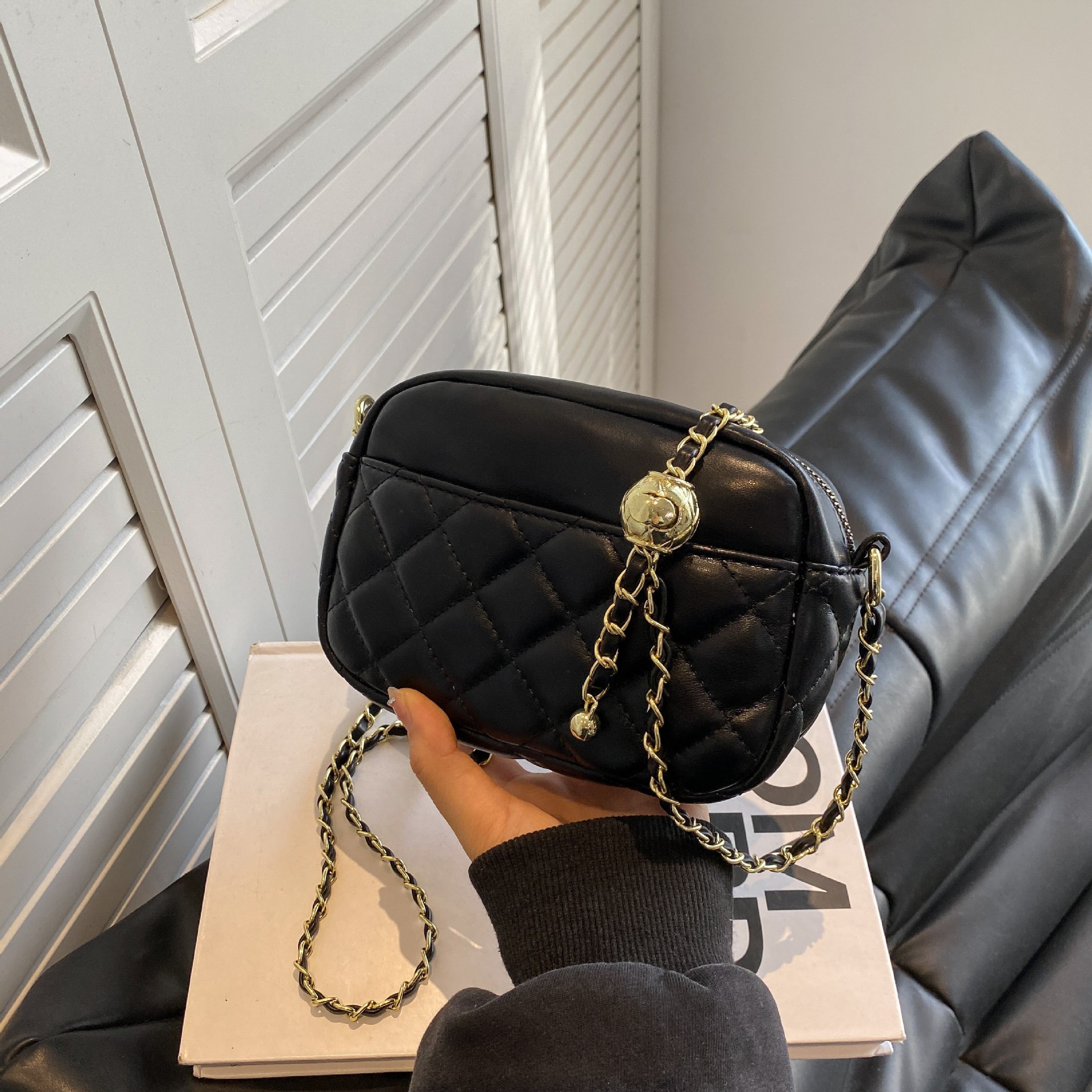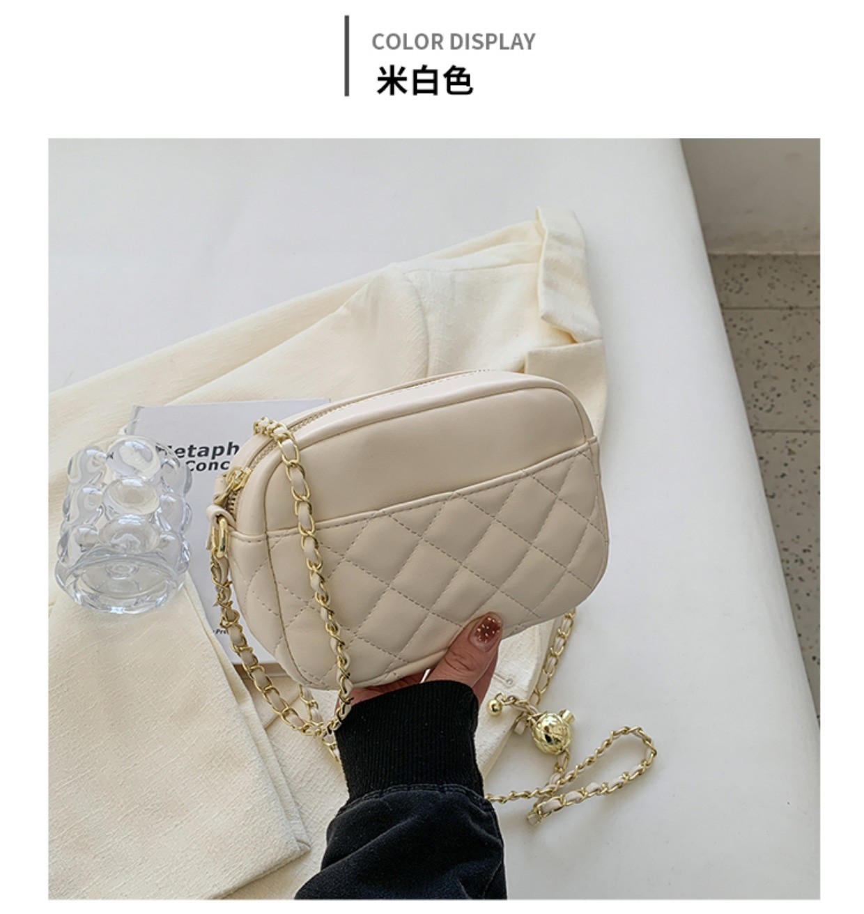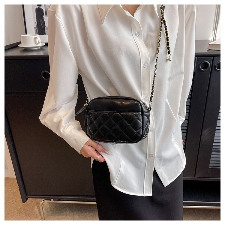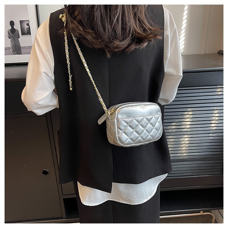 ins新款韩系小挎包女菱格链条手机包时尚零钱包百搭斜挎单肩方包