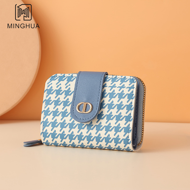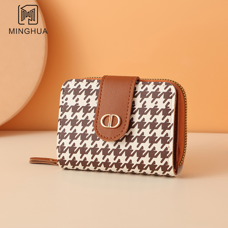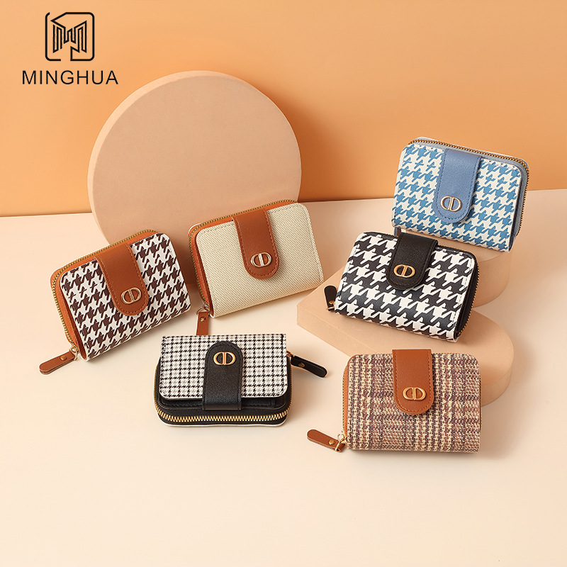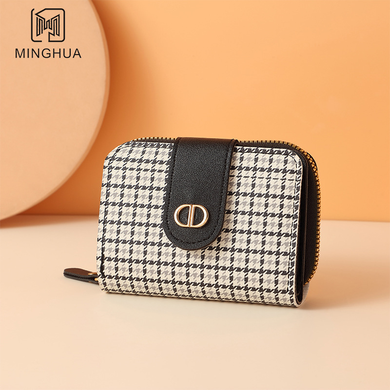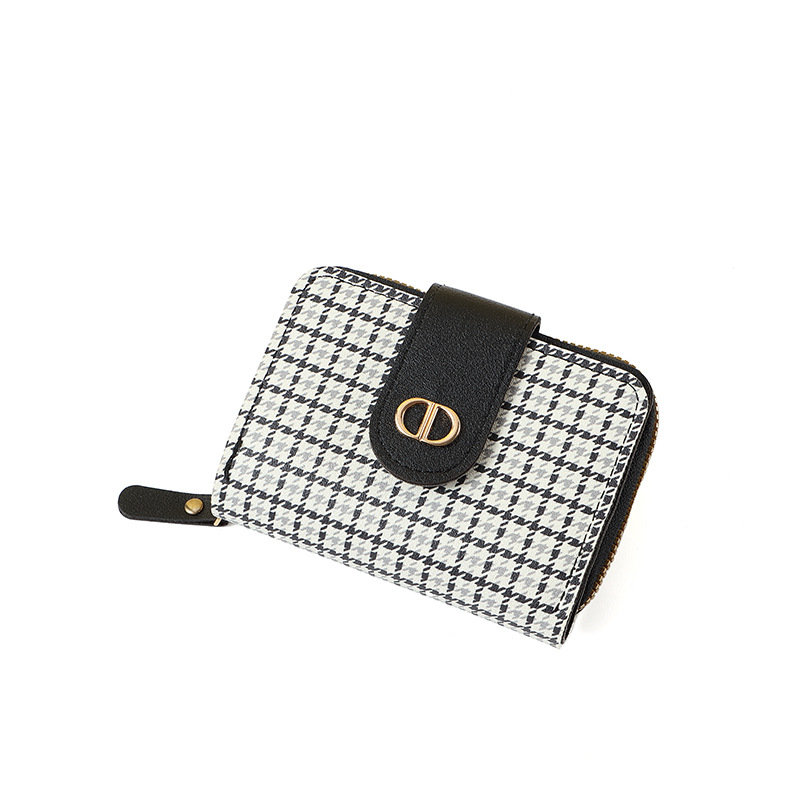 新款女士钱包短款方格卡包多功能学生票夹子零钱包跨境wallet钱包