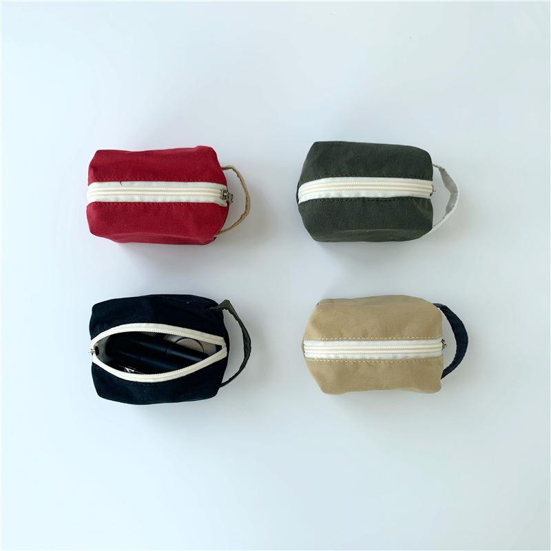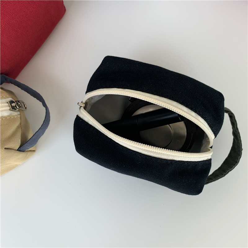 小号帆布撞色化妆包零钱包棉布纯色简约日式通勤迷你收纳洗漱包