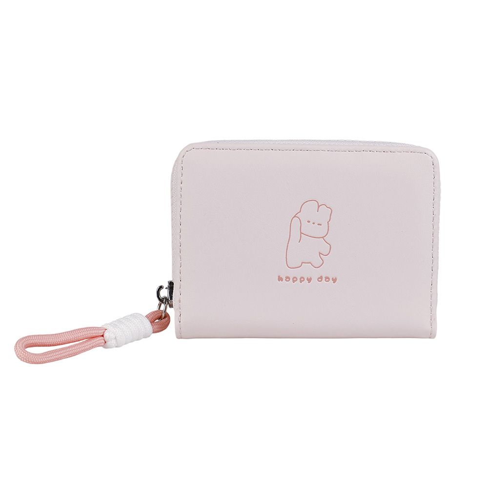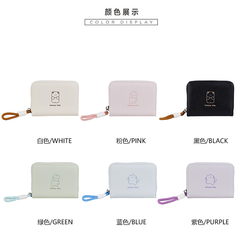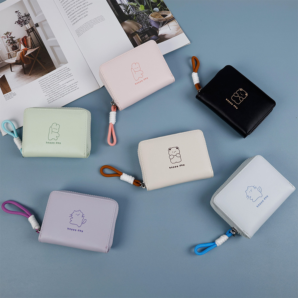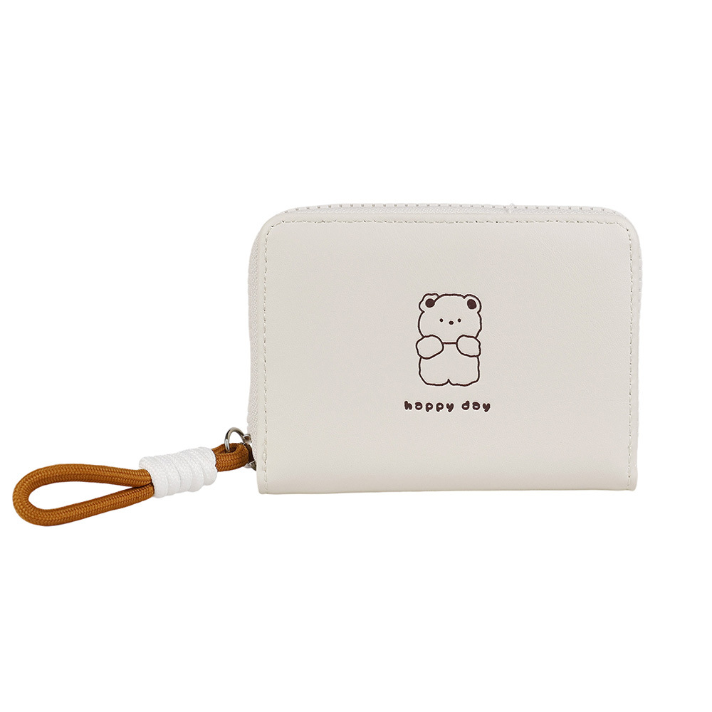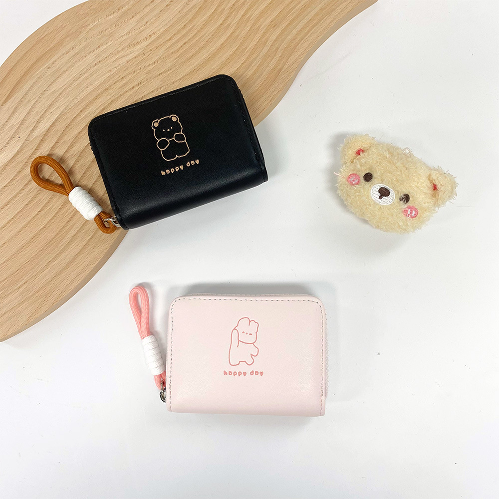 2026可爱绳结开心熊零钱包女卡通短款女士钱包大容量拉链卡包跨境